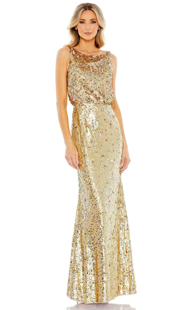 Be ready to sparkle and shine in the Mac Duggal 93645 dress! This sequined sleeveless dress features a stunning Straight Across neckline, embellished with dazzling sequins for a look that'll turn heads. Conquer every room with confidence wearing this sheath dress, featuring a hidden back zipper for easy slips on and off and a silhouette that flatters any figure. Take the risk and be remembered! Model is wearing the Gold color.