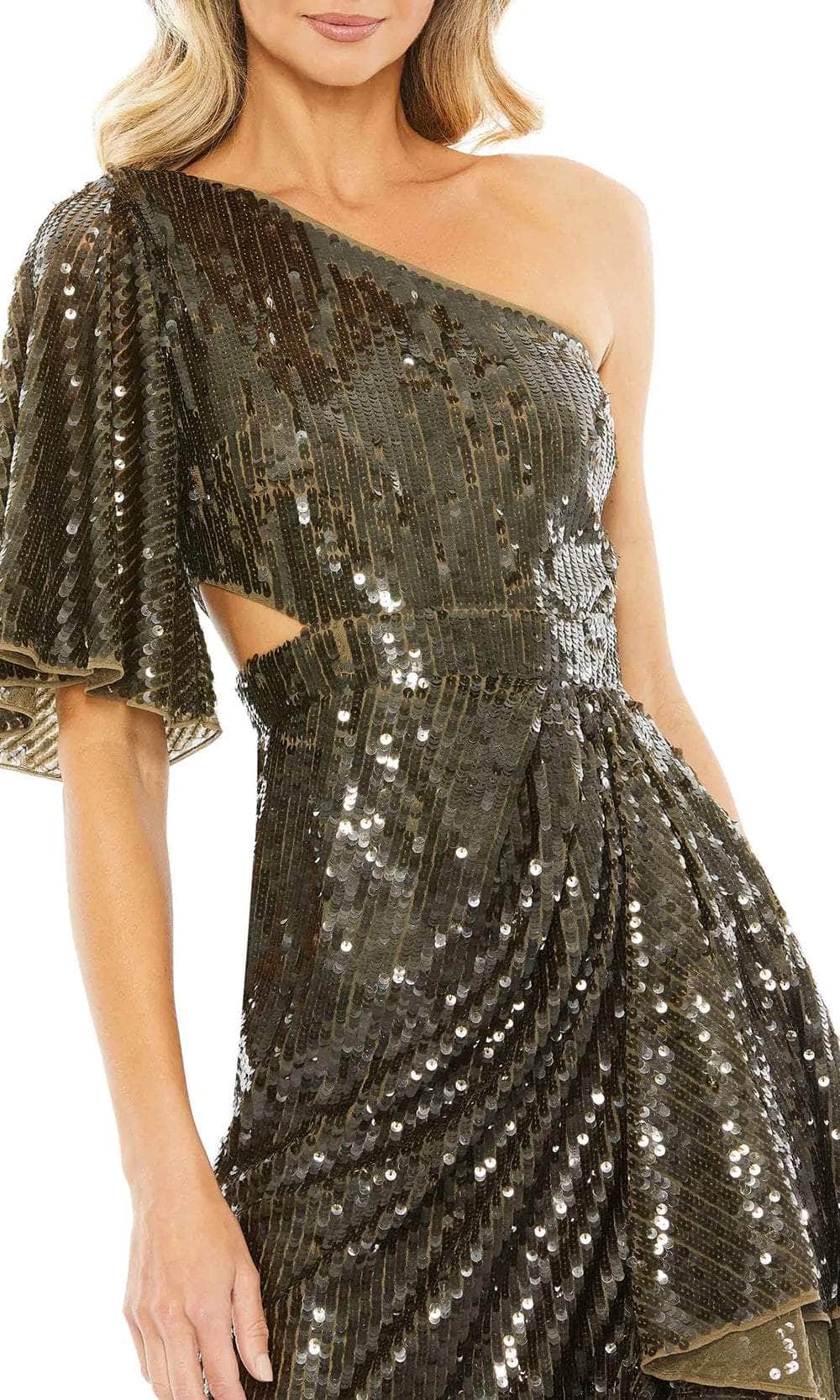Make your special night an interesting one as you wear this gorgeous Mac Duggal 93662 evening dress. This dress has a unique cut-out portion at the bodice with an asymmetrical neckline and a single flattering short sleeve which will give you an extra stunning appeal as you wear this dress. Gorgeously embellished with glittering sequins that will make you shine like a diamond. The sheath skirt is detailed with cascading high lo front ruffle slit. Look good and feel good with this extravagant evening dress from Mac Duggal 93662. Models are wearing Mauve and Olive colors.
