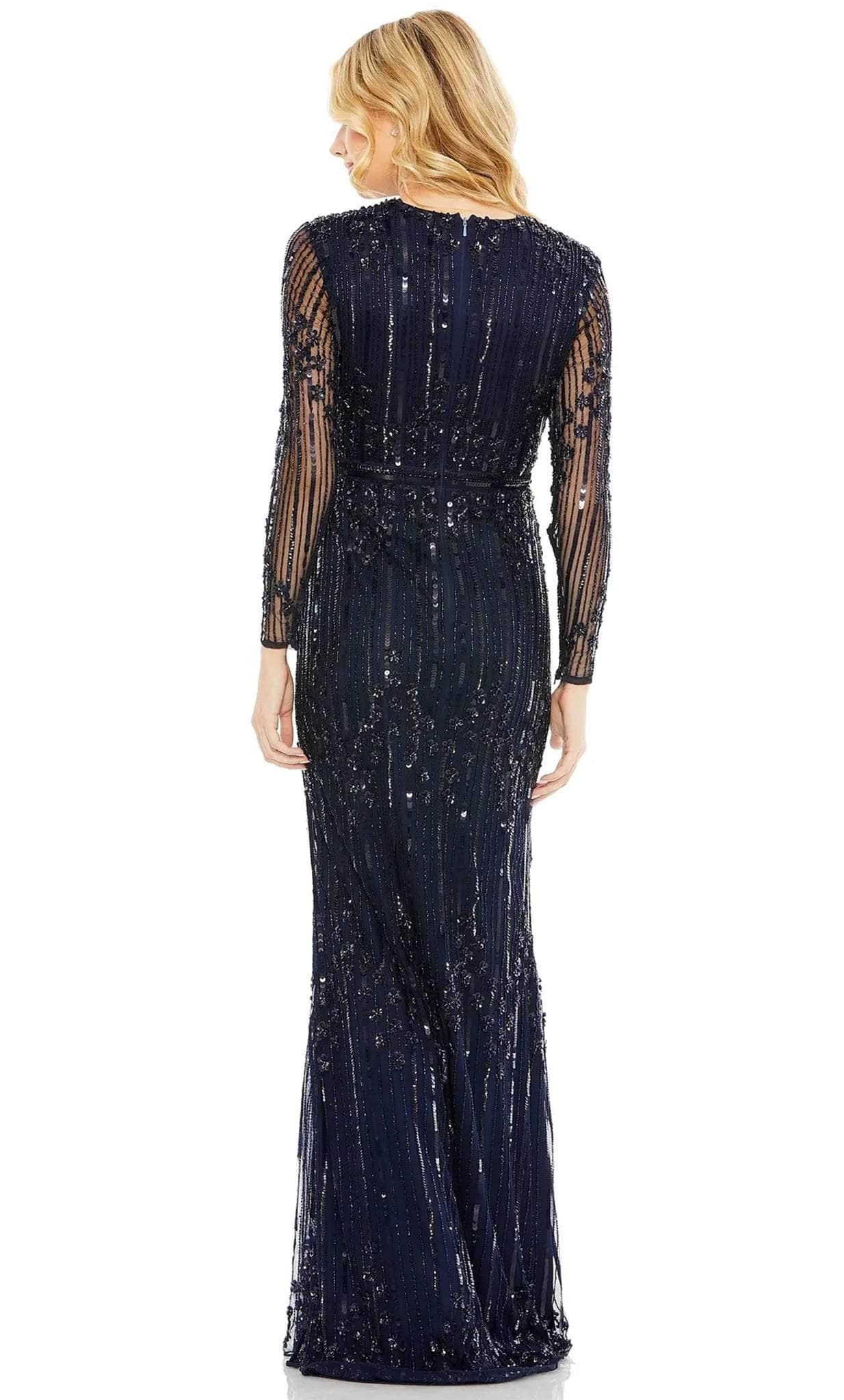 Dress to impress on your next formal event in this simple but captivating dress from Mac Duggal 93781. Be the prettiest and classiest one in your next formal event wearing this evening gown embellished with sequins applied vertically throughout. Featuring jewel neckline, long sleeves, and a floor-reaching column silhouette. Showing less skin, perfect if you want to be conservative and modest. This Mac Duggal 93781 creation is truly a definition of glamour. Model is wearing Midnight color.