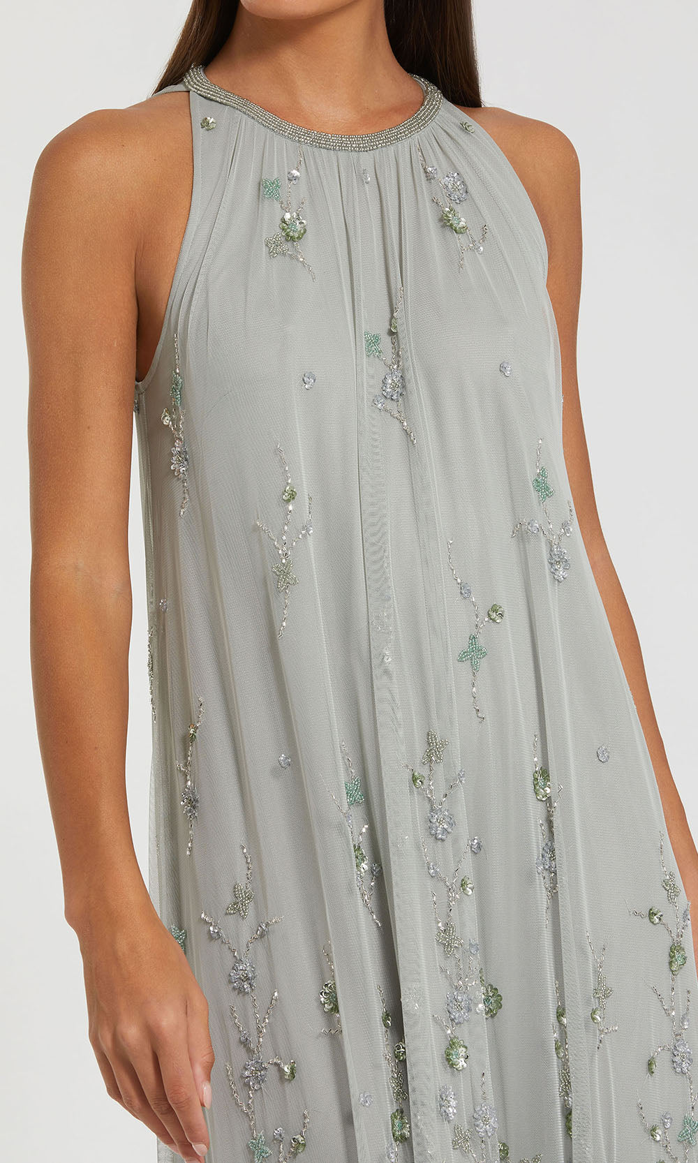 | Details: | Beaded, Floral Pattern, Sleeveless, Full Back, Hidden Back Zipper |