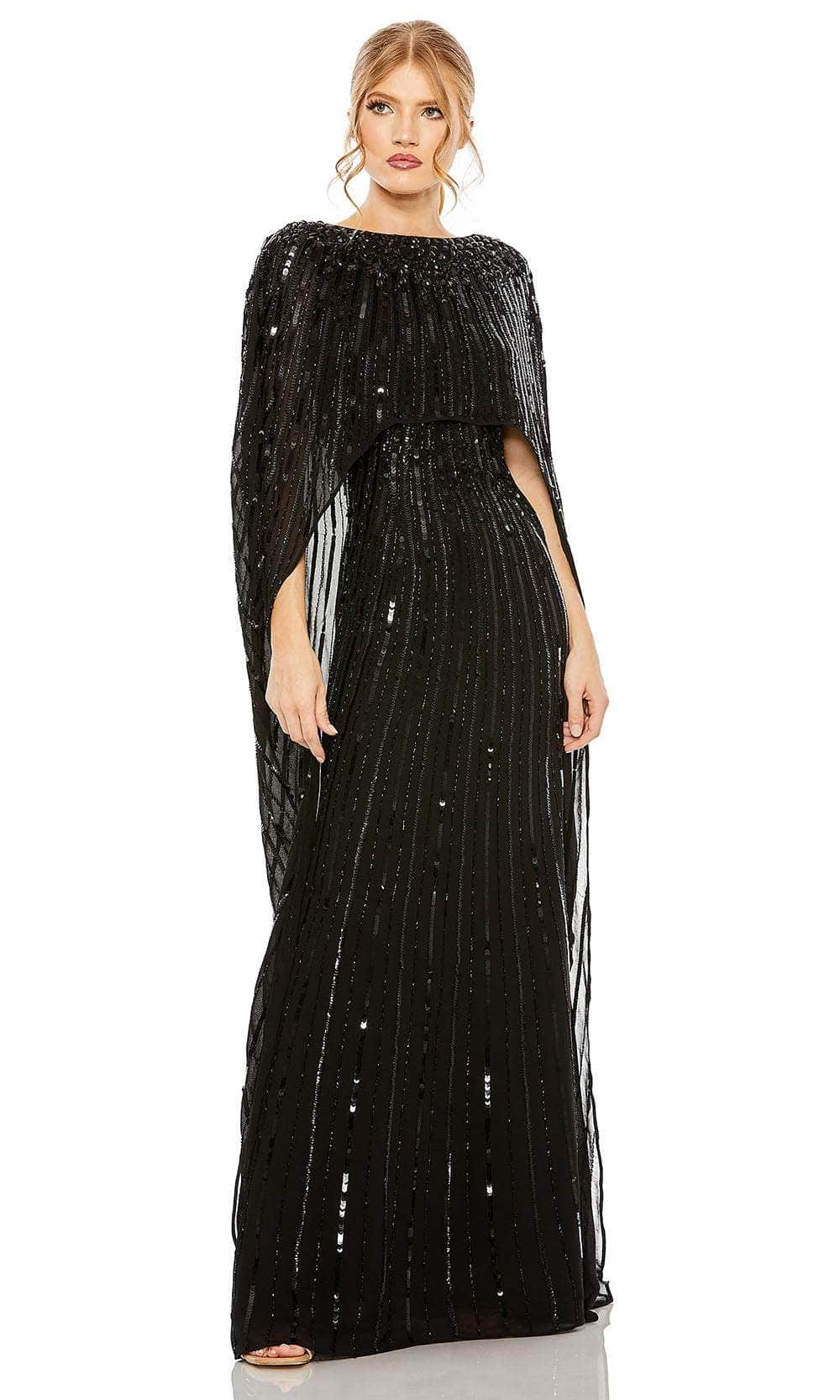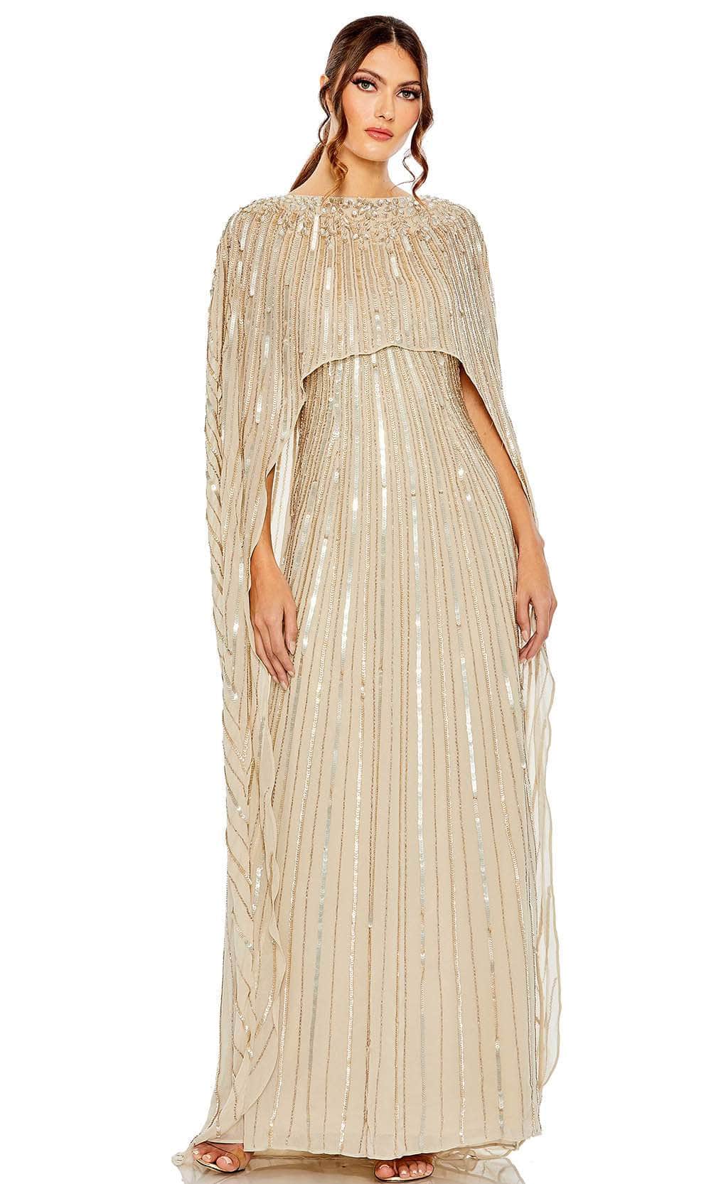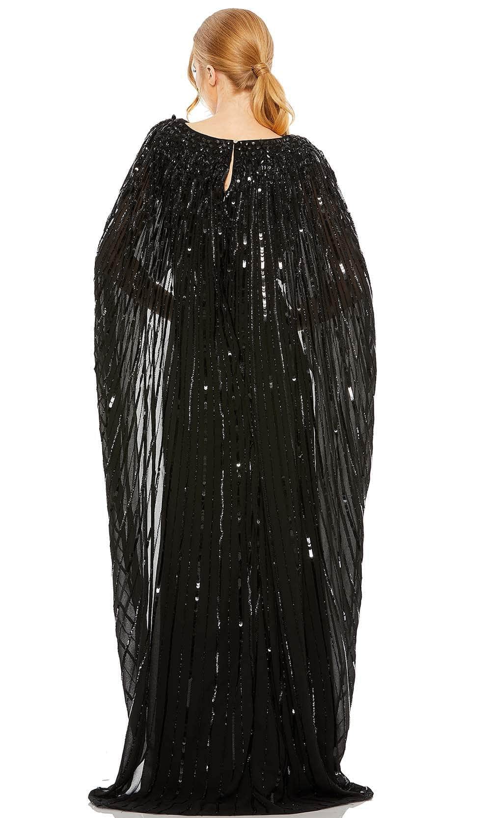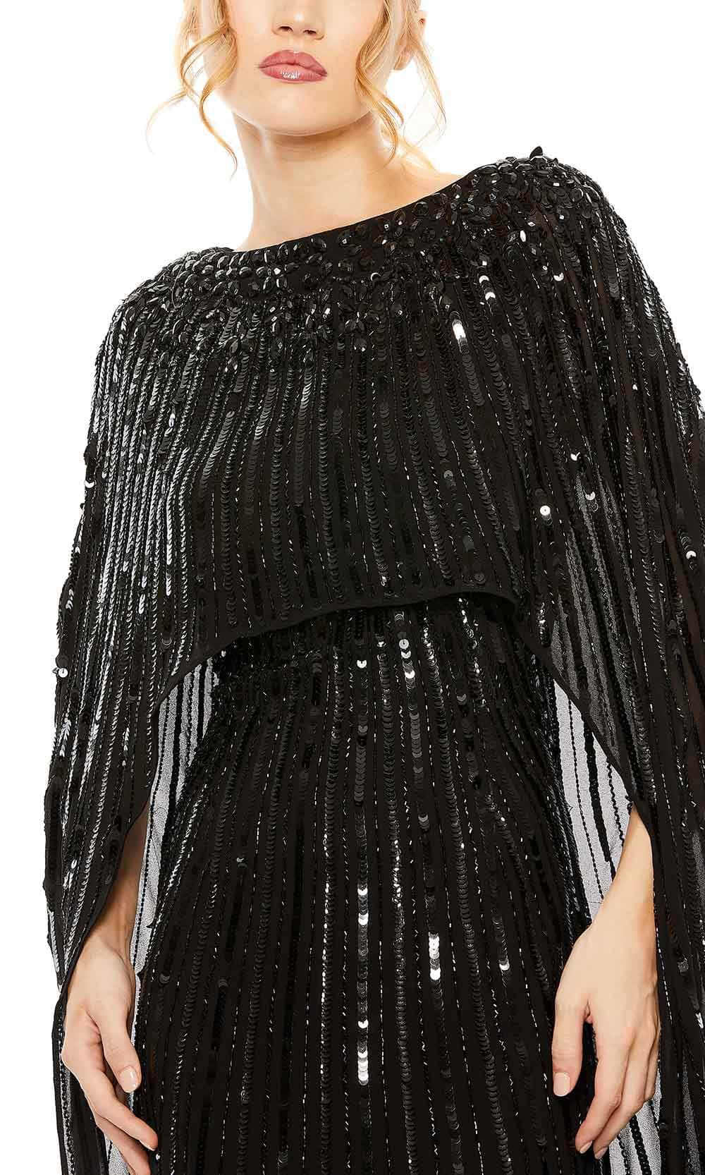 PromGet ready to channel your inner diva in this Mac Duggal 93869 creation. This captivating gown is adorned with mesmerizing sequin embellishments, sparkling with every step you take. The dramatic cape sleeves and cape overlay add a touch of elegance and drama, creating a stunning visual impact. With a sweeping train, this dress exudes sophistication and grace. The back zipper closure ensures a seamless fit. The full-length skirt parades in a column silhouette, accentuating your curves with effortless glamour. Shine in this extraordinary Mac Duggal 93869. Models are wearing Black and Champagne colors.