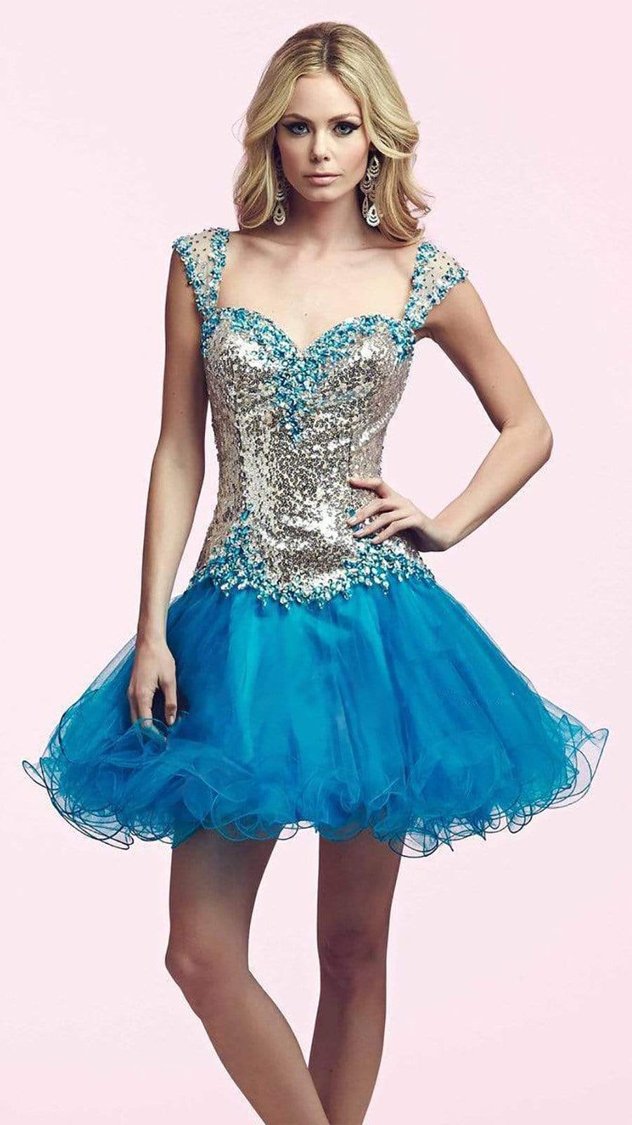 Every girl deserves the chance to sparkle and with something fabulous from the Mac Duggal 82095, you will shine throughout the night. Designed to wow at homecoming, this best-selling homecoming dress collection is also perfect for parties, weddings, and formal events. Whether you are looking to make a statement at homecoming or want to show off your sophisticated style, Mac Duggal homecoming dresses are the perfect complement of sassy and elegant, with everything in-between. It is time to bring that flouncy spirit and sassy attitude to your homecoming dance! Flashy sequins catch the light all along the dropped bodice. Color matching stones sparkle along the trim of the sweetheart neckline and curve along the cap sleeves. More color matching sequins are sprinkled along the sheer illusion sleeves, while a deep v-back opens up. The frilly skirt is so fantastic with layers of tulle creating a very voluminous look. Be lovely in this Mac Duggal creation.