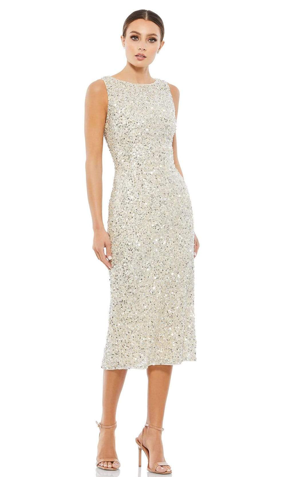 Put a sparkle in his eyes in this mesmerizing Mac Duggal 5526 creation. Crusted with sequins accenting the sleeveless silhouette, this beauty flaunts a jewel neckline and a full back. Skimming the feminine form, the sheath skirt opens with a back slit and streams into a tea length hem. Parade regal elegance and attract attention in this Mac Duggal masterpiece.