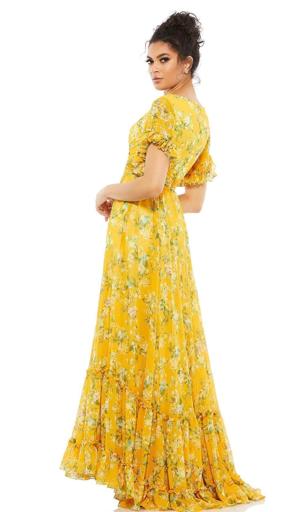 Look charming and lively in this fabulous Mac Duggal 70241 dress. This dress fashions a V-neckline supported by short flutter sleeves in a floral printed bodice and tiered skirt. Revealing an A-line silhouette, this also displays a full back with back zipper closure. This Mac Duggal design is a charming choice for your next special occasion.