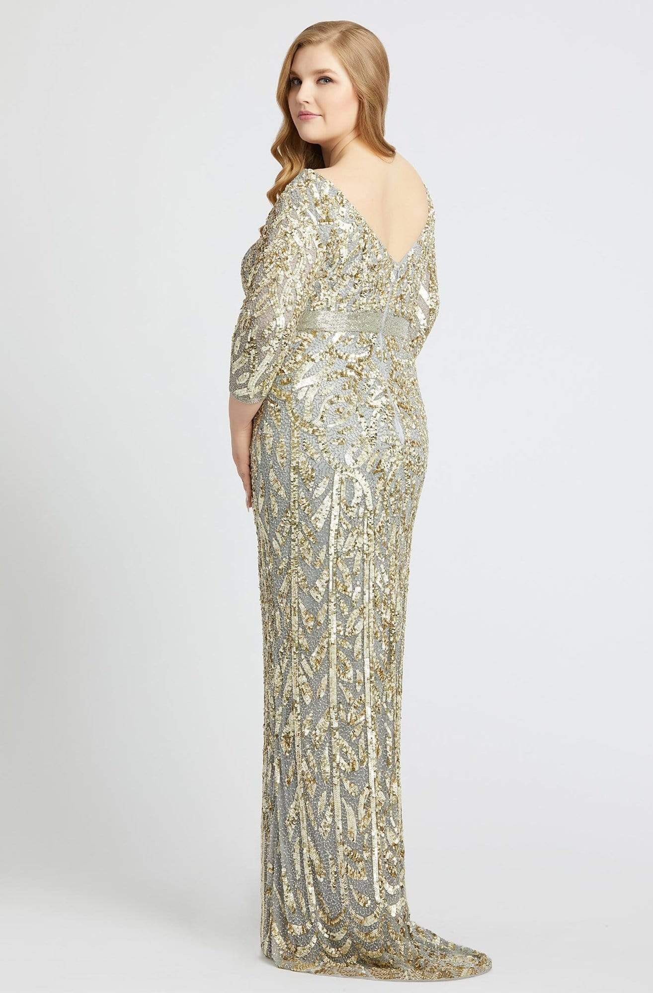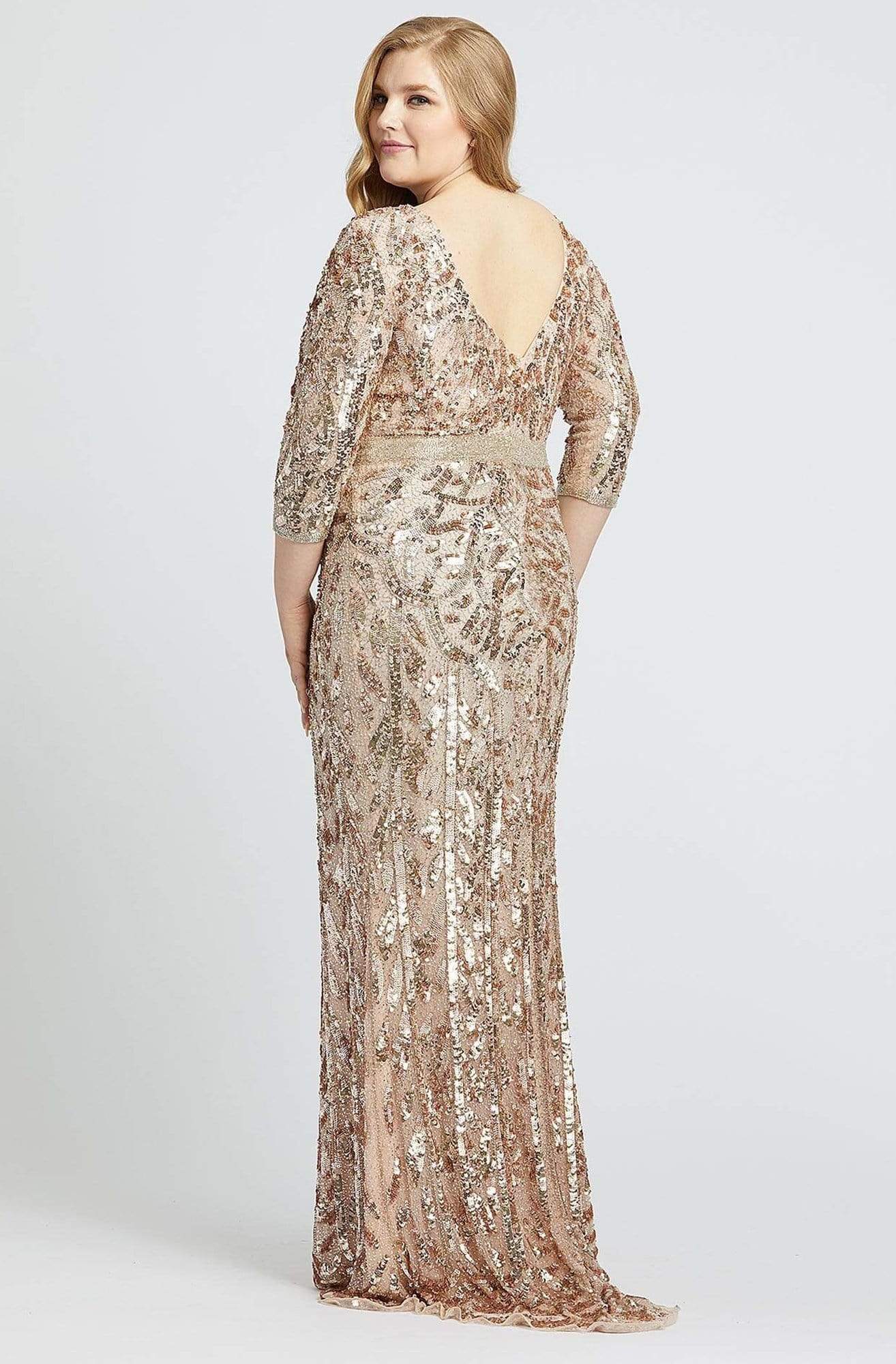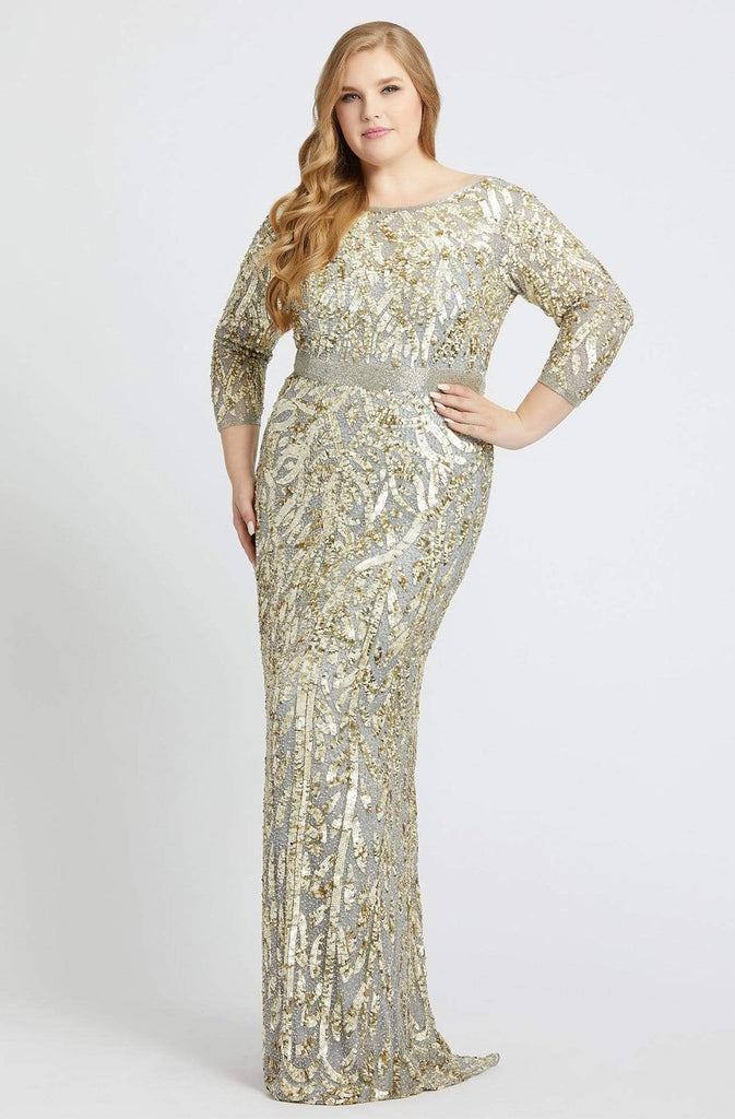 Be the center of attention in this glamorous dress by Mac Duggal Fabulouss 4857. This fully beaded dress presents in a quarter length sleeve, bateau neckline with a fitted bodice. The skirt has a fitted silhouette and runs at full length hem to a mini train finish. This Mac Duggal dress is a charming choice for your next special occasion.