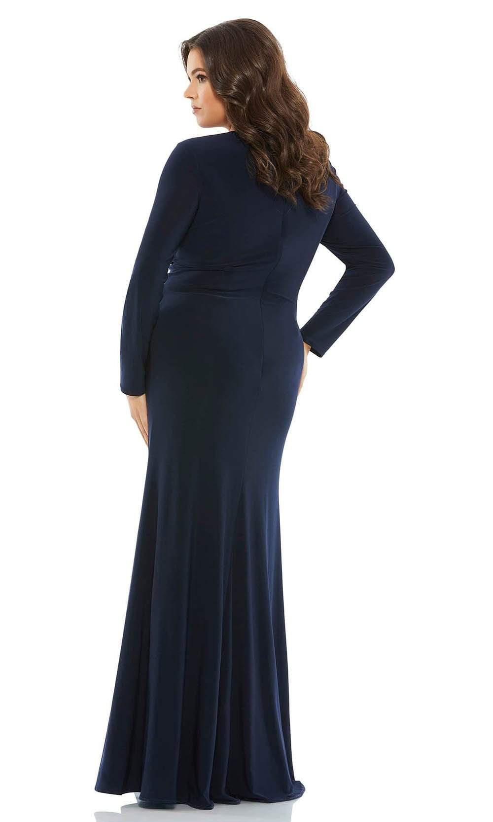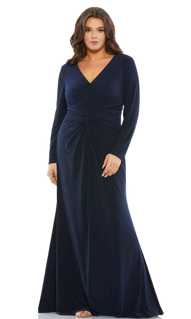 Show your sophisticated sense of style in this Mac Duggal 49504. This dress is made with a soft fabric to give comfort and beauty to the wearer. It has minimalist style as it is only designed with a mid ruch on a fitted bodice. It features a V neckline and long sleeves as it proceeds with a full length sheath silhouette. Mac Duggal is your excellent choice for prom or for any special occasion when you dare to look extraordinarily fabulous!