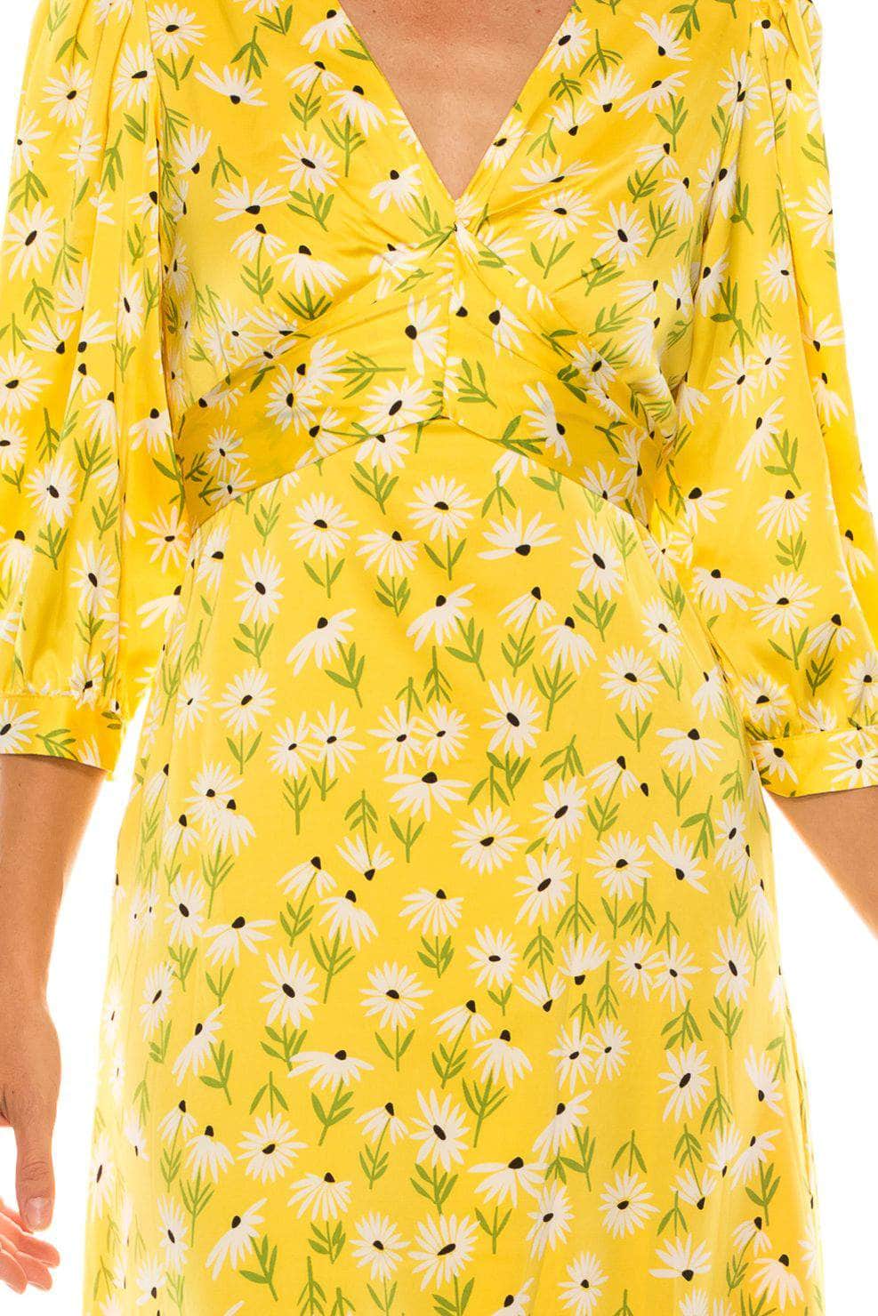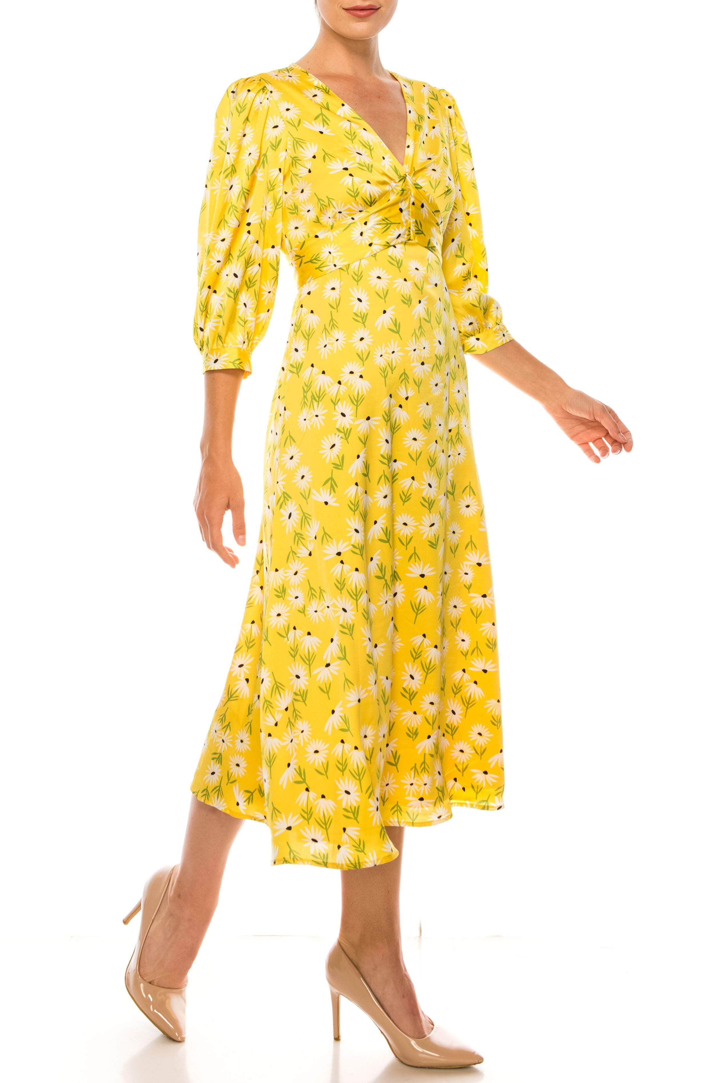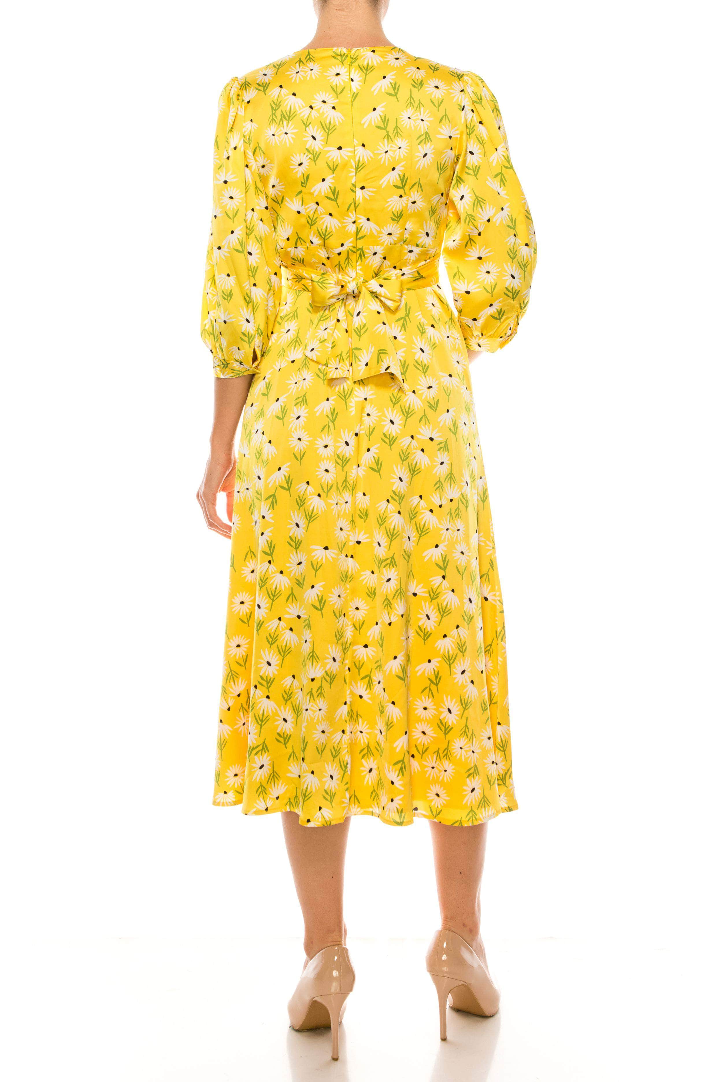 Look fresh and pretty in this zesty dress from Maggy London G4850M. This tea length dress boasts a quarter length puffed sleeves with cuff details and a charming V-neckline with a define empire waistband. The dress has a full back secured by a ribbon tie and a zipper closure. The skirt blooms effortlessly in a tea-length finish. This Maggy London dress is specially designed to make that special occasion worth reminiscing. At Couture Candy, looking gorgeous and making head turns have been made easy by our discount dresses on sale from hottest and trendiest evening gowns, special occasions, prom dresses, formal gowns, mother of the bride, sweet 16, and cocktai l dresses. Model is wearing Yellow Soft White color.