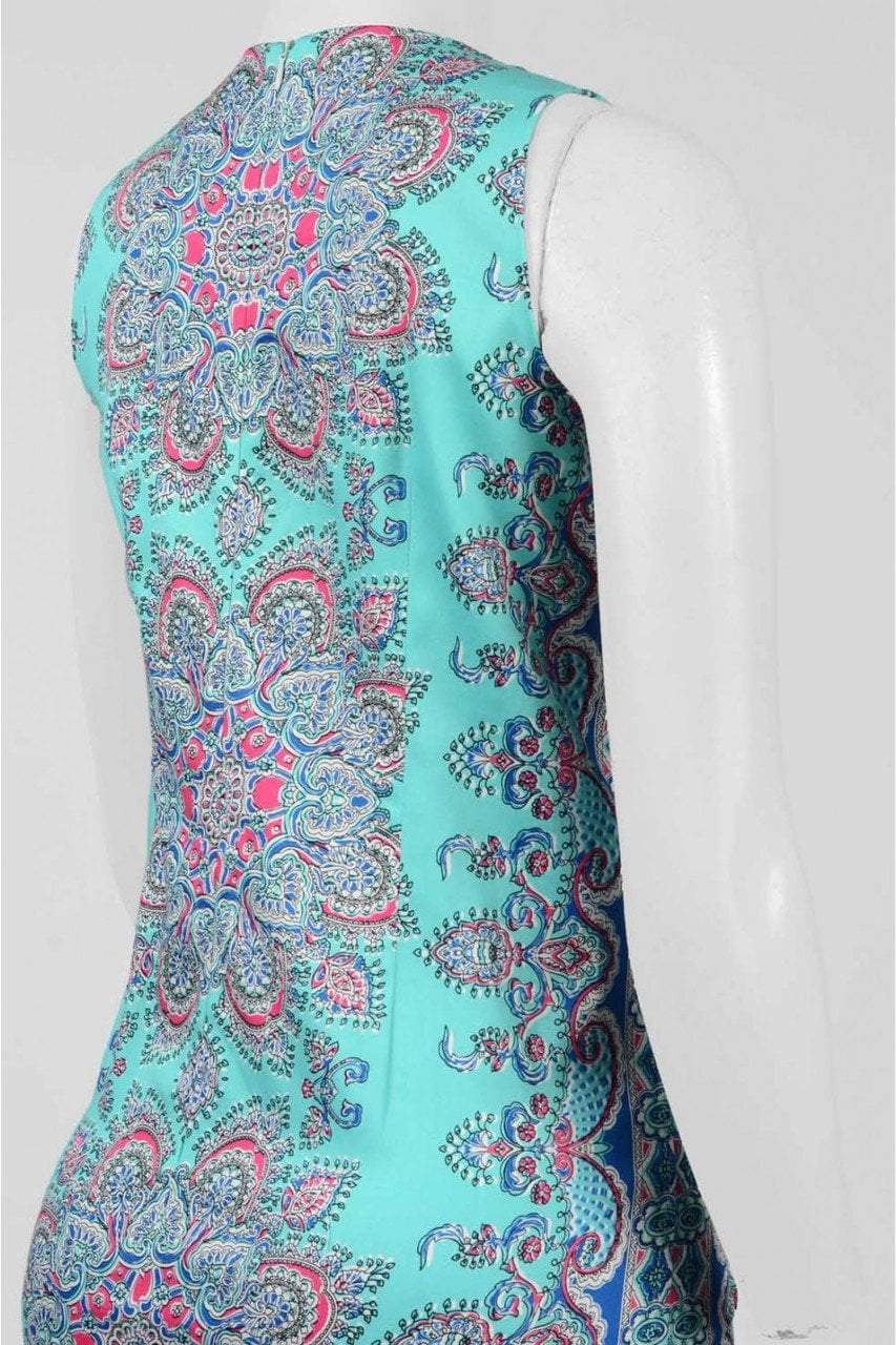 | Details: | Cotton, Medallion Print, Sleeveless, Full Back, Invisible Back Zipper, Short Hem |