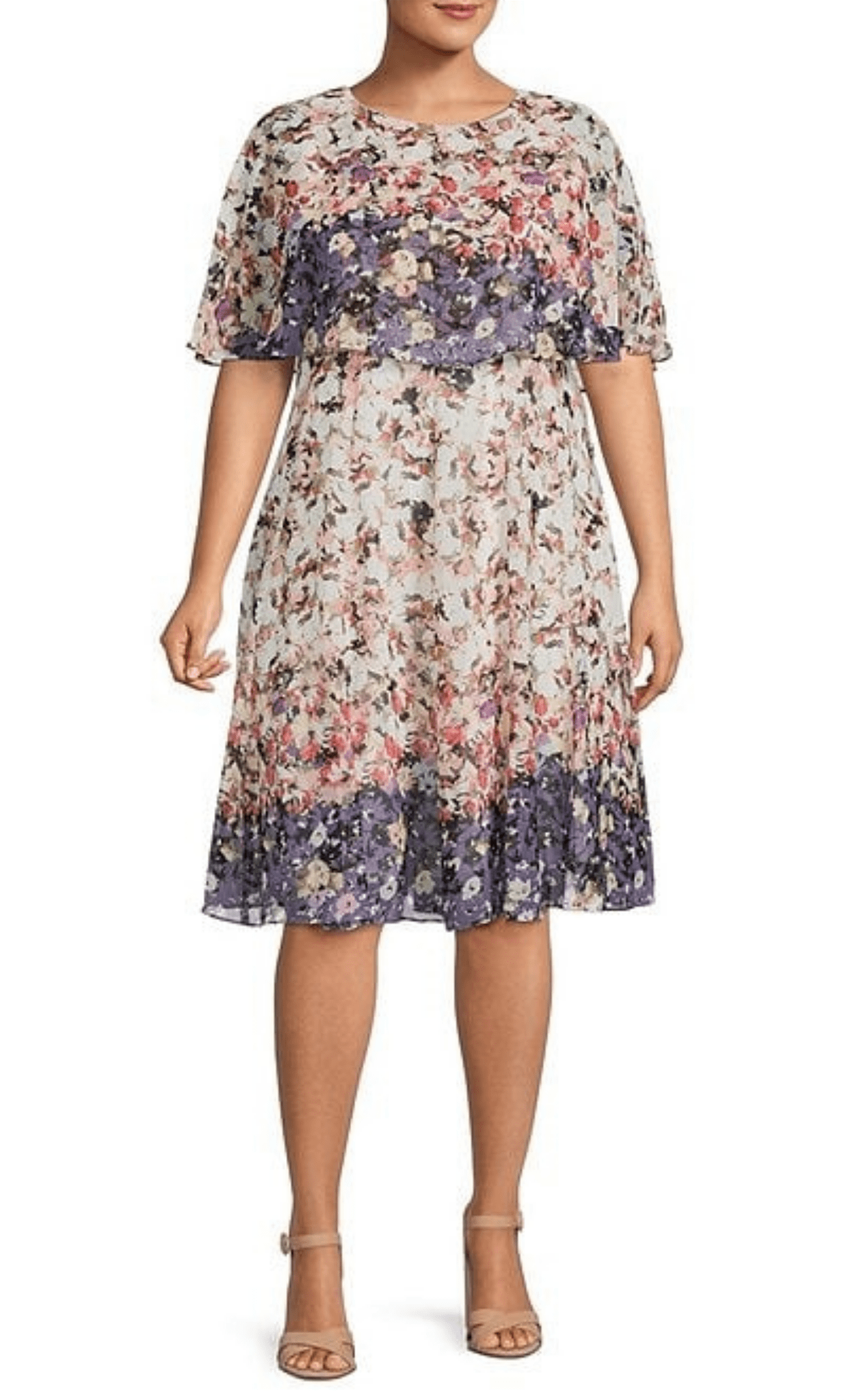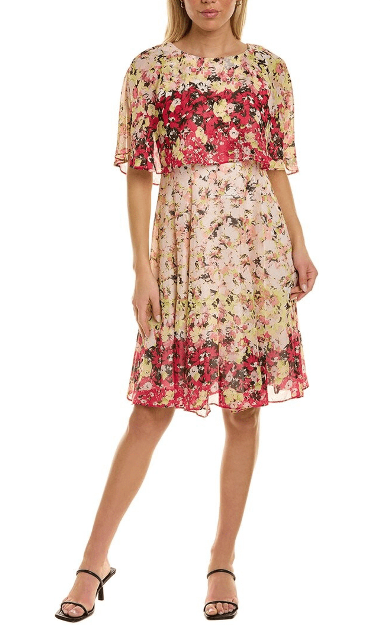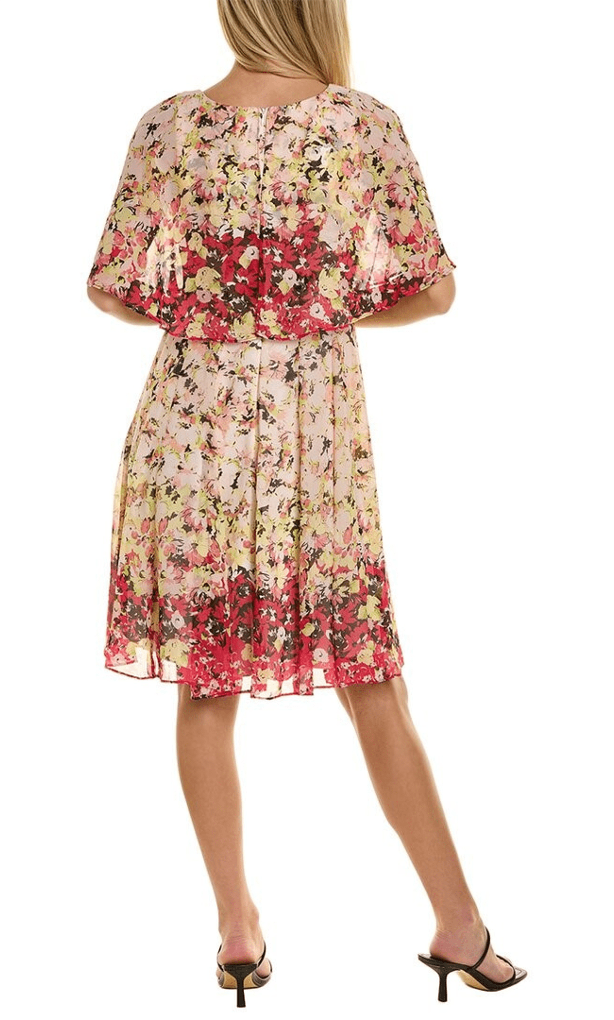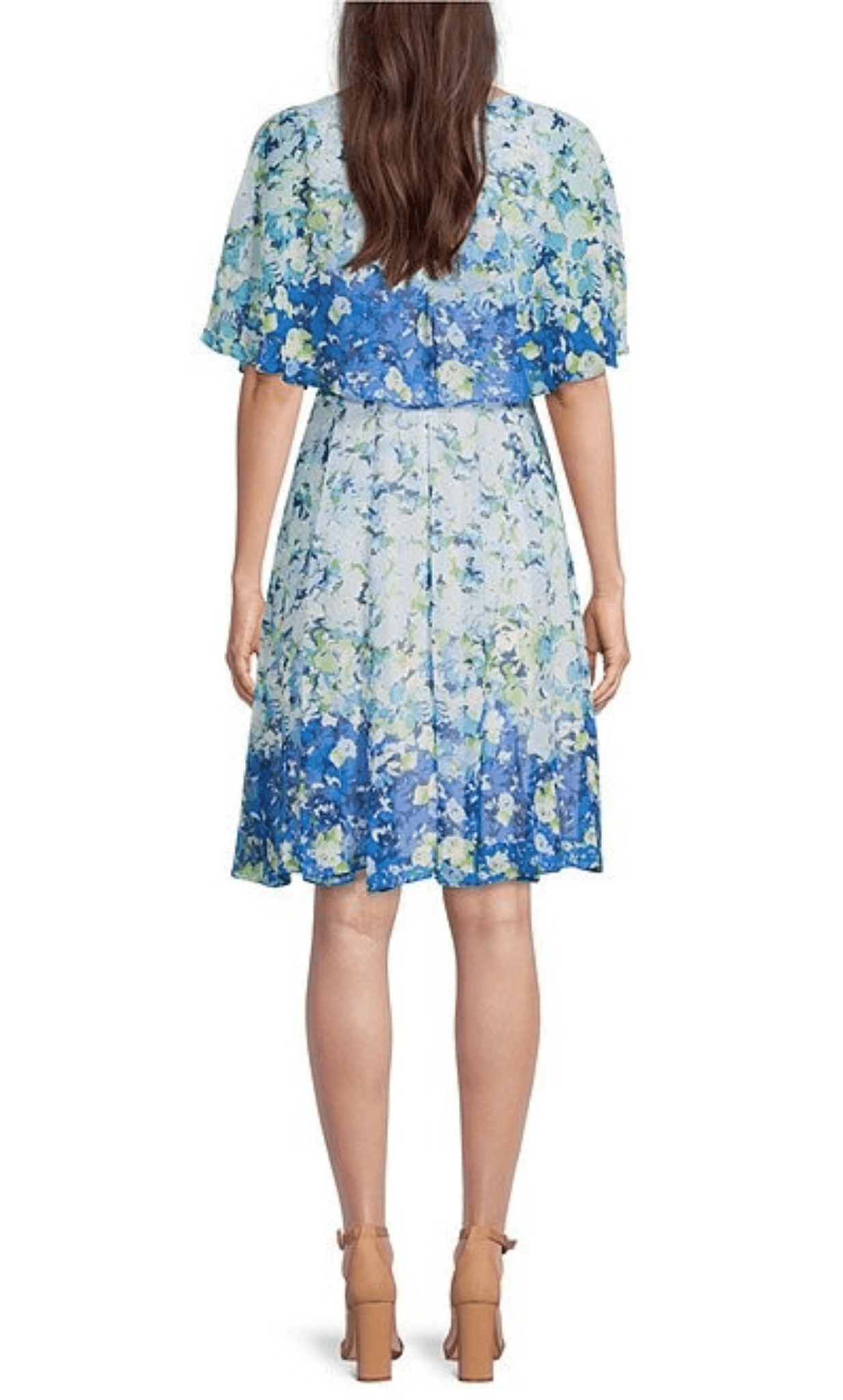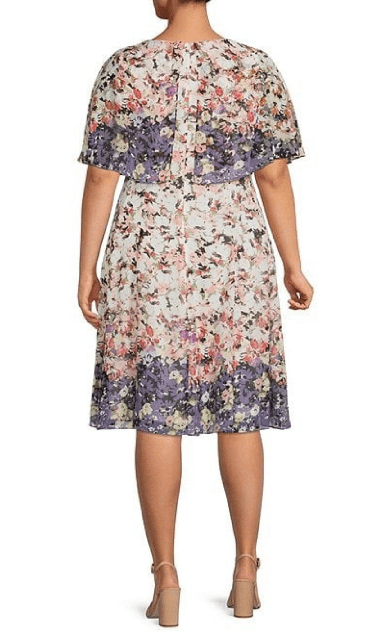 | Details: | Floral Print, Short Cape Sleeve, Full Back, Hidden Back Zipper |