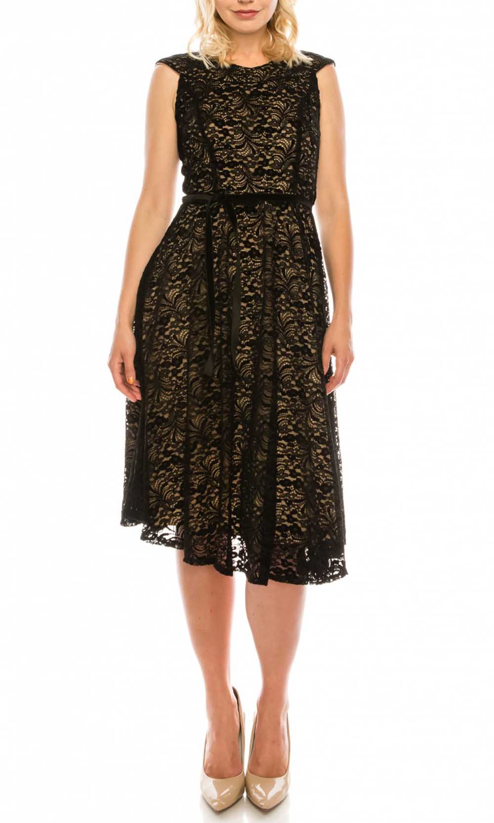 | Details: | Velveted Lace, Nude Lining, Cap Sleeves, Velvet Ribbon Tie Waist, Full Back, Back Zipper Closure, Knee Length Hem |