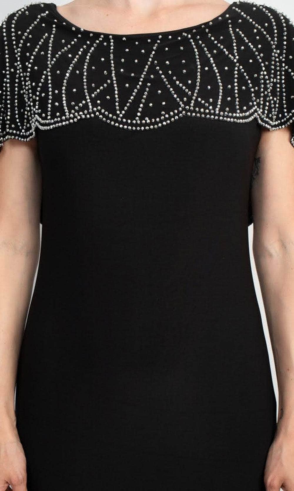 Enhance your elegance with Immediate Apparel 267278, a dress that seamlessly blends contemporary sophistication with timeless charm. The bateau neck gracefully frames your collarbone, while the V-back adds an element of allure. The beaded capelet creates an elegant and eye-catching detail, enhancing the solid jersey fabric's versatility. With shirt sleeves and a full-length design, this dress offers comfort and style for any occasion. Immediate Apparel 267278, is more than just clothing; it's an expression of your unique grace and confidence, leaving a lasting impression wherever you go. Model is wearing Black Silver color.