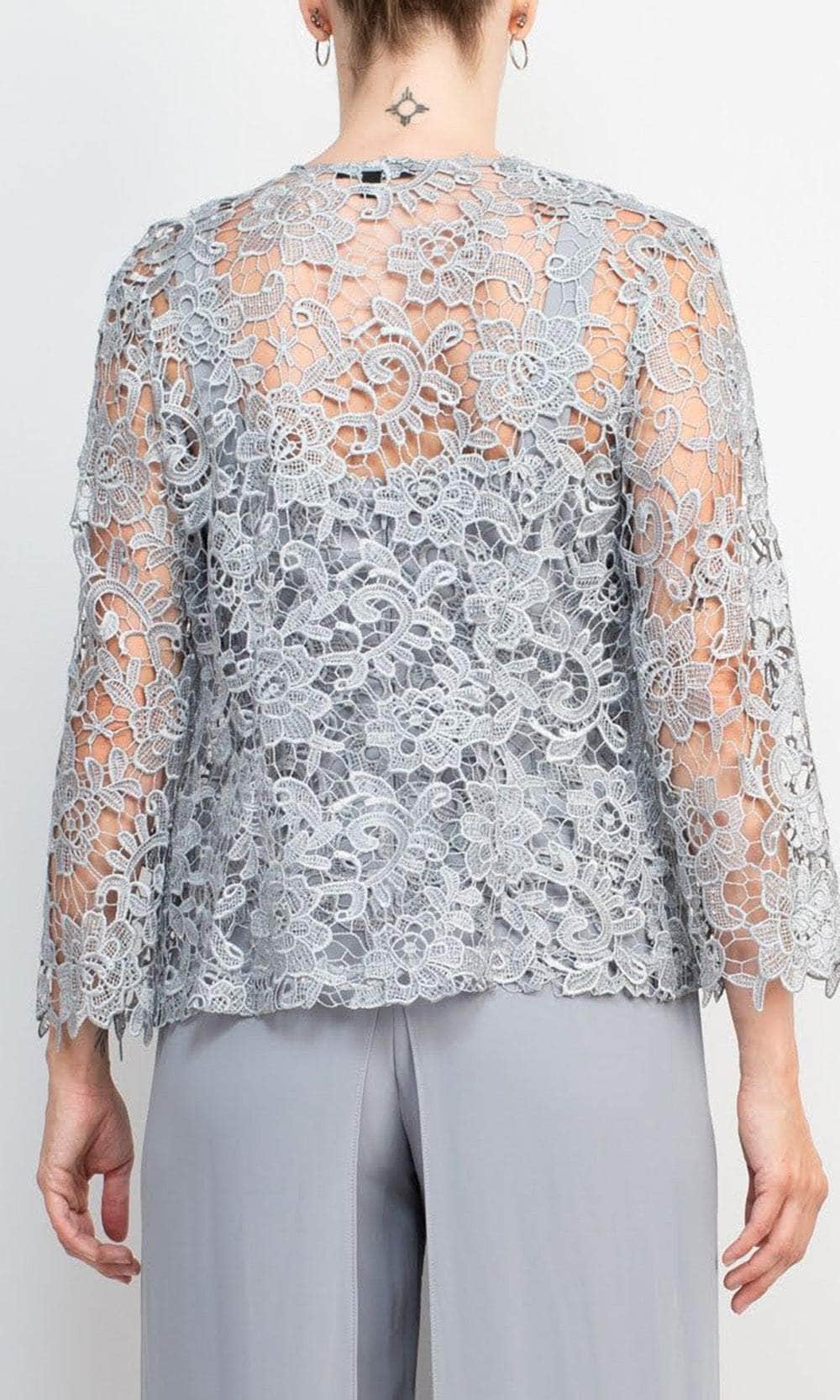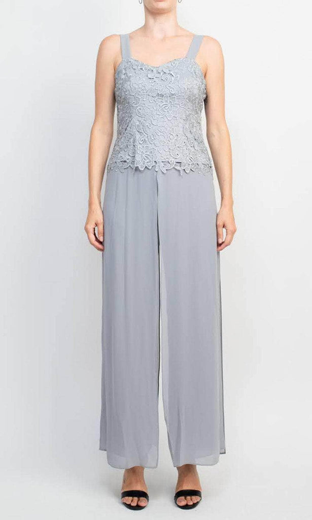 This Immediate Apparel 267445 is a masterpiece of modern elegance. This sleeveless lace bodice wide-leg jumpsuit redefines sophistication, boasting a sweetheart neckline that exudes timeless charm. The back is secured with a central zipper closure for a seamless fit, ensuring effortless allure. A matching lace jacket adds an extra layer of grace. With this Immediate Apparel 267445, you'll captivate everyone in the room you enter, making a lasting impression wherever you go. Model is wearing Silver color.