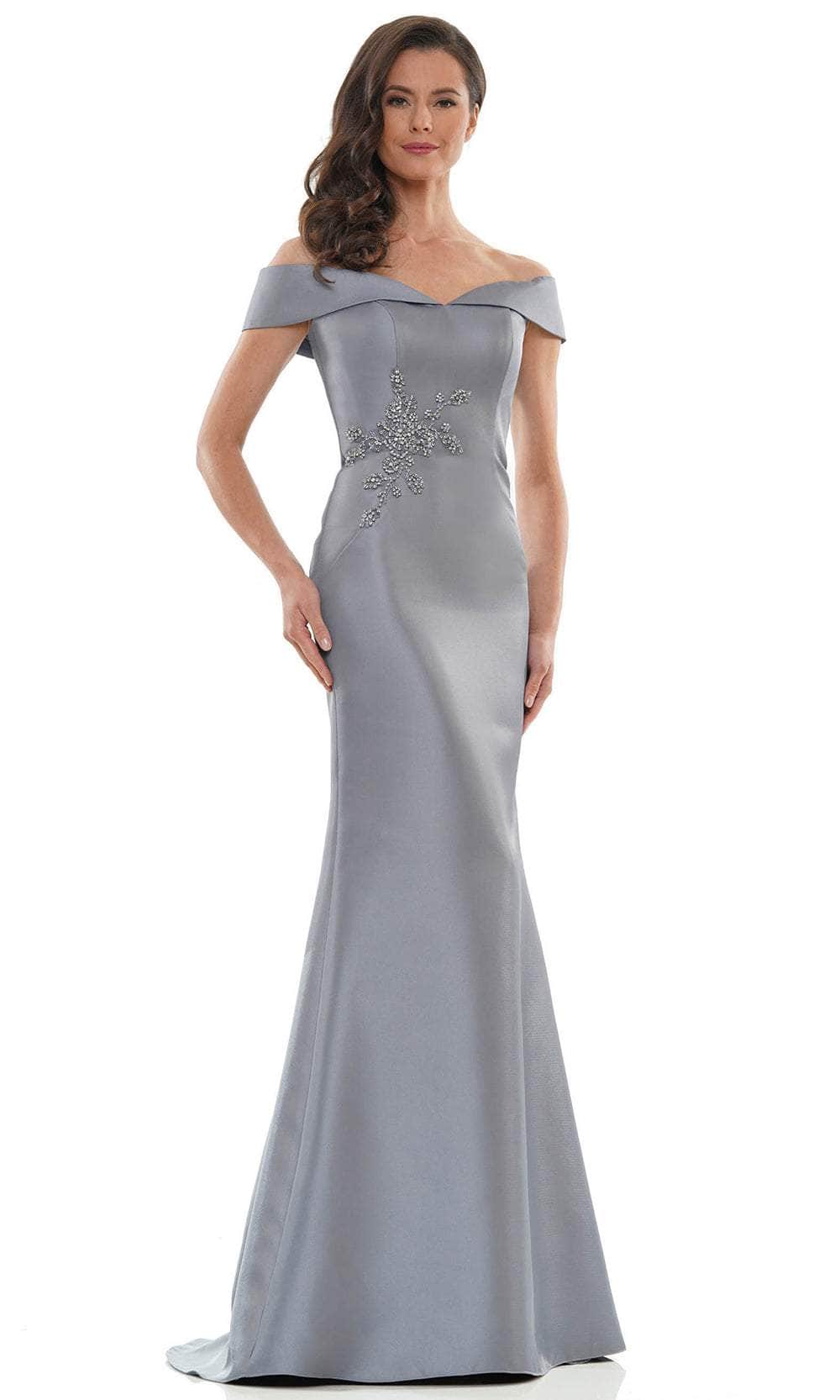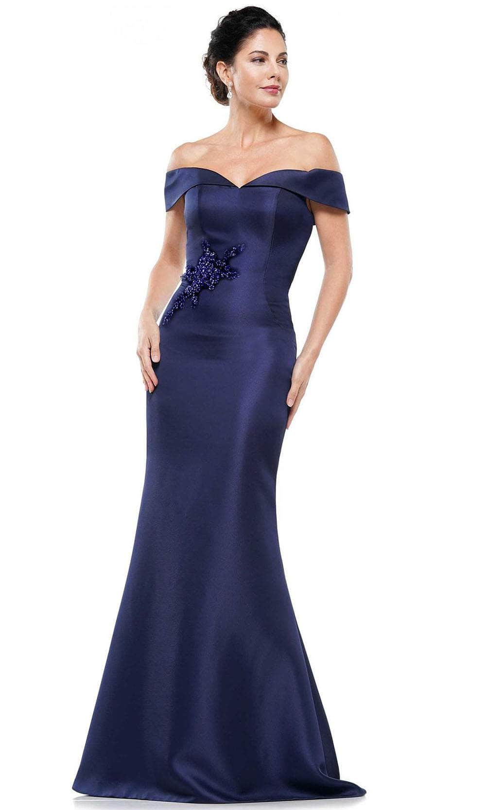 Catch a glint of sparkle in his eyes as you walk by in this Marsoni by Colors MV1003 creation. Sculpted in a sleek fabric, this lavish piece shows an off shoulder neckline with a fold over sweetheart notch design. Sewn at the side with a florid beadwork, the sleek skirt has a slight mermaid flare and a shiny finish. Look elegant as you saunter in grace in this Marsoni by Colors masterpiece. Models are wearing the Blush and Navy colors. Find more Mermaid Dresses.