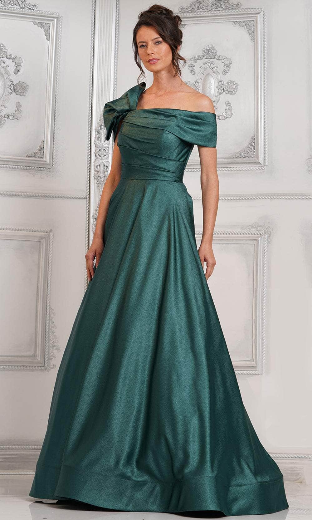 Turn every head in the superb Marsoni by Colors MV1288 prom dress. Sumptuously fashioned from pearl satin fabric, this piece beautifully contours your curves for an effortlessly elegant silhouette. The top showcases a diagonal pleating that lend a sophisticated texture to the design. An off-shoulder neckline and asymmetrical sleeves adds a modern twist, blending timeless grace. The midrise open back is secured by a concealed zipper, offering a smooth and comfy fit. Carved into an A-line silhouette with a sweeping train in the end, this Marsoni by Colors MV1288 masterpiece is the epitome of glamour for any unforgettable evening. Models are wearing Navy, Deep Green, and Slate Blue colors.