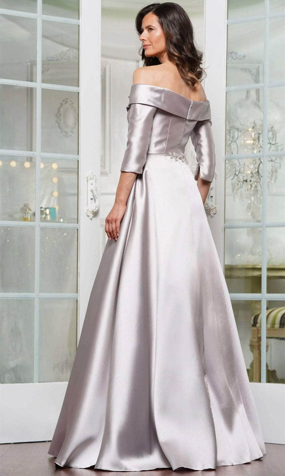 Embrace the romance of the Marsoni by Colors MV1336 gown. This captivating design features a luxurious Mikado fabric. The off-shoulder neckline with a foldover accent creates a delicate and feminine look. The lace appliques adorned with crystal floral beading add a touch of glamour. The quarter sleeves and midrise back complement the Ball Gown skirt with a sweeping train, ensuring a grand entrance. Step into a fairytale with the Marsoni by Colors MV1336 gown. Models are wearing the Black, Navy, Taupe, and Slate Blue colors.
