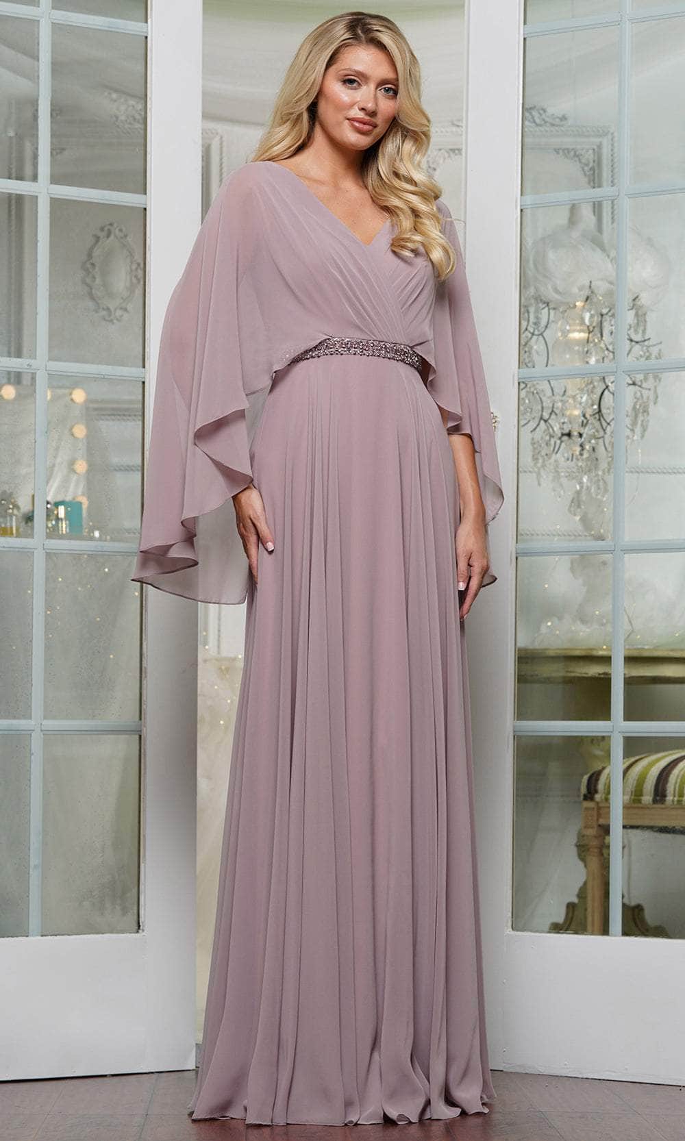 Get ready to turn heads in this elegant and beautiful creation from Marsoni by Colors MV1350. The gown is fashioned from luxurious chiffon, featuring a dramatic capelet that effortlessly drapes over the shoulders and enhances its overall appeal. A wrap bodice creates a flattering fit, while the v-neckline captivatingly mirrors the V-shaped open back. The beaded belt at the waist catches the light and draws attention to your waistline. In an A-line silhouette, the skirt embraces all shapes and flows to the full-length hemline. This Marsoni by Colors MV1350 long gown is a must-have for mothers of the bride or any chic event. Models are wearing Aubergine, Dusty Rose, and Electric Royal colors.