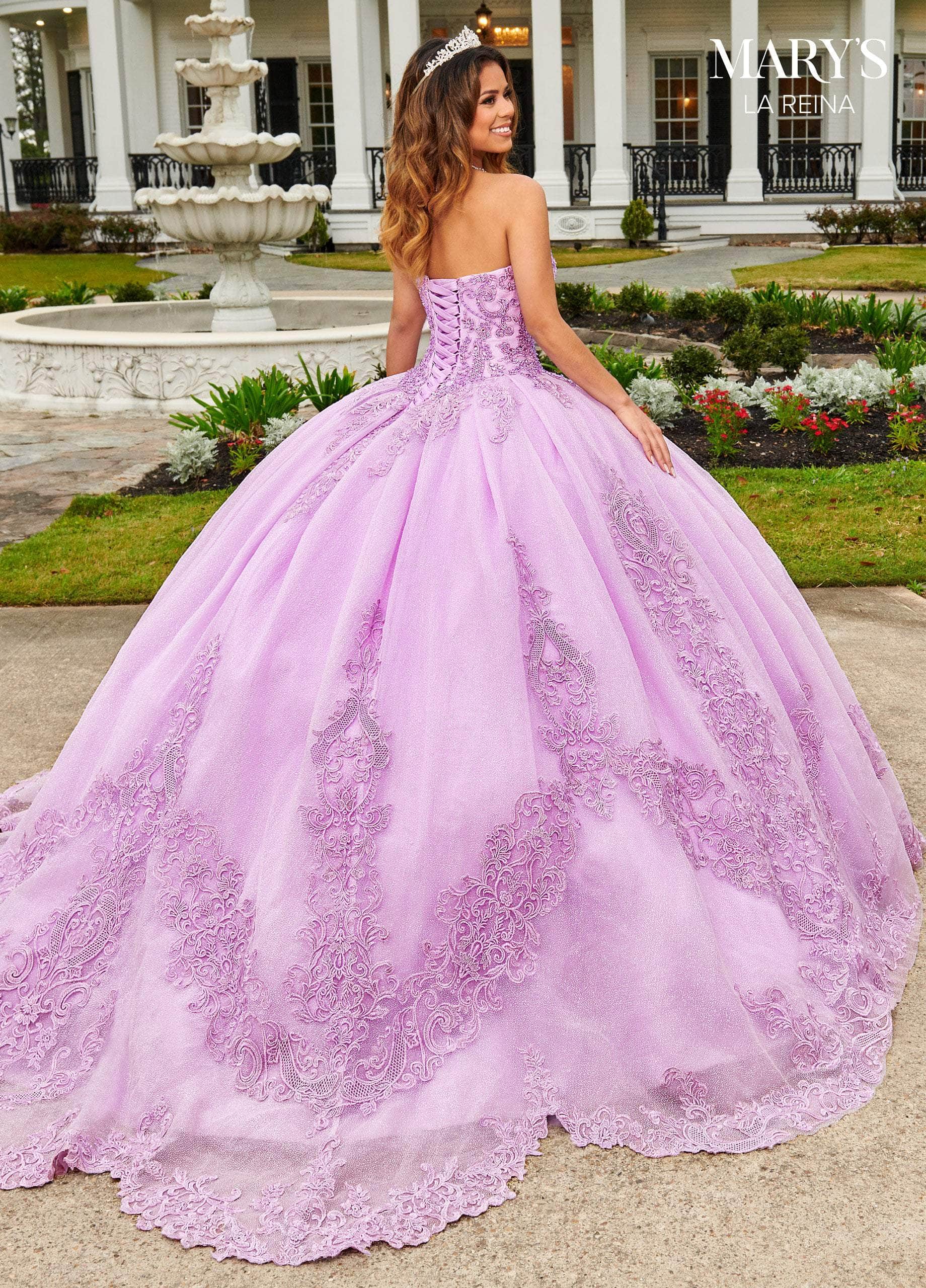 Create a lasting impression in this beautiful creation by Mary's Bridal MQ2156. Intricate bead appliques beautifully embroidered unto the fitted bodice. Tailored in a strapless frame, the gown is styled in a sweetheart neckline paired with detachable sheer embellished long sleeves. A classic lace up tie graces the mid-open back as the detailed appliques continue to beautify the pleated ballgown skirt as it trails down to a full-length hem with a scallop trimmed train. A detachable bolero jacket is added for a more modern look. Steal the show in this captivating masterpiece from the Mary's Bridal collection. Models are wearing Light Blue, Lilac, and Pink colors.