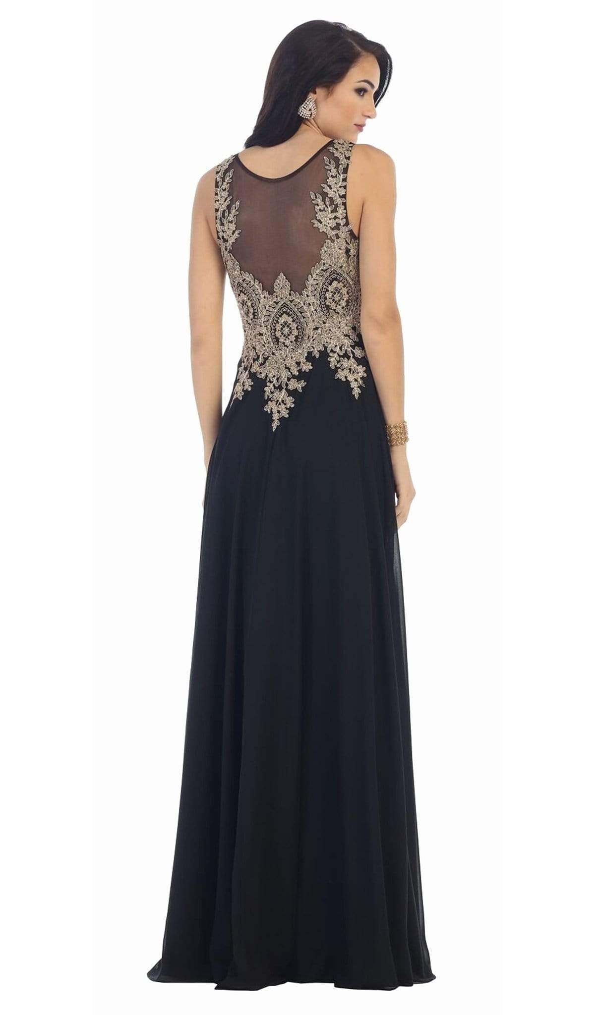 | Details: | Sleeveless, Rhinestones, Ornate Lace, Illusion Full Back, Back Zipper Closure, Full Length Hem |