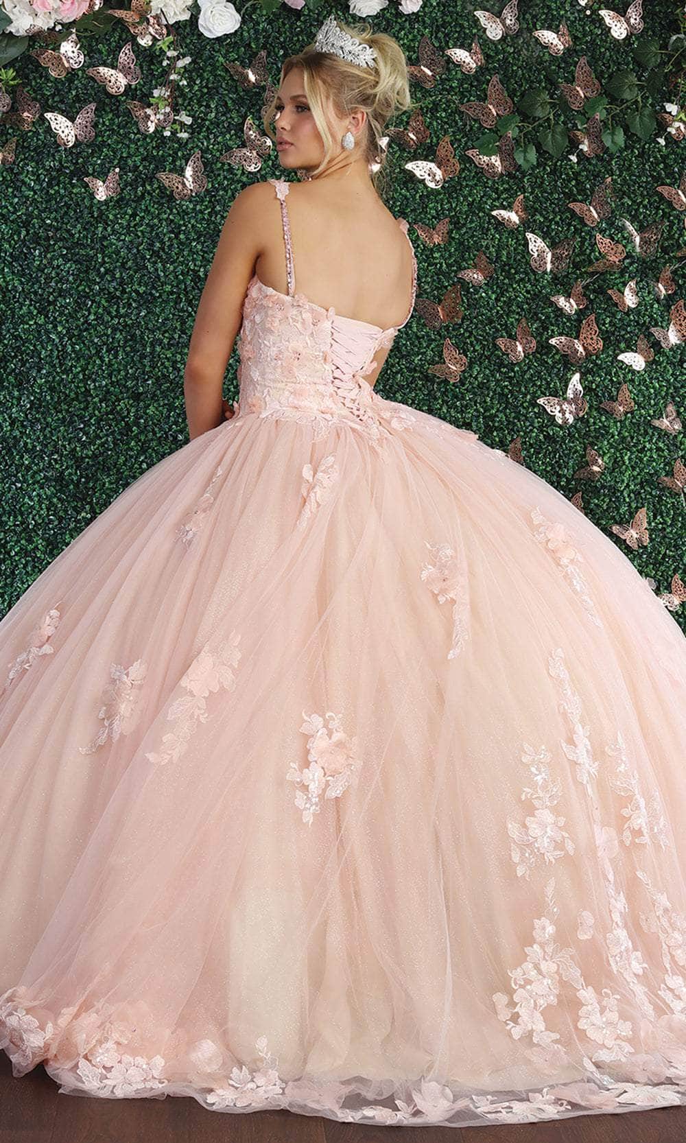 Enchant everyone with your charming presence in this May Queen LK159 creation. This sweet and lovely dress is decorated in 3D floral appliques with sparkling beadwork trailing throughout the bodice. This sleeveless style presents a sweetheart neckline supported by laced straps that splits into a thin beaded strap at the mid-open back. Defined with a corset lace-up tie, the full length skirt flares a magnificent ballgown silhouette ending in a sweep train. Enter the threshold of the ballroom in style in this May Queen LK159 masterpiece. Models are wearing the Baby Blue, Blush/Nude and Lilac colors. Find more Floral Dresses.