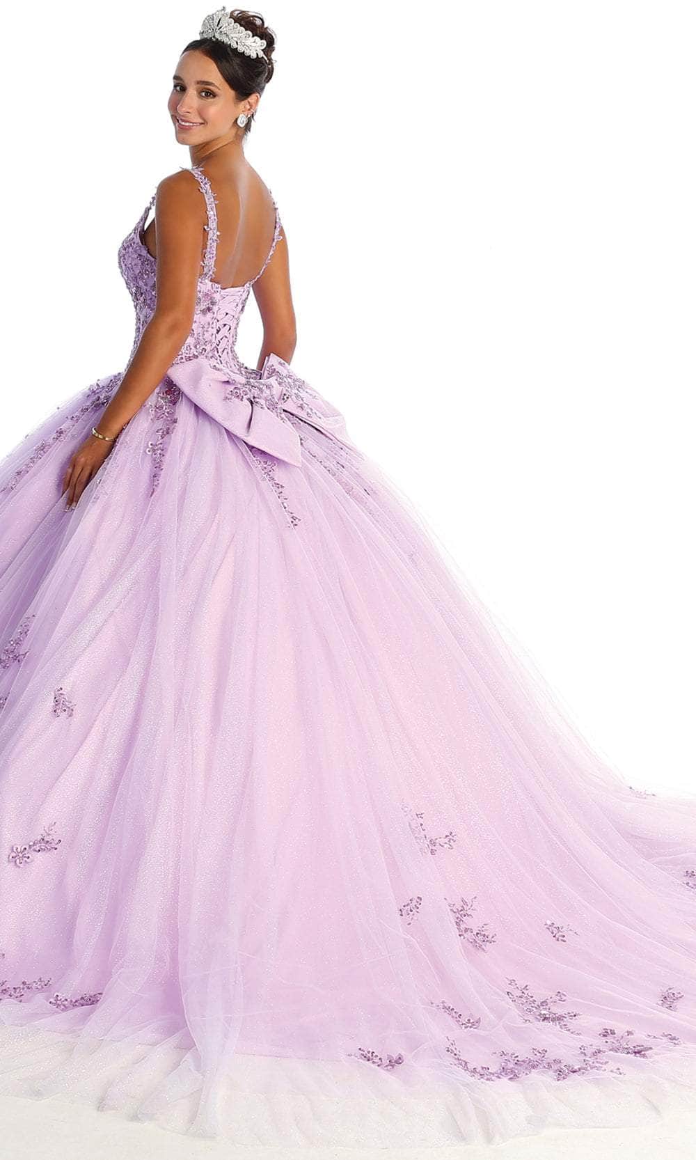 Embrace a wonderful evening in this wondrous prom gown by May Queen LK174. A show-stopping gown is beautifully adorned in lace embroidery and beadwork accents trailing down the fit and flare silhouette. It exhibits a deep v-neckline, wide laced straps and a corset lace-up open back. The gathered skirt flares a voluminous ballgown silhouette that flows into a full length hem and court train. A large bow accent at the low back gives a charming look to this beauty. Breeze through your special day while making a stylish statement in this May Queen LK174 masterpiece. Models are wearing the Blush, Hunter Green and Lilac colors.