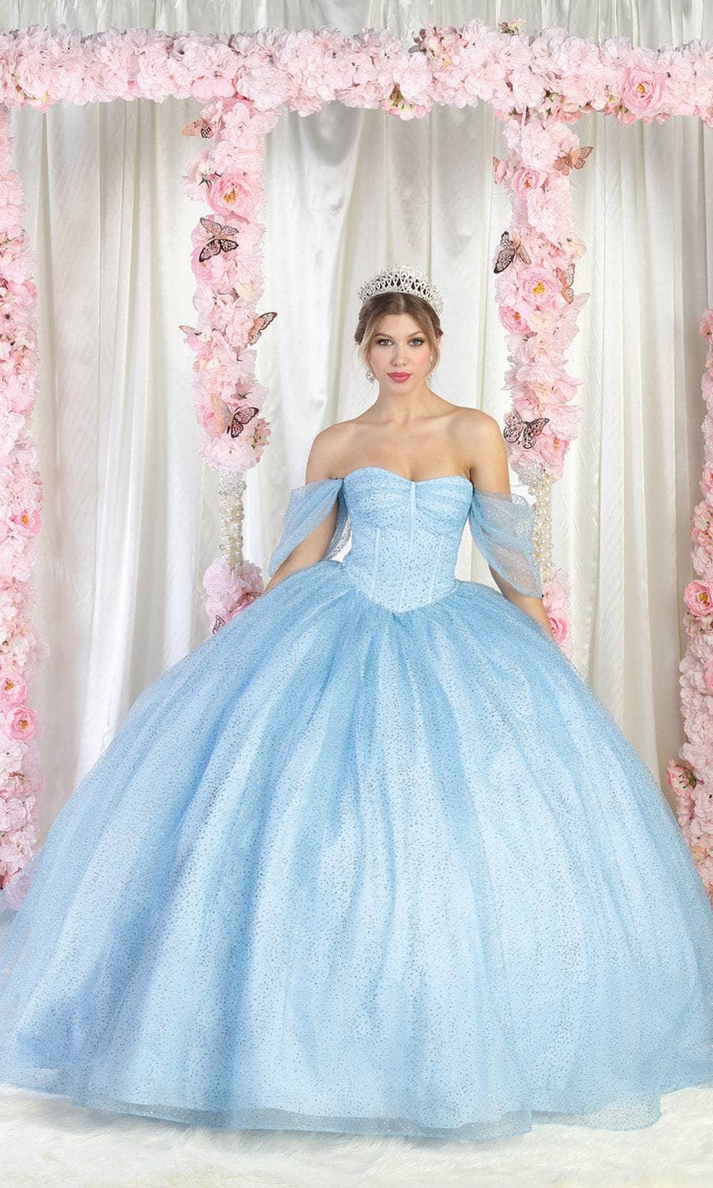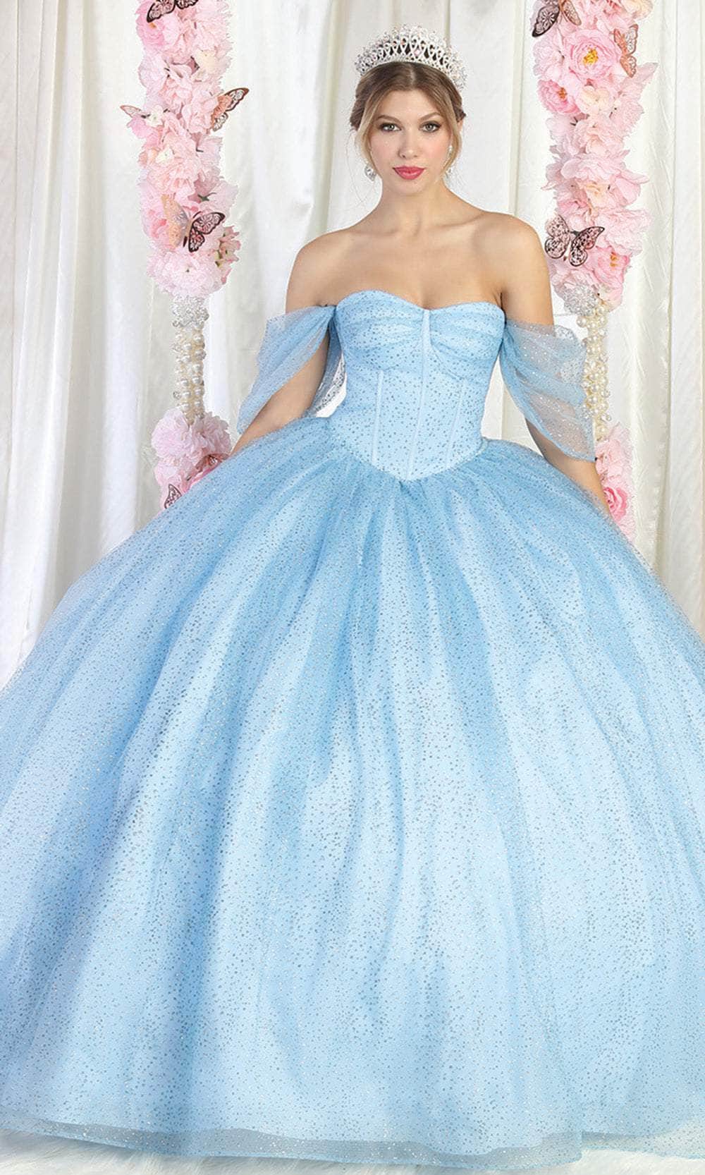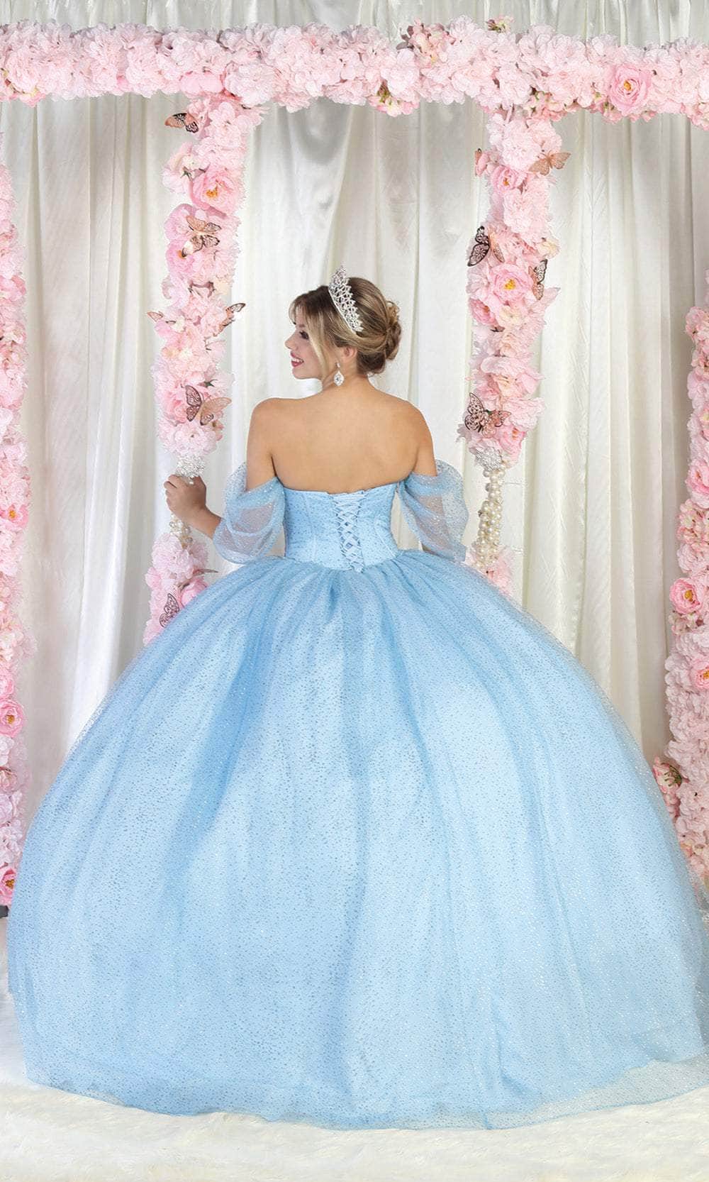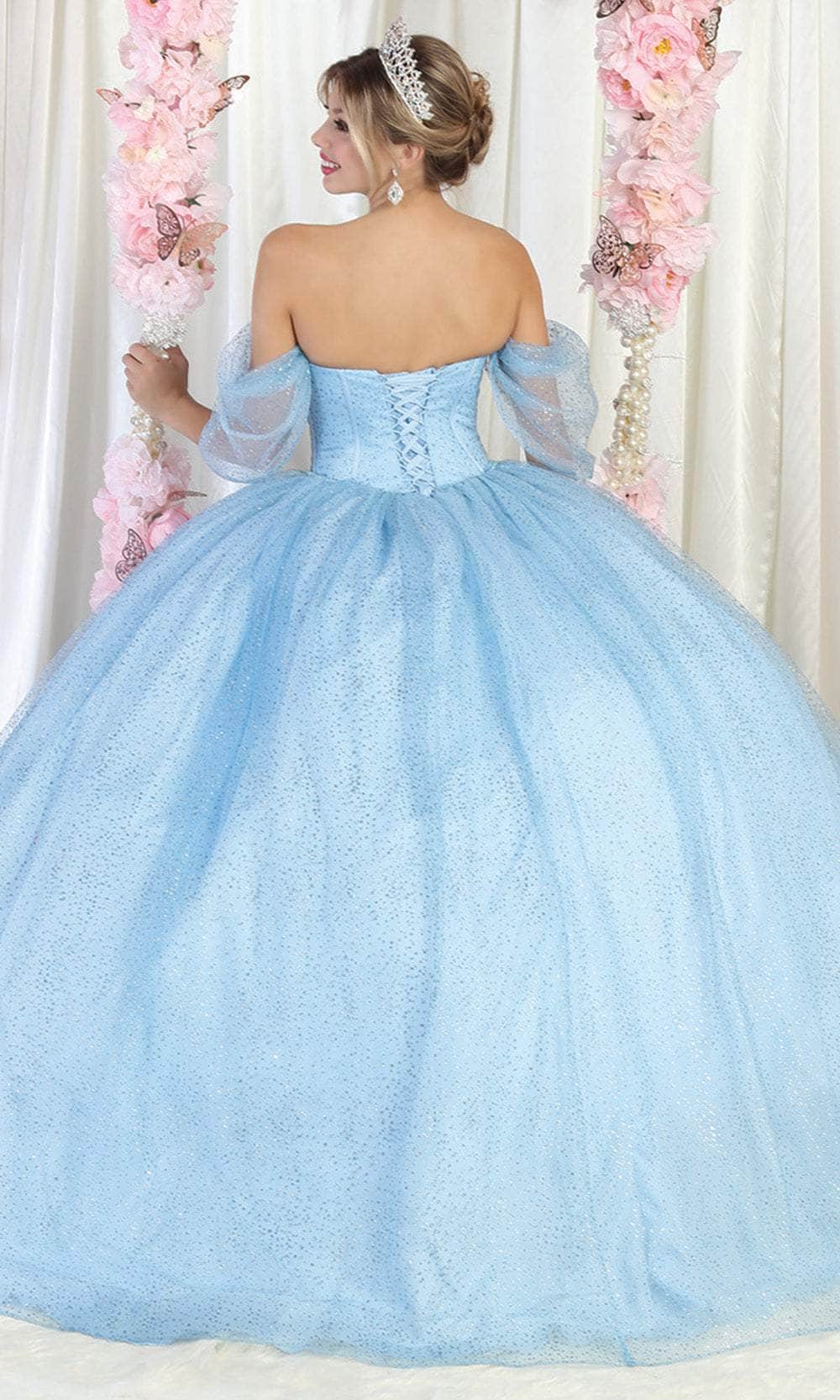 Step out in style and grace with the breathtaking May Queen LK209 gown, perfect for your next red carpet event. Crafted from sheer fabric and fully embellished with exquisite beads, this gown is a true masterpiece of elegance and glamour. The semi-sweetheart neckline, lace-up back, and off-shoulder sleeves create a sophisticated and feminine silhouette, accentuating your curves in all the right places. To provide additional structure and support, this stunning gown features visible boning in the bodice. The ballgown silhouette of the skirt lends a regal touch to your overall look, making you feel like a true princess. With the May Queen LK209 gown, you are guaranteed to turn heads and make a statement at any formal event. Models are wearing Babyblue, Lilac and Rosegold colors.