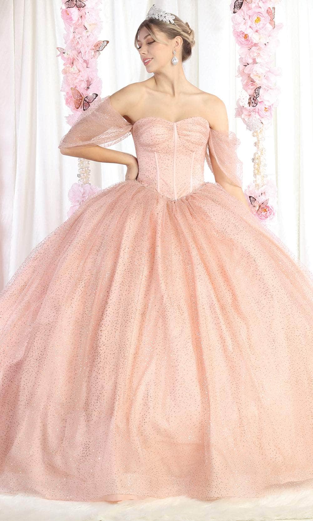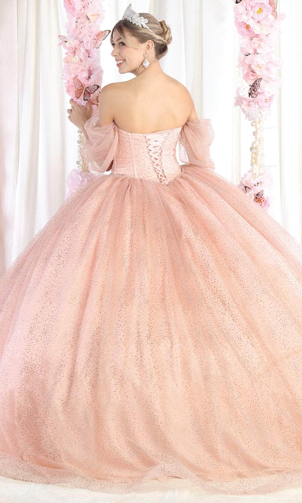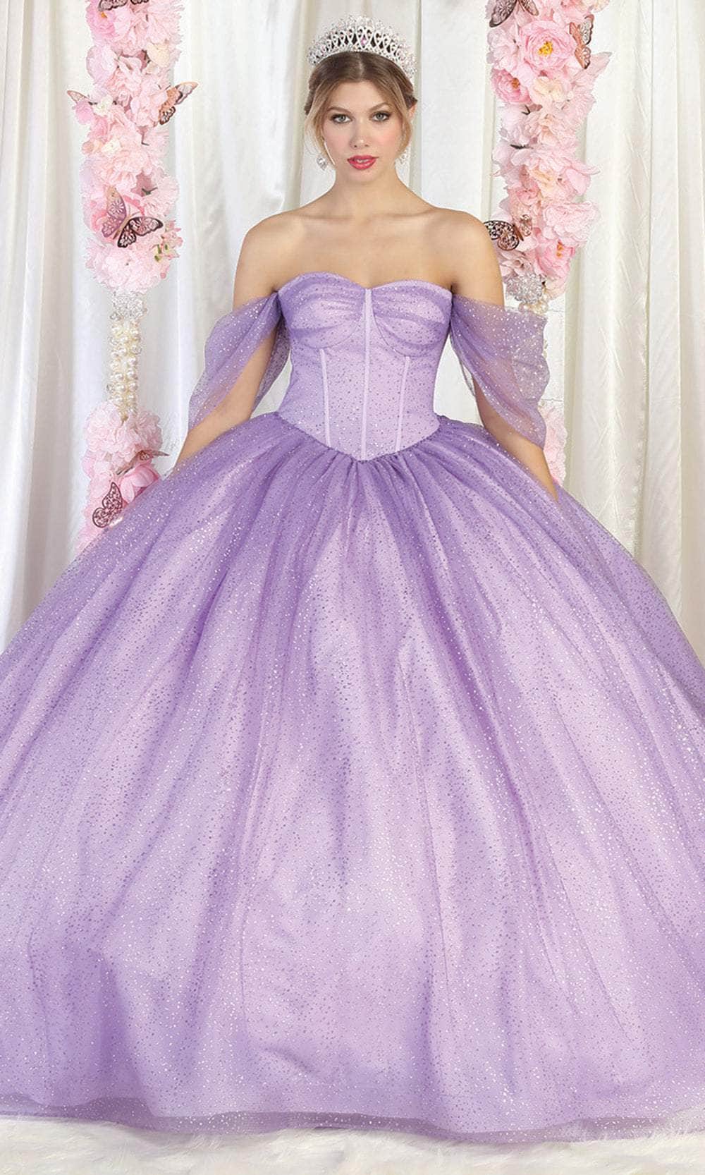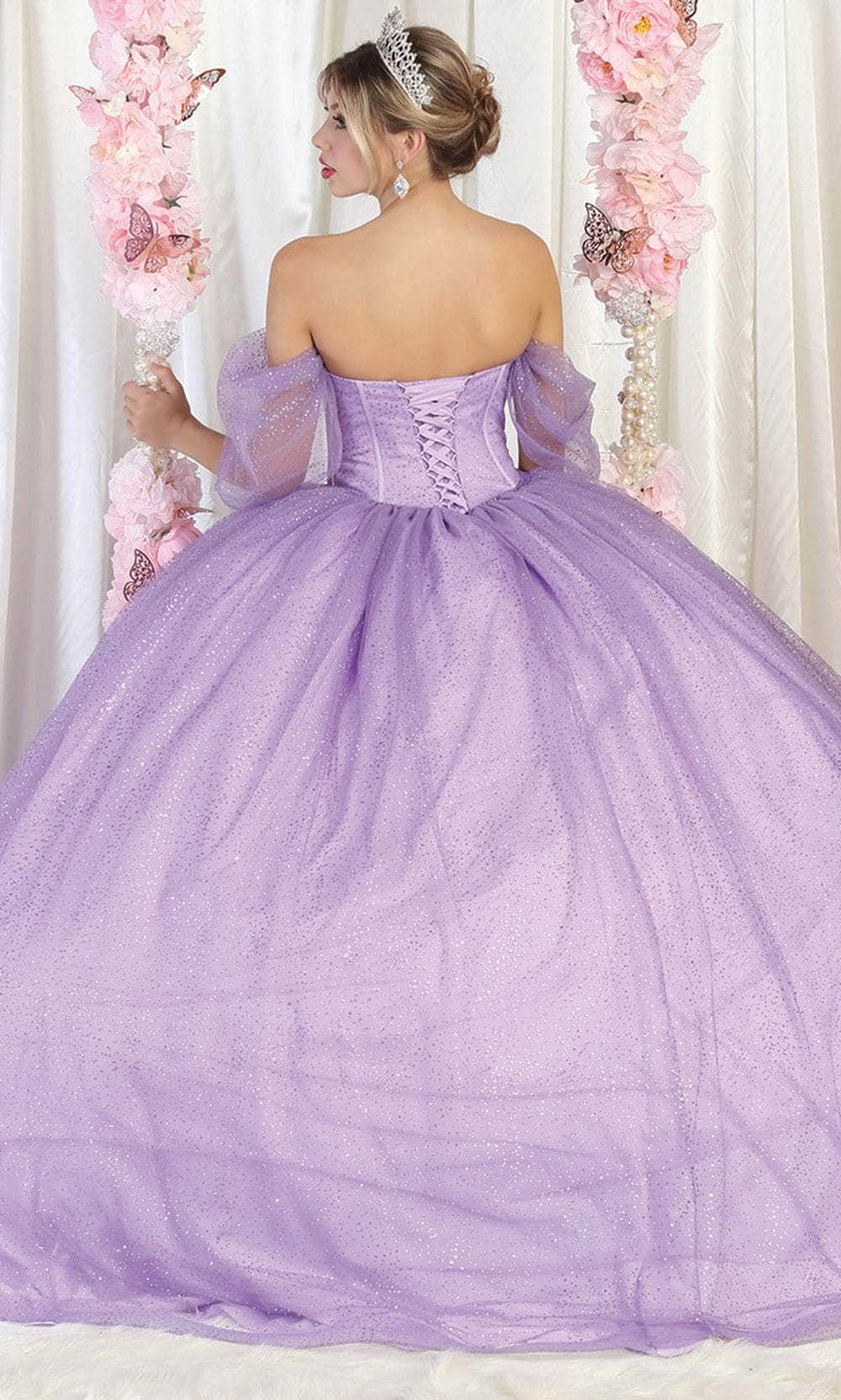 Step out in style and grace with the breathtaking May Queen LK209 gown, perfect for your next red carpet event. Crafted from sheer fabric and fully embellished with exquisite beads, this gown is a true masterpiece of elegance and glamour. The semi-sweetheart neckline, lace-up back, and off-shoulder sleeves create a sophisticated and feminine silhouette, accentuating your curves in all the right places. To provide additional structure and support, this stunning gown features visible boning in the bodice. The ballgown silhouette of the skirt lends a regal touch to your overall look, making you feel like a true princess. With the May Queen LK209 gown, you are guaranteed to turn heads and make a statement at any formal event. Models are wearing Babyblue, Lilac and Rosegold colors.