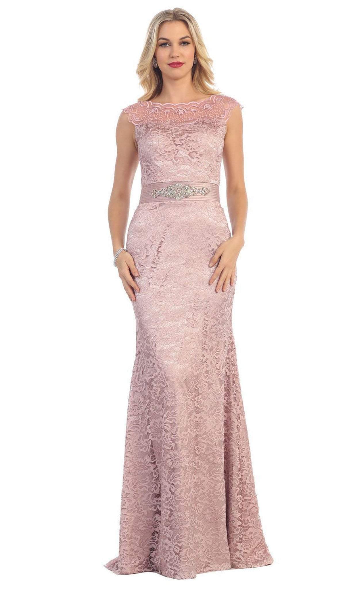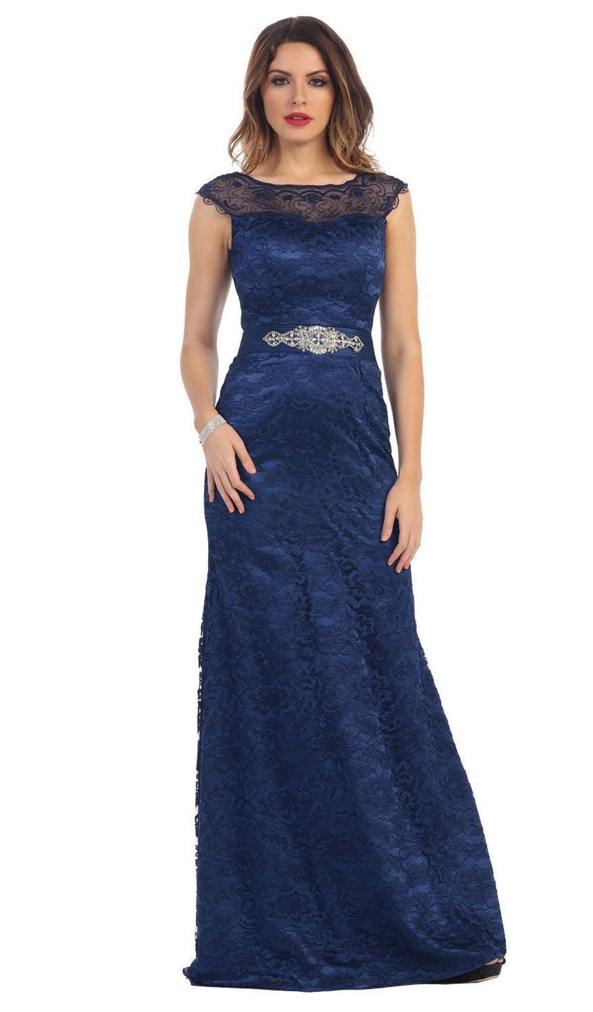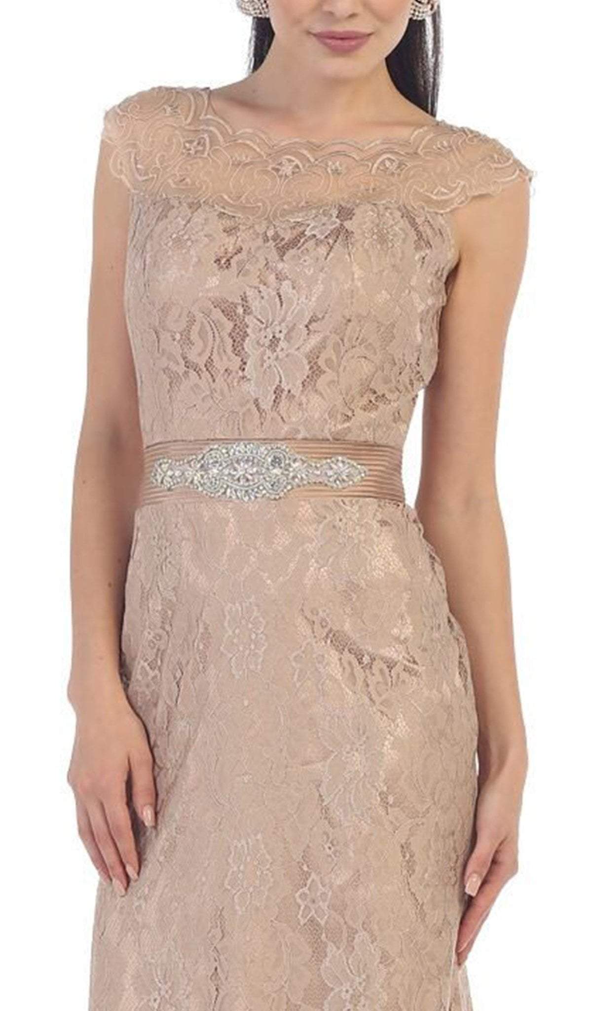 May Queen - MQ1237 Charming Cap Sleeved Bateau Neck Long Formal Dress