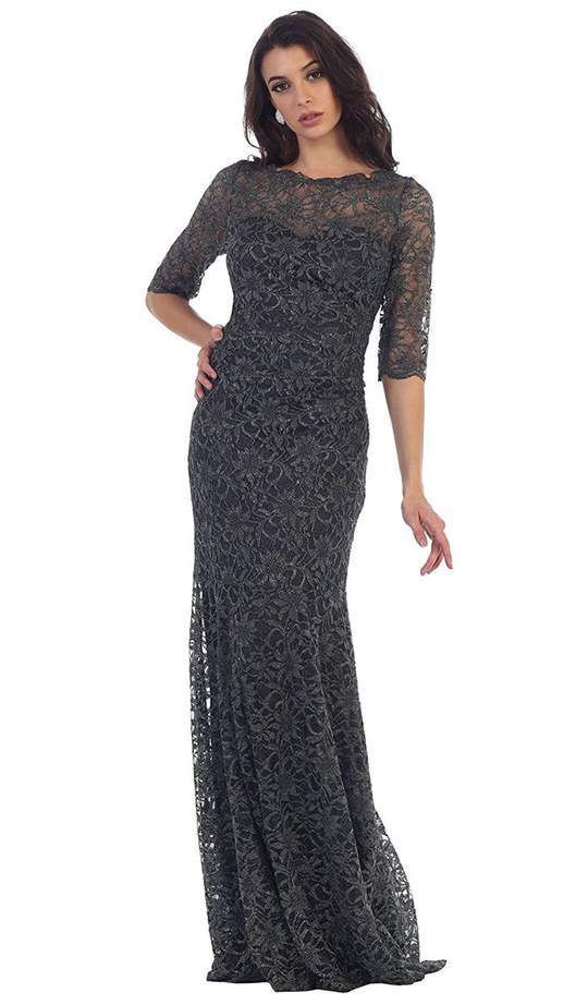 Be strikingly gorgeous in this long dress. Graces in a 3/4 sleeve bateau neckline, the fitted bodice and mermaid skirt is lavishly decorated in lace appliques. Its a classic look that works for many special occasions.