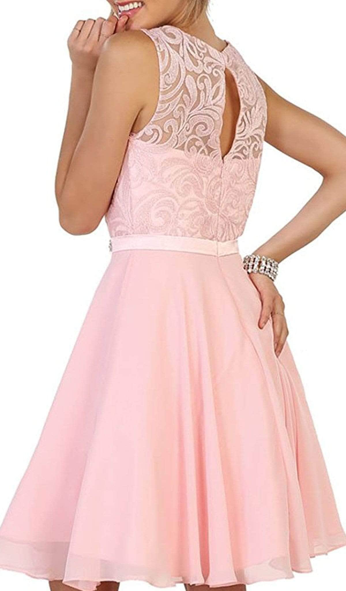 | Details: | Sleeveless, Lace appliques, Illusion details, Embellished waist, Sweetheart bodice, A-line skirt, Pleated, Keyhole back, Back zip closure |
