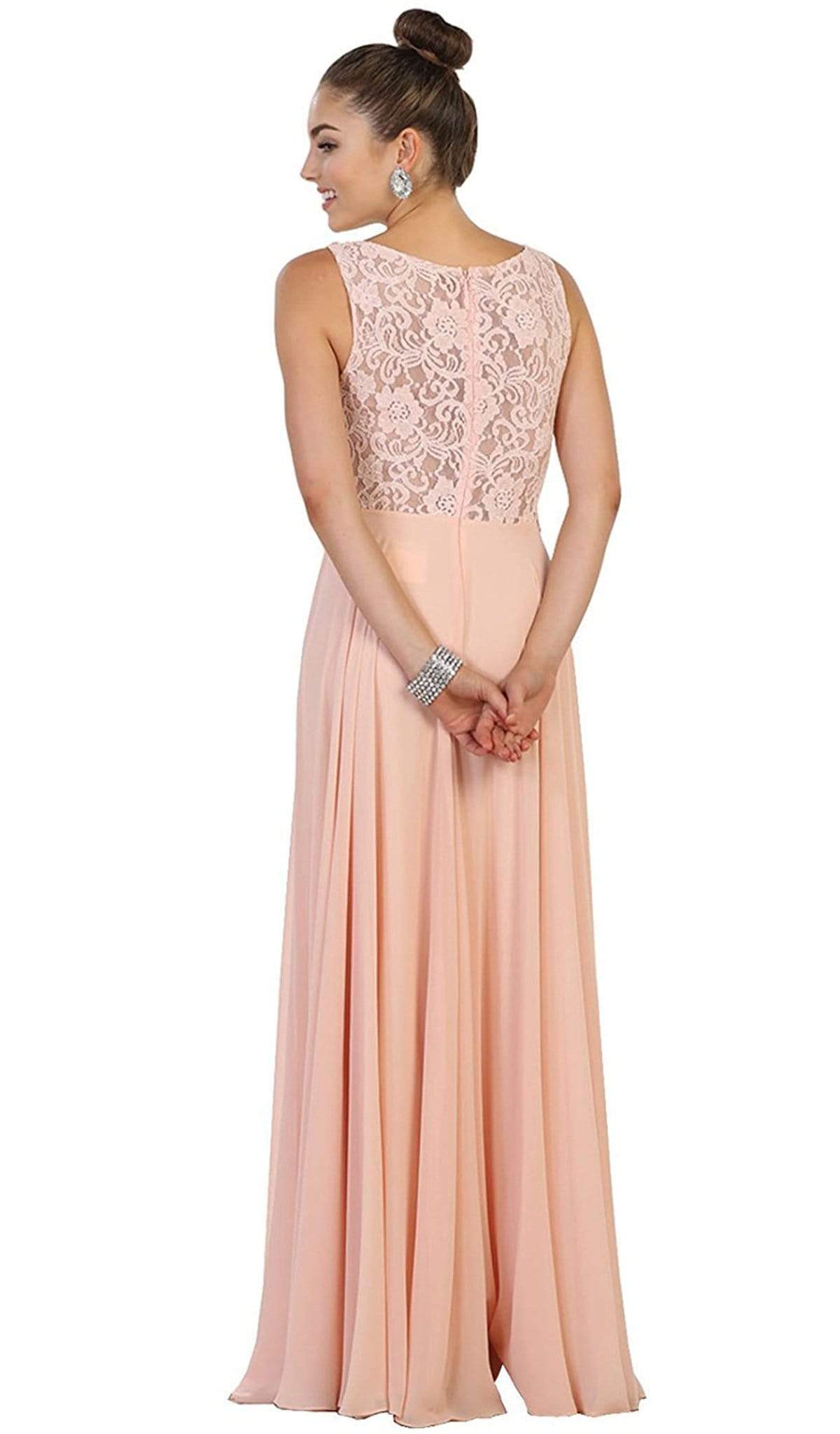 Glamour gets gorgeous when you don in this classy May Queen MQ1539 evening dress. The fitted bodice features a scoop neckline with sheer panels highlighting a sweetheart lining and a zipper closure that secures the sheer full back. Soft pleats adorn the a-line skirt which cascades to a full length hemline. Be ready to mesmerize the night with this lovely May Queen creation.
