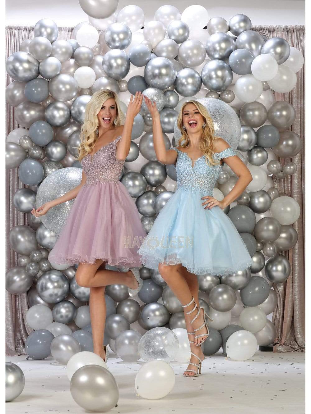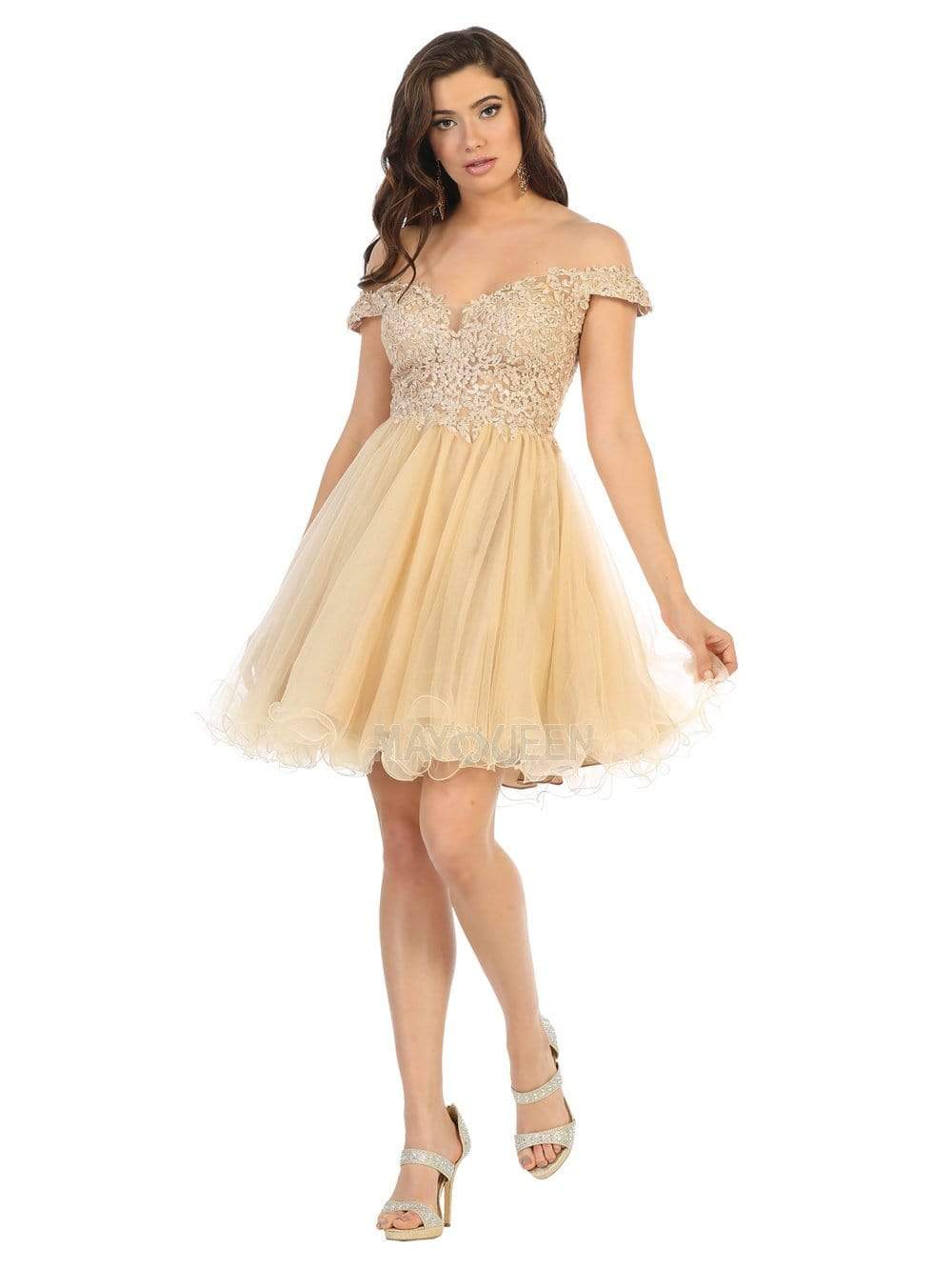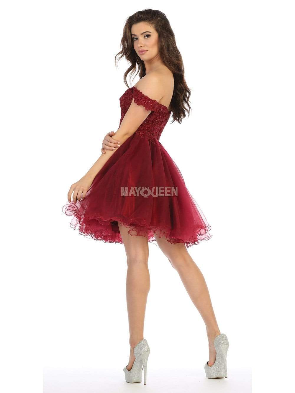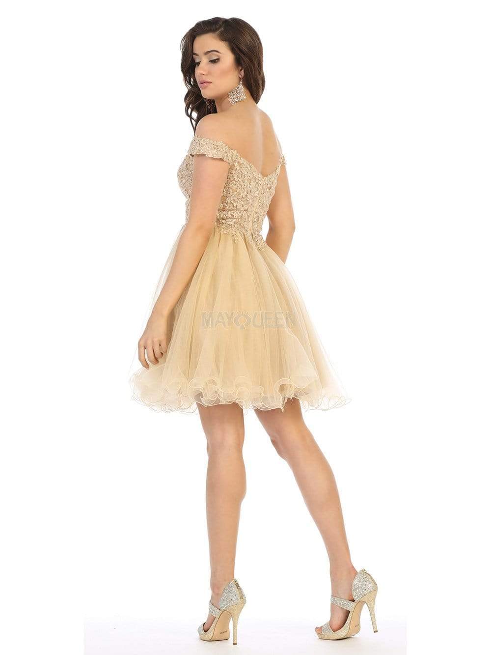 May Queen - MQ1663 Off Shoulder Sheer Lace Bodice Tulle Cocktail Dress