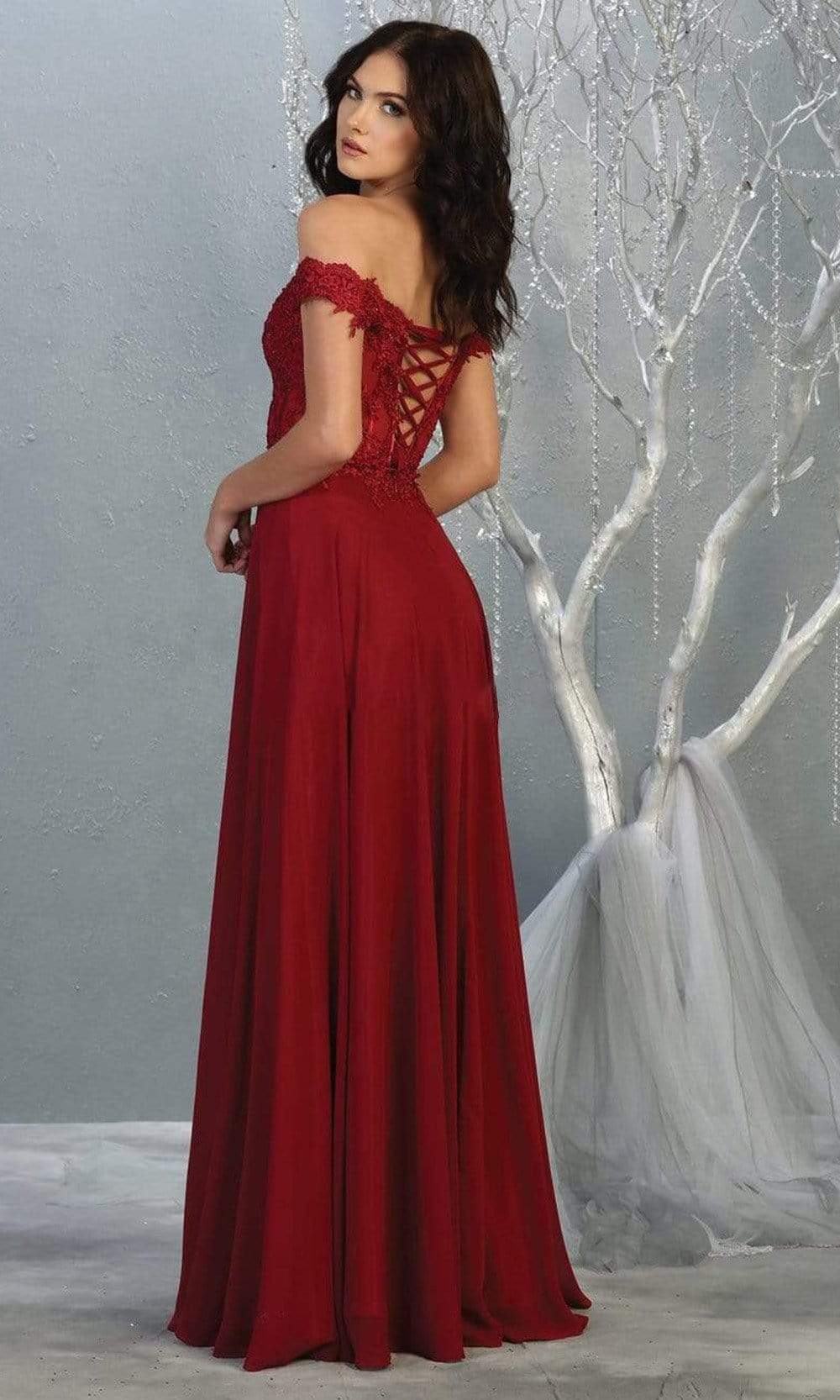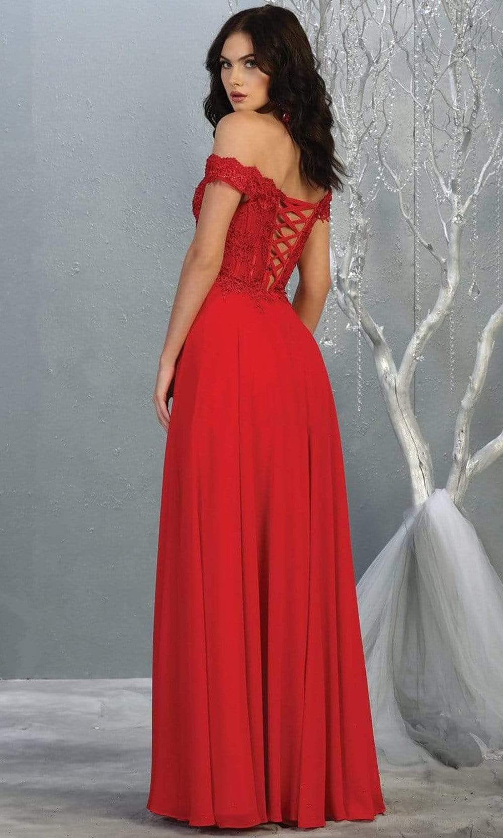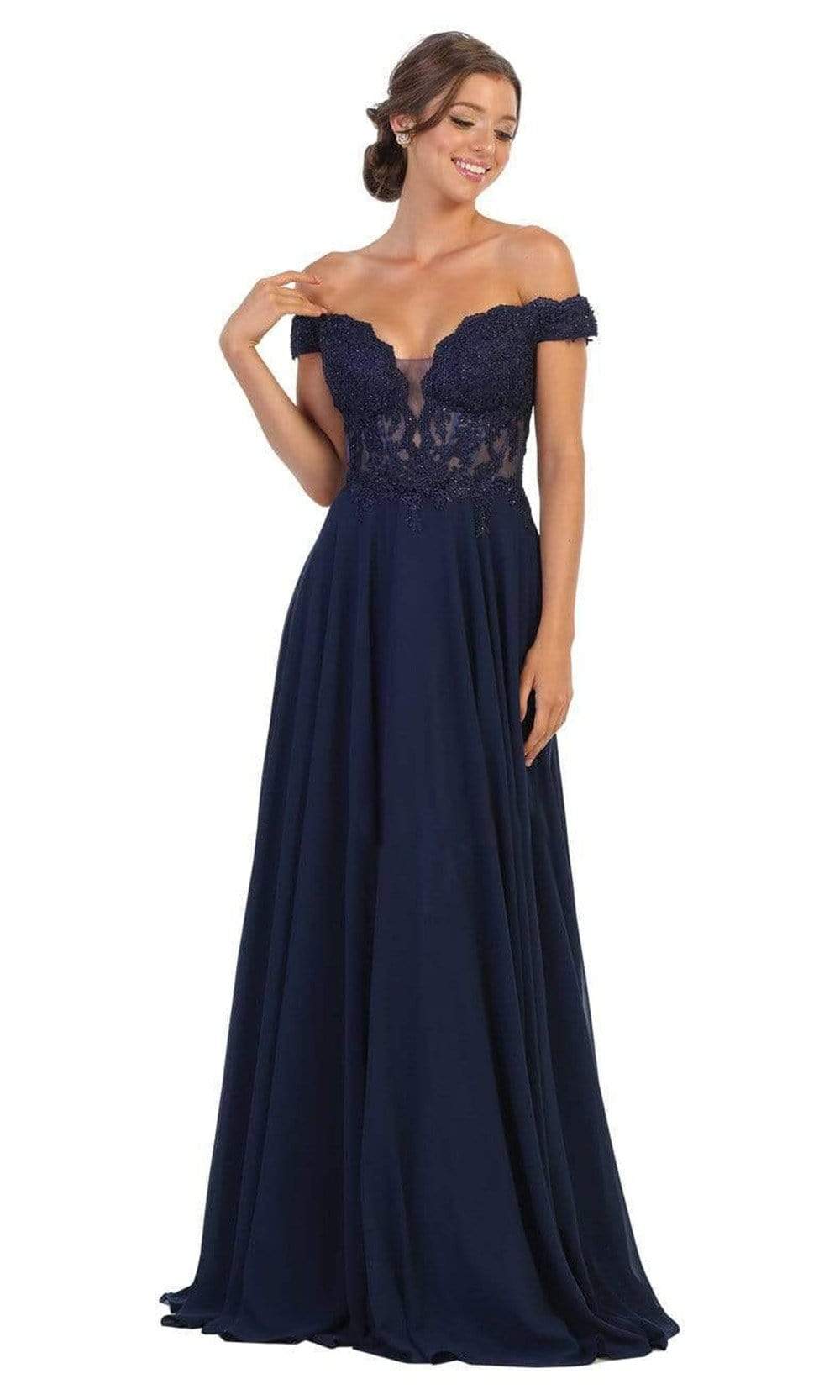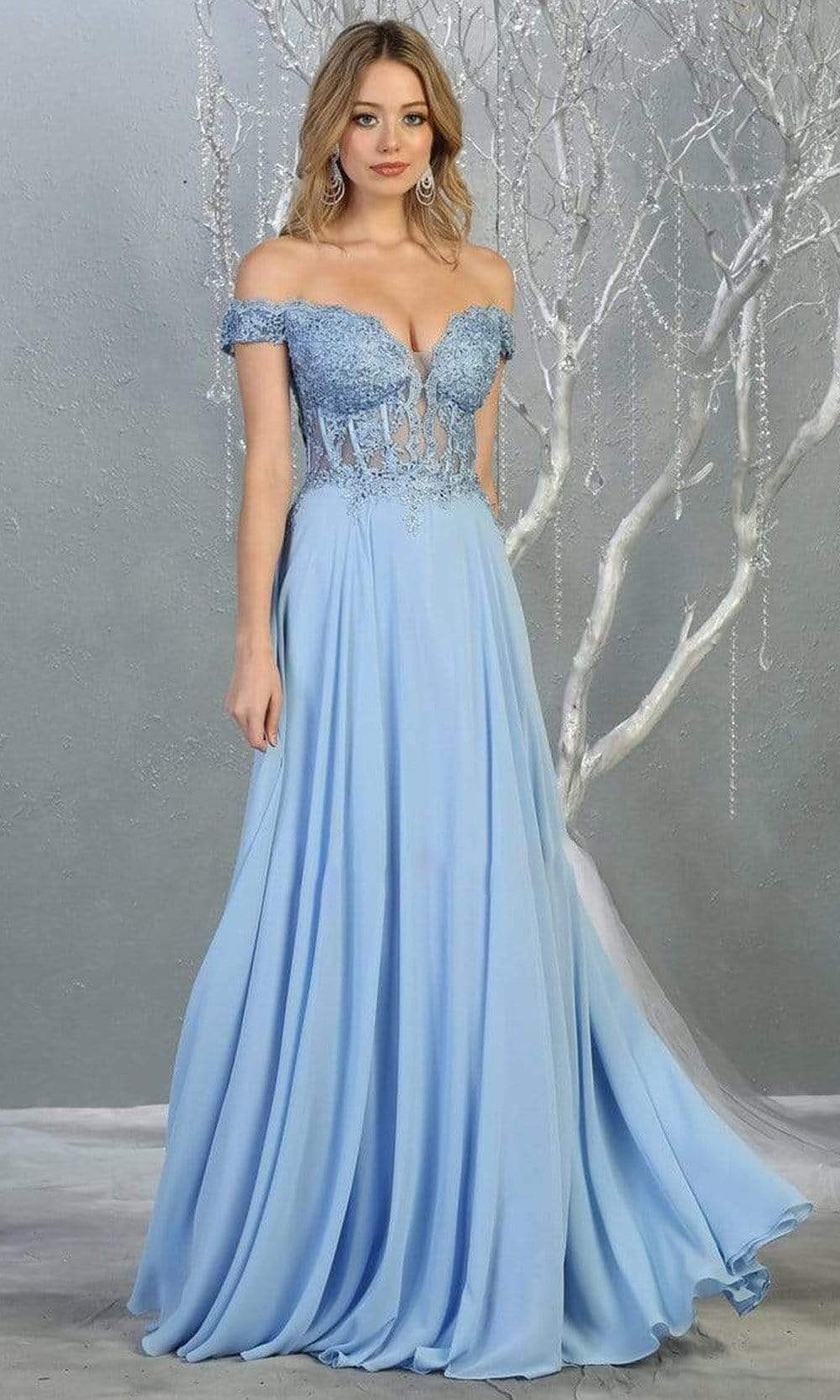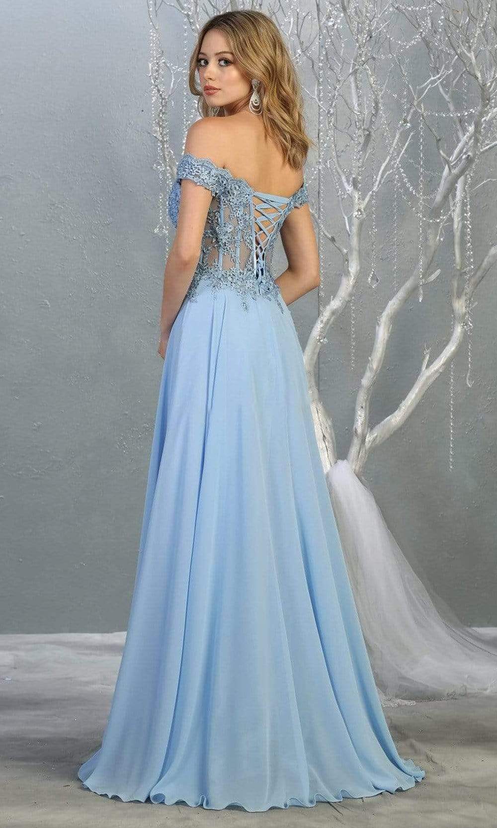 May Queen - MQ1714 Appliqued Sheer Corset Chiffon Dress