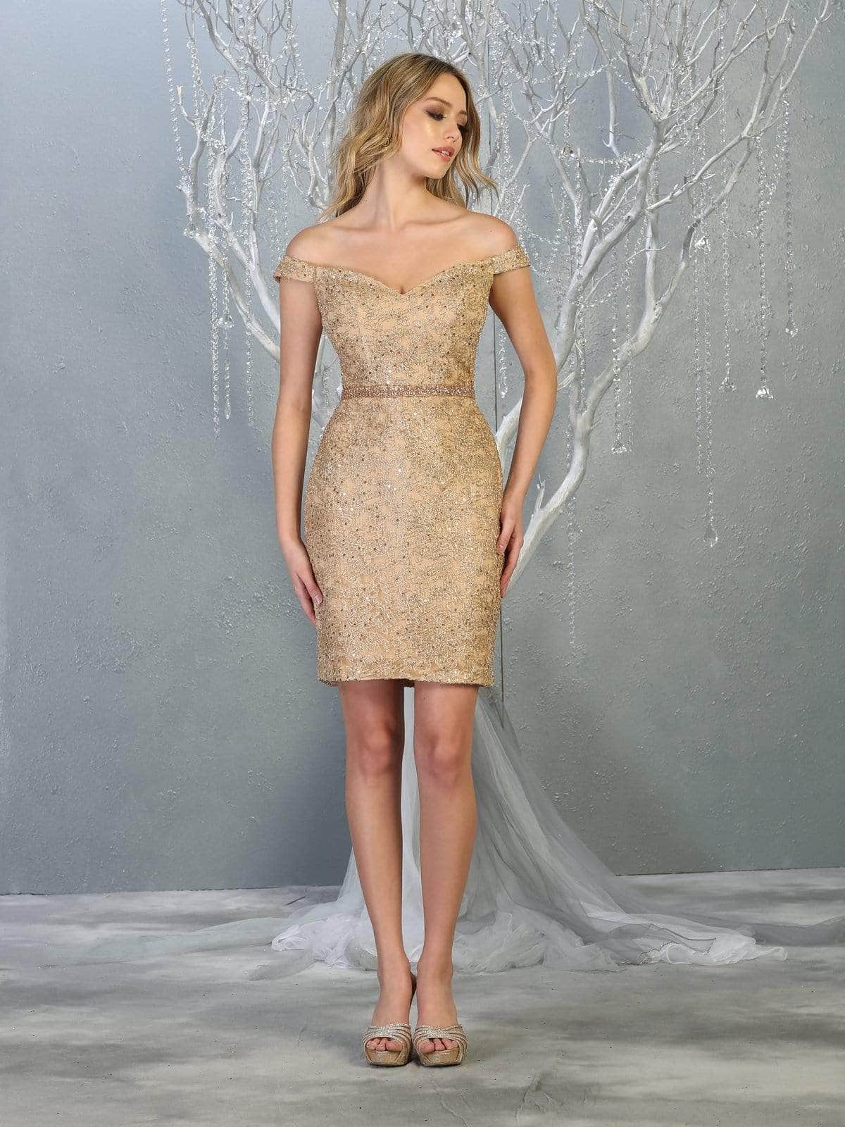 | Details: | Sequined Lace Appliques, Sweetheart Notch, Corset Back, Embellished Waistband, Short Hem |
