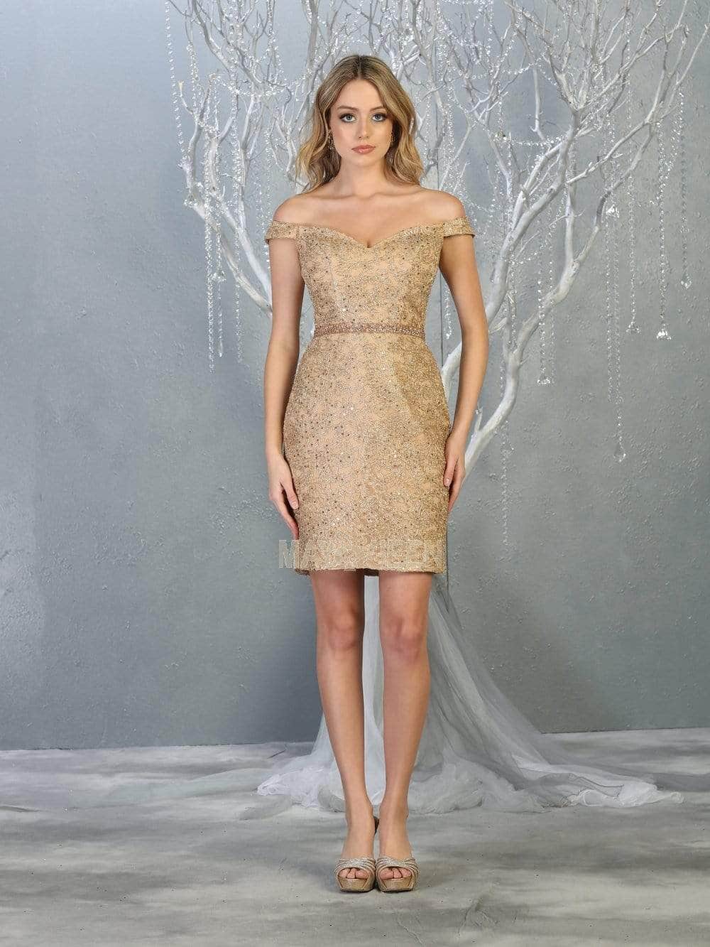 Gleaming with sequins and designed with floral lace appliques, this dress shows an off shoulder neckline with a sweetheart notch. Graced with a fitted bodice and cinched with a corset back, shimmering beads ornate the waist. The short sheath skirt hovers just above the mid-thighs. Models are wearing the Black/Gold, Burgundy, Gold and Mauve colors.