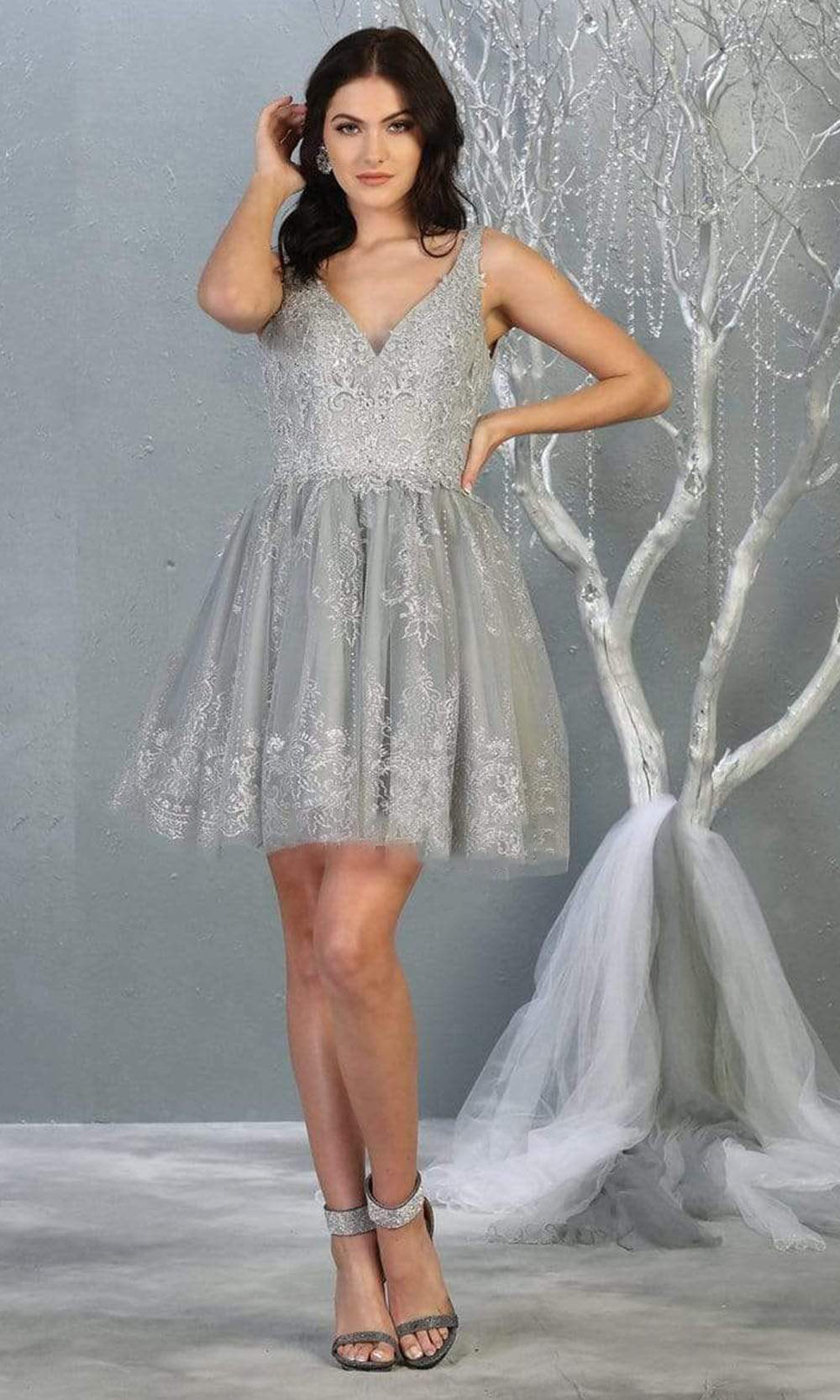 May Queen - MQ1817 Sleeveless Metallic Appliqued A-Line Dress
