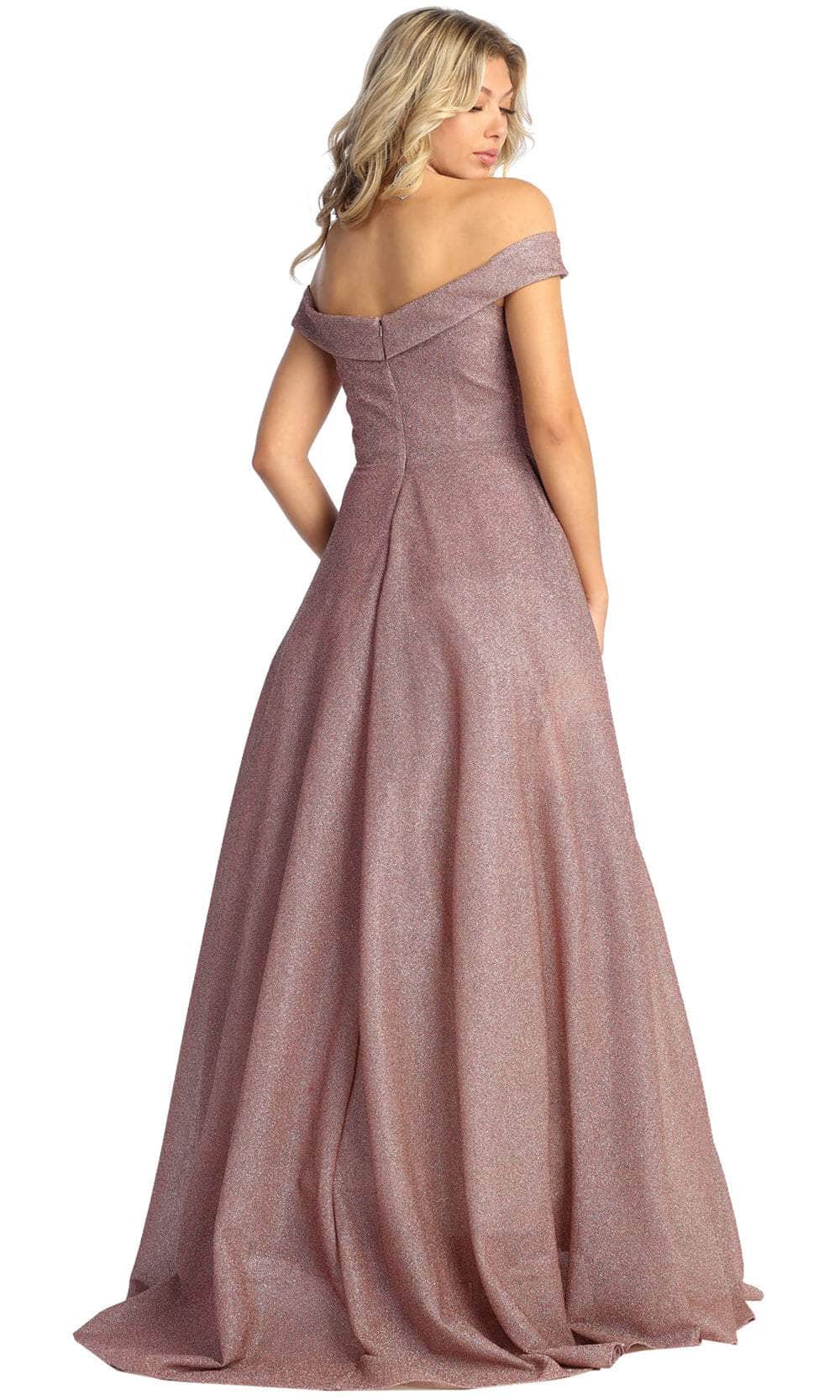 Be the center of attention at your next social event wearing this May Queen MQ1915 creation. Radiating with glittering fabric, this gown charms an off shoulder sweetheart neckline and mid-open back with a draping foldover accent. The skirt reveals an A-line silhouette with fabulous box pleats that runs to full length hem. A side pocket and sweeping train add a perfect finishing touch to this beauty. This May Queen MQ1915 masterpiece will definitely bring out the goddess in you! Models are wearing the Burgundy, Dusty Blue, Hunter Green, Rose Gold and Royal colors.
