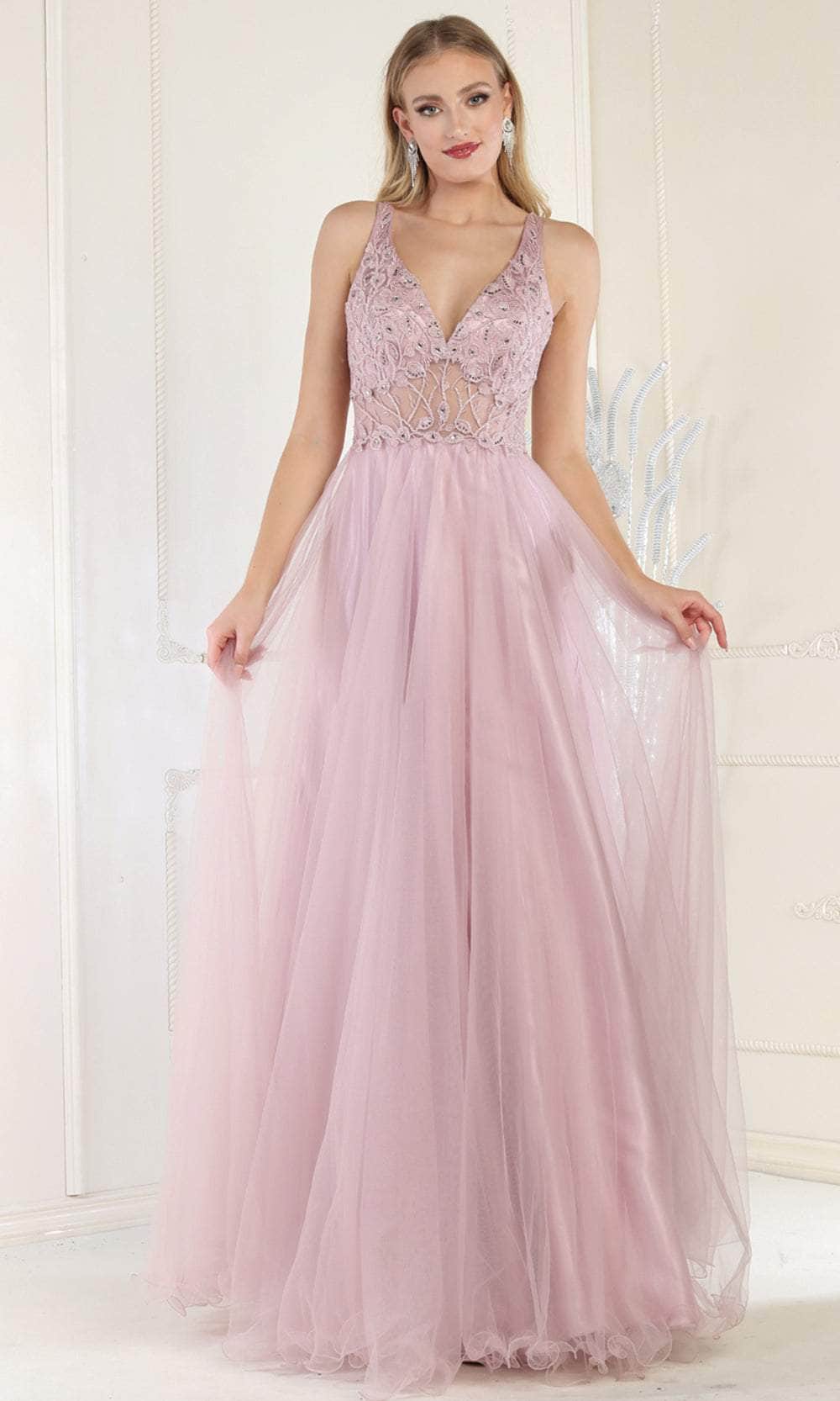 May Queen MQ1971 - Open Scoop Back Tulle A-line Dress