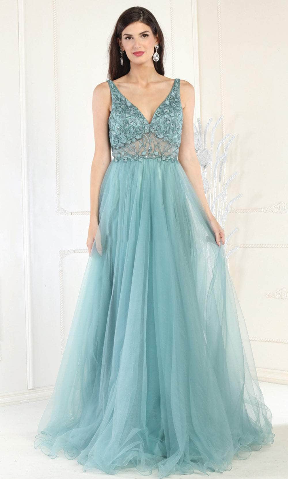 EFor those seeking to make a lasting impression at military balls, look no further than the May Queen MQ1971 gown. This A-line gown boasts a captivating combination of modern and classic detailing, crafted from chiffon fabric to lend an air of sophistication to any occasion. The sleeveless bodice is designed with a graceful V-neckline and delicate thin straps, further embellished with ornamental appliques that are sure to turn heads. The skirt flares down to the floor in a beautifully pleated style, creating a sweeping and elegant effect. With its graceful design and exquisite attention to detail, the May Queen MQ1971 gown is sure to make you the darling of the party. Models are wearing Dustyblue, Mauve and Sage colors.