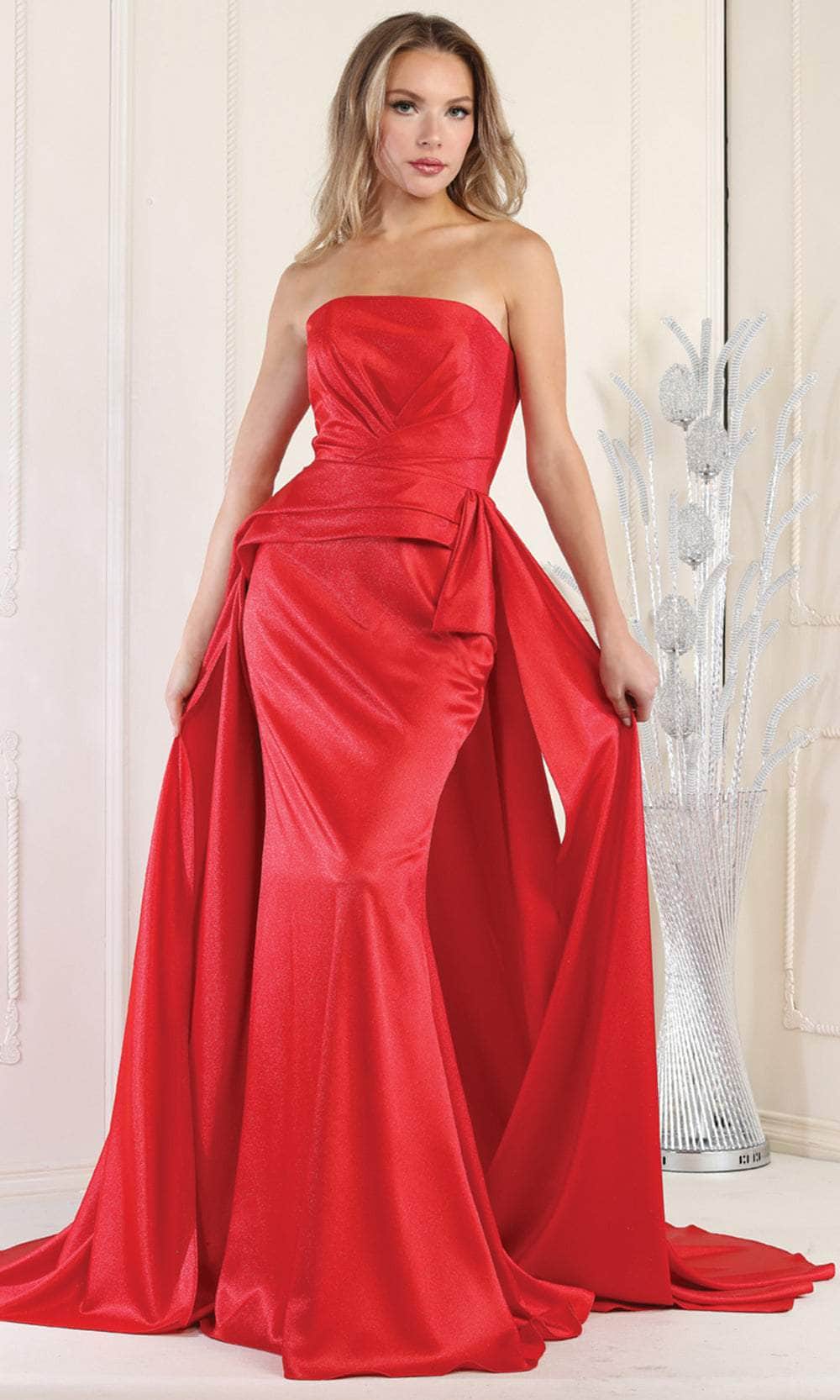 May Queen MQ1983 masterpiece will elevate your formal look. This flattering dress has a straight-across neckline that frames your décolletage and a peplum detail that emphasizes your waist. The full-length sheath skirt's overlay produces a fascinating flow as you walk, and the sweep train finish adds drama and elegance. The tailored silhouette flatters your curves and makes you feel beautiful and confident. This May Queen MQ1983 is a showstopper that will leave a lasting impact on any formal occasion. Models are wearing Fuchsia, Hunter Green, Mauve, and Red colors.