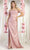 Details: Draping Sleeves, Corset Boning, High Slit, Midrise Back, Back Zipper Closure, Sweep Train