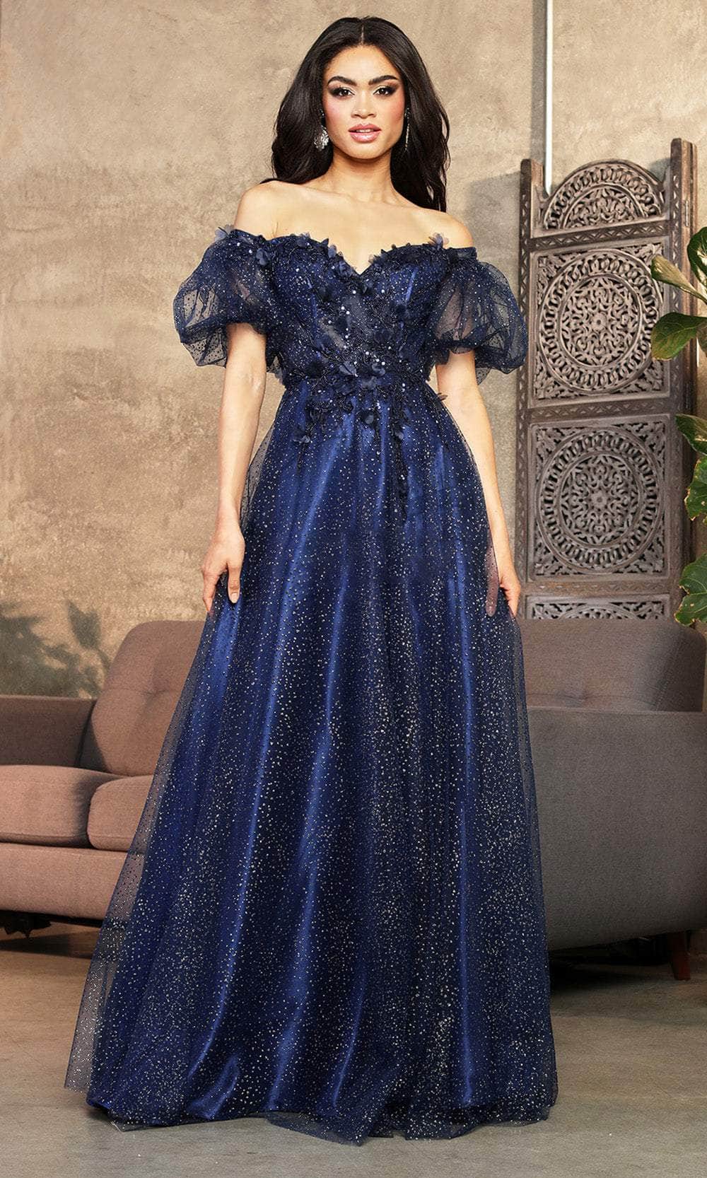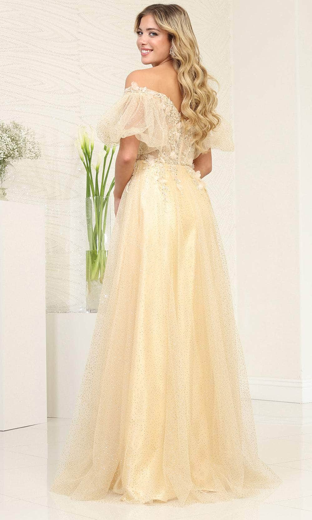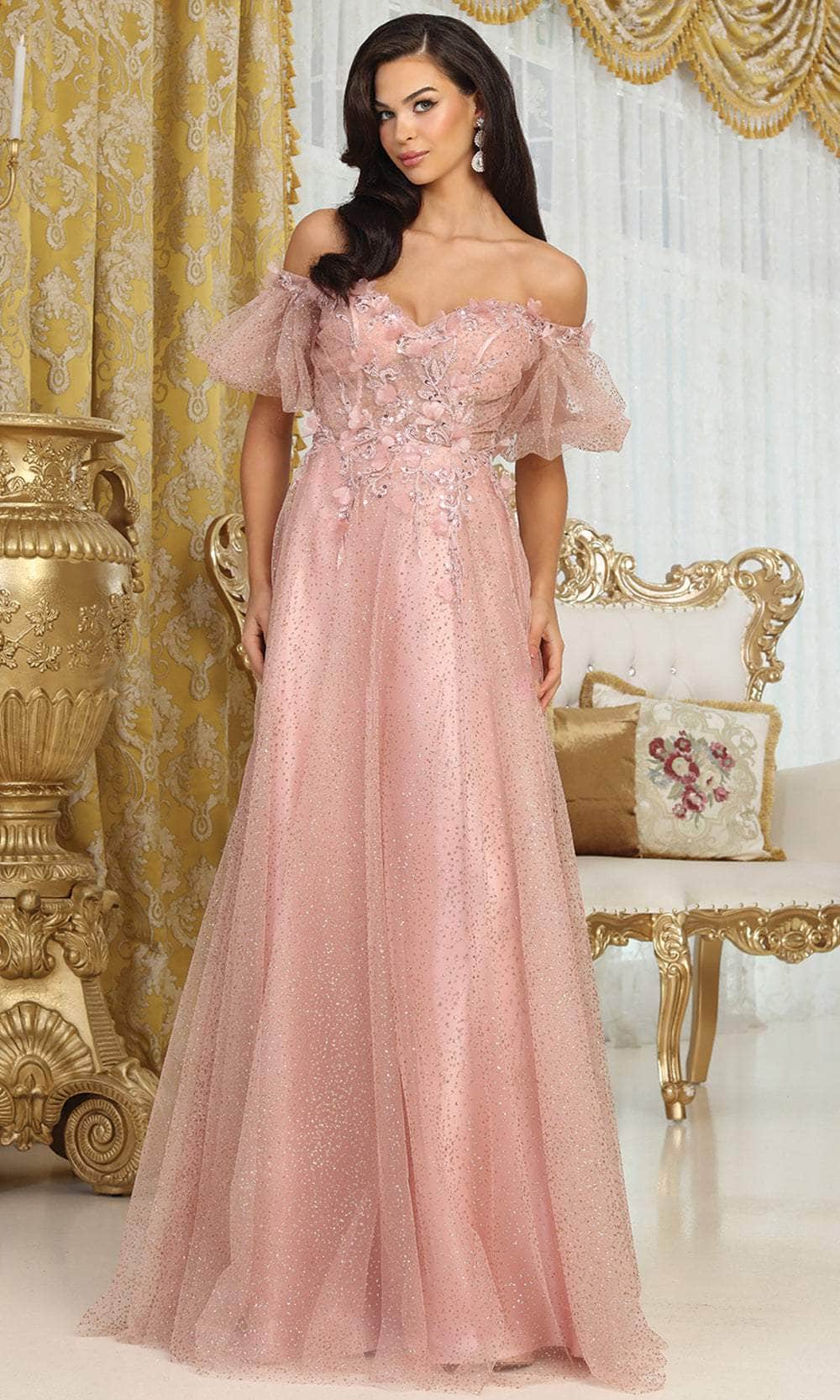 Sweep across the dance floor with grace and allure in this enchanting May Queen MQ2033 gown. This exceptional dress is embellished with intricate detailing, including sculpting seams that complement the female figure, rhinestone accents, and elaborate lace appliques. Featuring a sheer bodice and delicate off-shoulder puff sleeves, the gown showcases a flattering off-shoulder neckline and a sheer v-open back discreetly fastened with a zipper closure. The A-line skirt cascades elegantly over the curves, extending into a magnificent train. Immerse yourself in the enduring sophistication of the May Queen MQ2033 masterpiece. Models are wearing the Fuchsia, Gold, Navy, and Rose Gold colors.