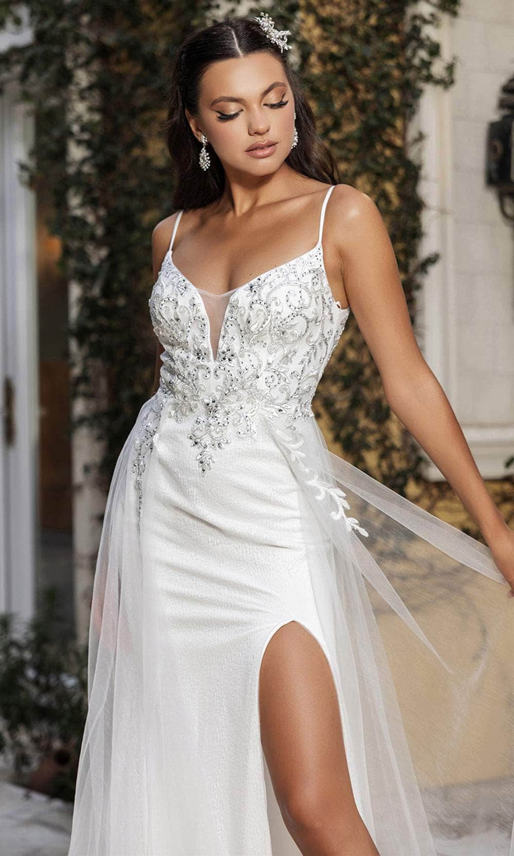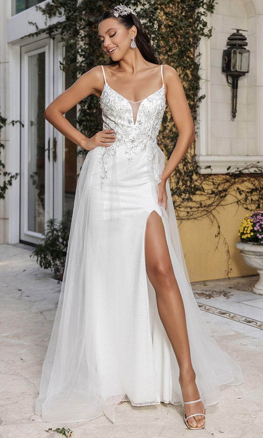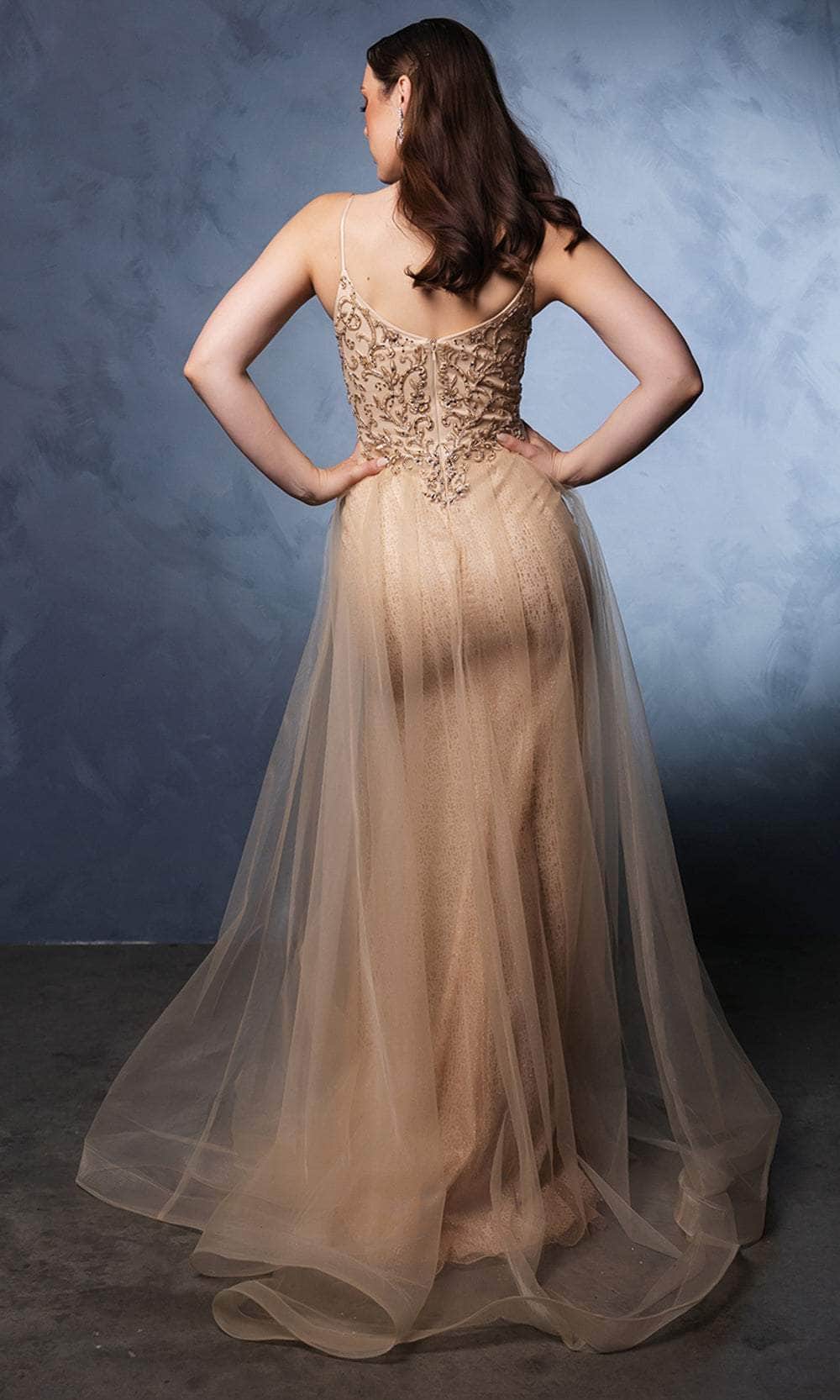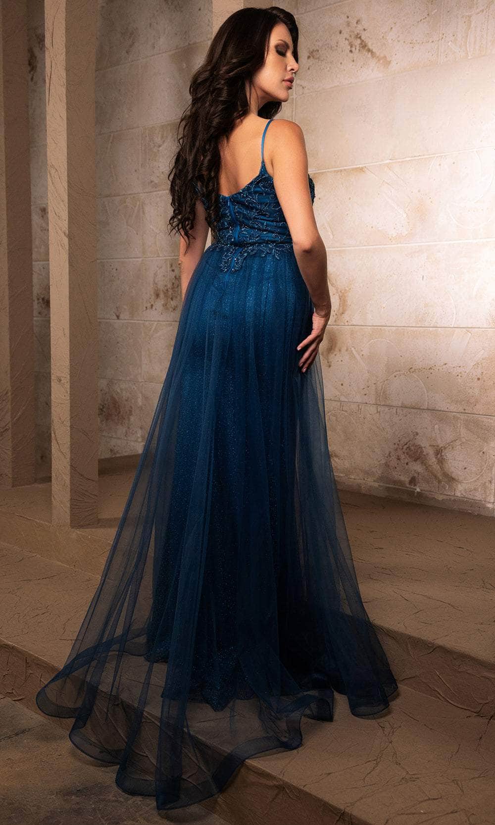 Walk in glamour and let all heads turn on you in this May Queen MQ2125 evening dress. This dress showcases an endearing plunging V-neckline on a fitted and sleeveless bodice, also featuring a sheer inset as well as spaghetti straps for added support. It also reveals a mid-open back that is secured with zipper for a refined finish. The top is beautifully bead-embellished, while the floor-length sheath skirt highlights its high slit which elevates the overall appeal of this attire. Walk in seduction and style in May Queen MQ2125 masterpiece. Models are wearing Champagne, Lilac, Teal Blue, and White colors.