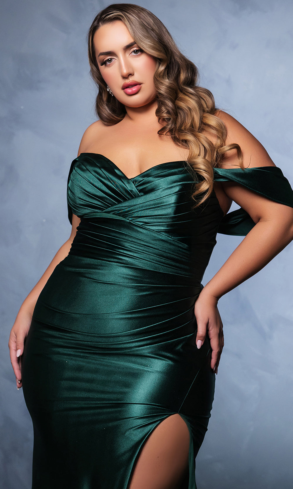 Step into a world of enchantment with the May Queen MQ2138B. This gorgeous dress features a romantic off-shoulder draped sleeves, sweetheart neckline and a ruched bodice. The high leg slit enhances movement and elegance, while the sheath skirt beautifully contours your figure. Perfect for formal events or prom, this gown blends classic beauty with modern charm. Let the May Queen MQ2138B be your ideal choice for a sophisticated and unforgettable evening. Models are wearing Eggplant, Red, Royalblue, Black, and Huntergreen colors.