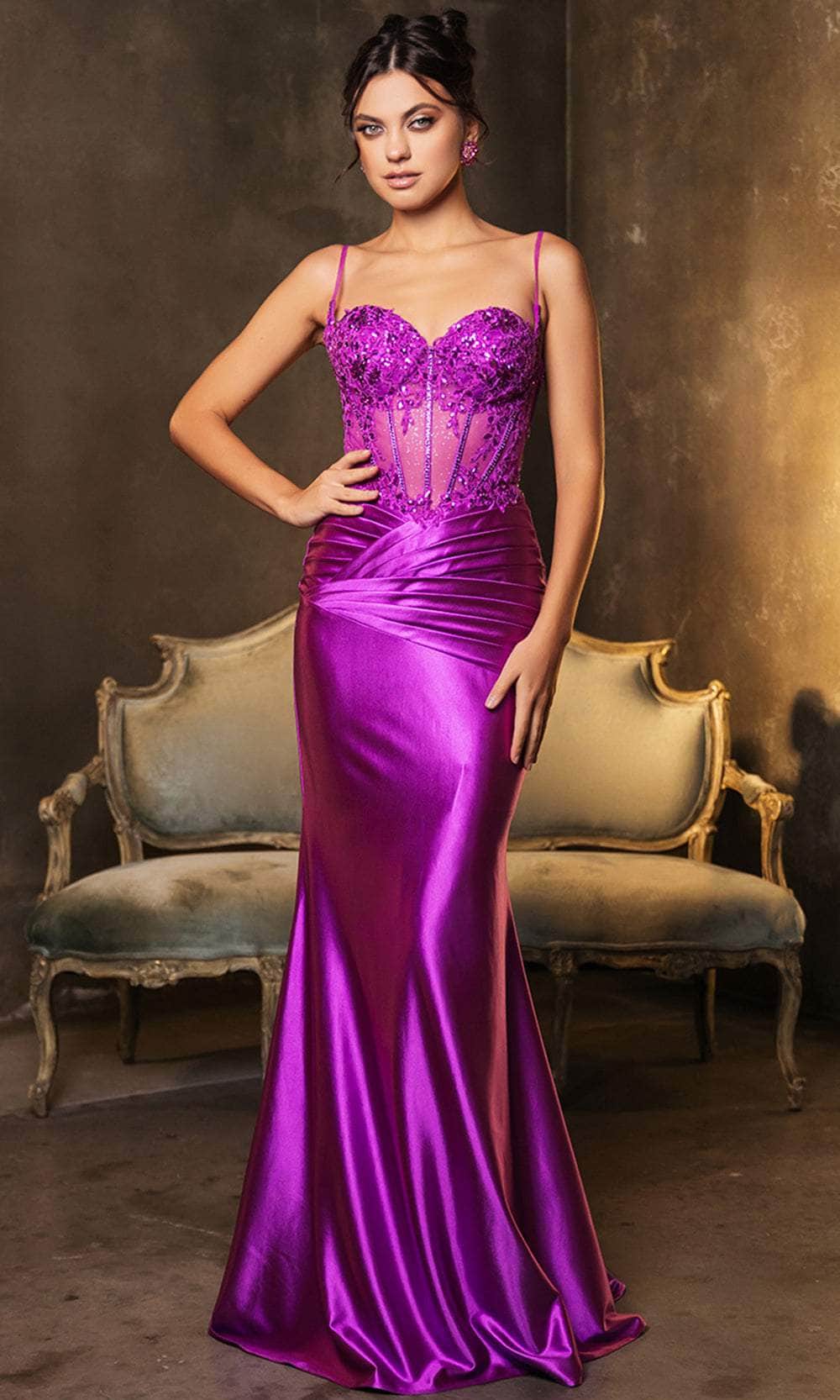Be the loveliest of them all wearing this May Queen MQ2139 evening dress. This dress exhibits an alluring sweetheart neckline on a fitted and sleeveless bodice, also featuring spaghetti straps for added support. The back is designed in a mid-open manner and is secured with lace for a graceful finish. The illusion top is beautifully designed with floral embroidery, while the floor-length sheath skirt reveals pleat designs below the Basque waist. Turn yourself into a head-turning beauty by slipping into this absolutely eye-catching May Queen MQ2139 masterpiece. Models are wearing Black, Navy, Olive, Red, and Violet colors.