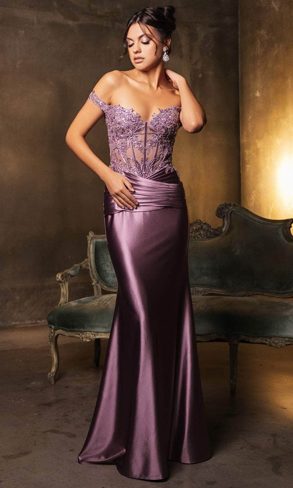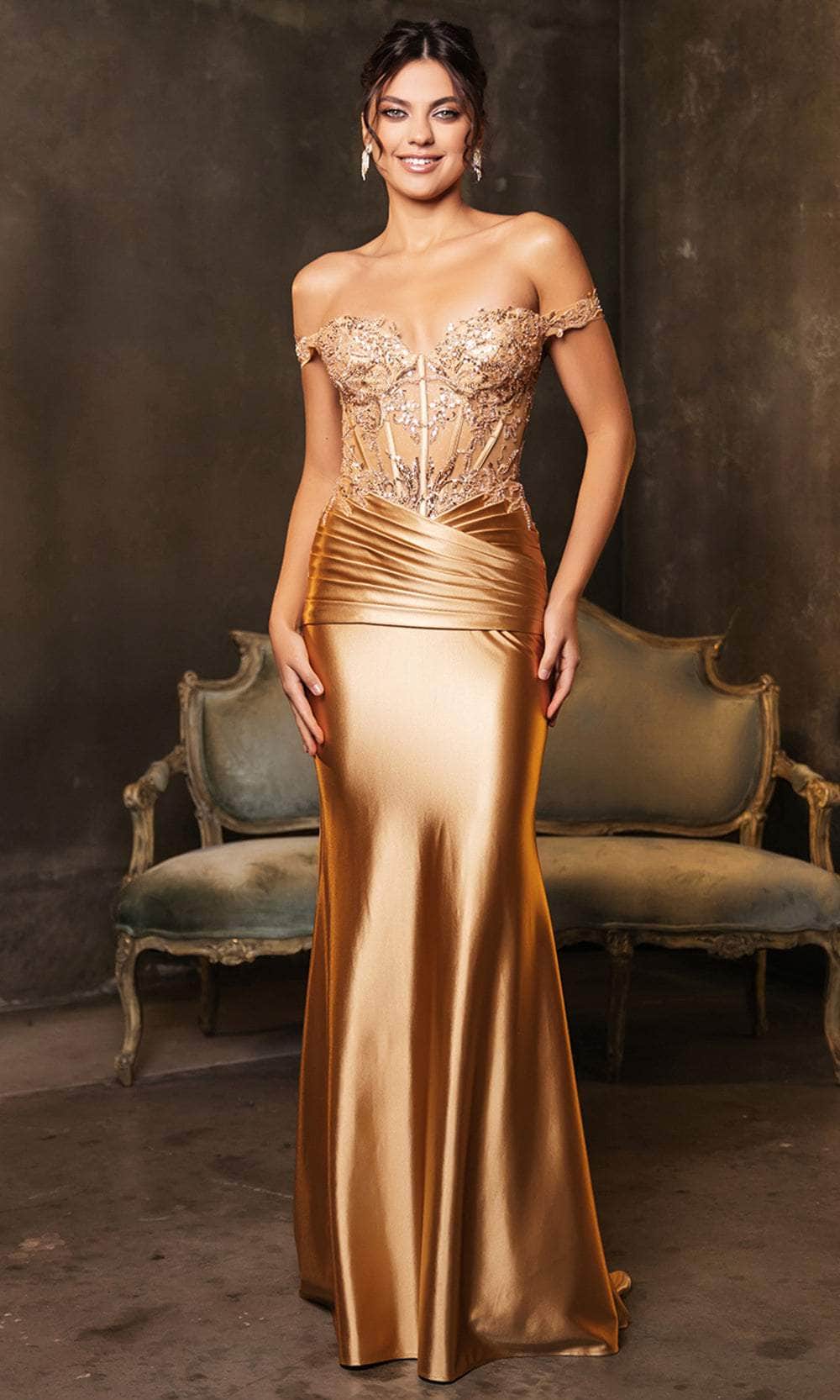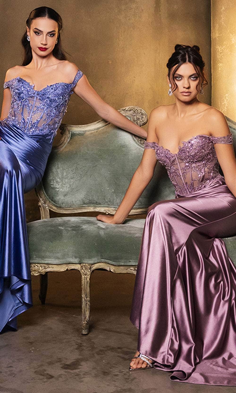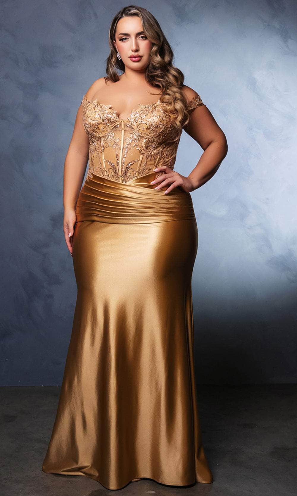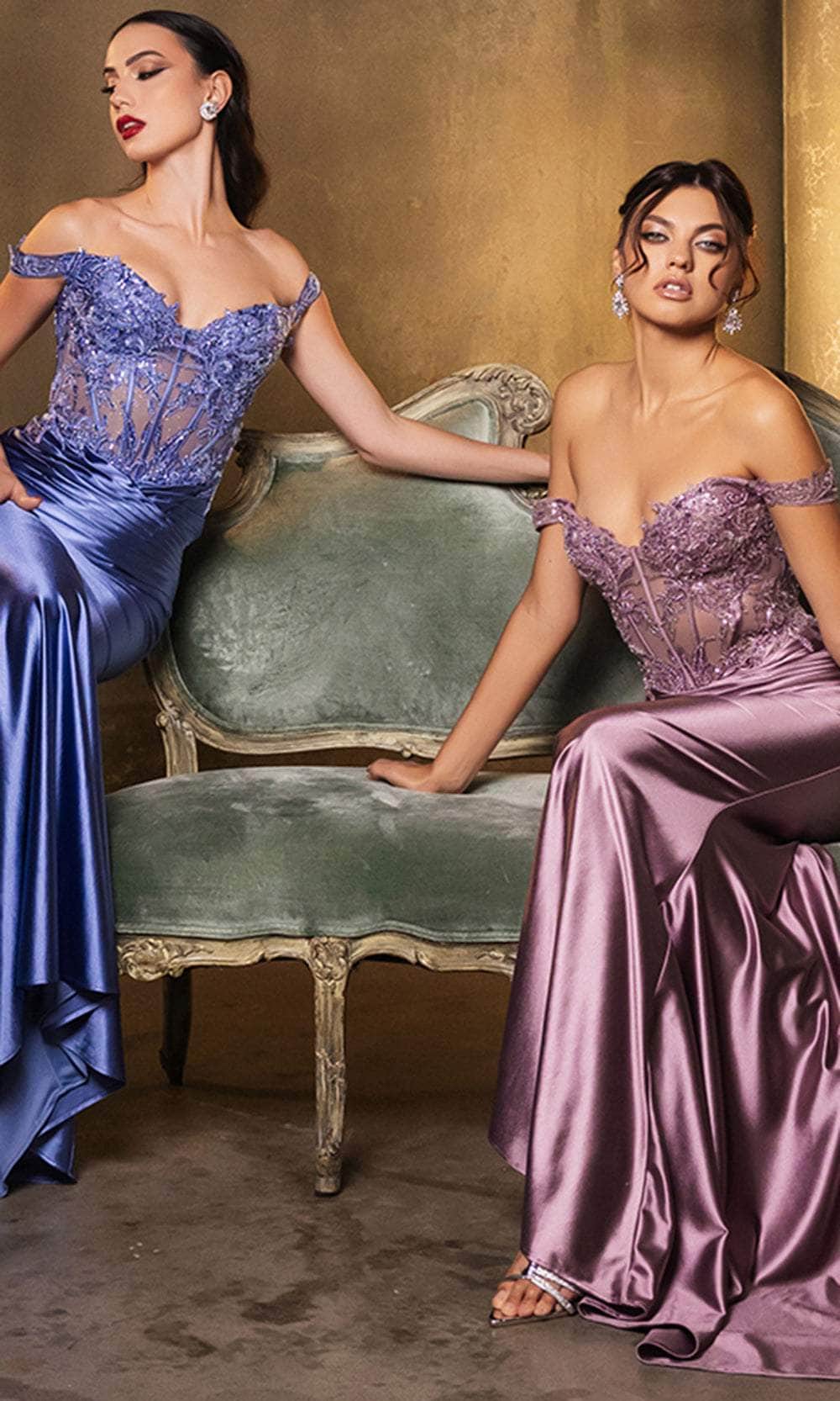 Get ready to show off your glamorous side in this May Queen MQ2141 evening dress. This dress showcases a stunning off-shoulder neckline on a figure-flattering bodice, complemented by a classy mid-open back that is secured with zipper for a polished finish. The top is beautifully adorned with sequin embellishments, allowing you to sparkle all night long, while the floor-length sheath skirt exhibits pleat designs below the Basque waistline. Create a special moment in this May Queen MQ2141 masterpiece. Models are wearing Black, Dusty Blue, Gold, and Victorian colors.