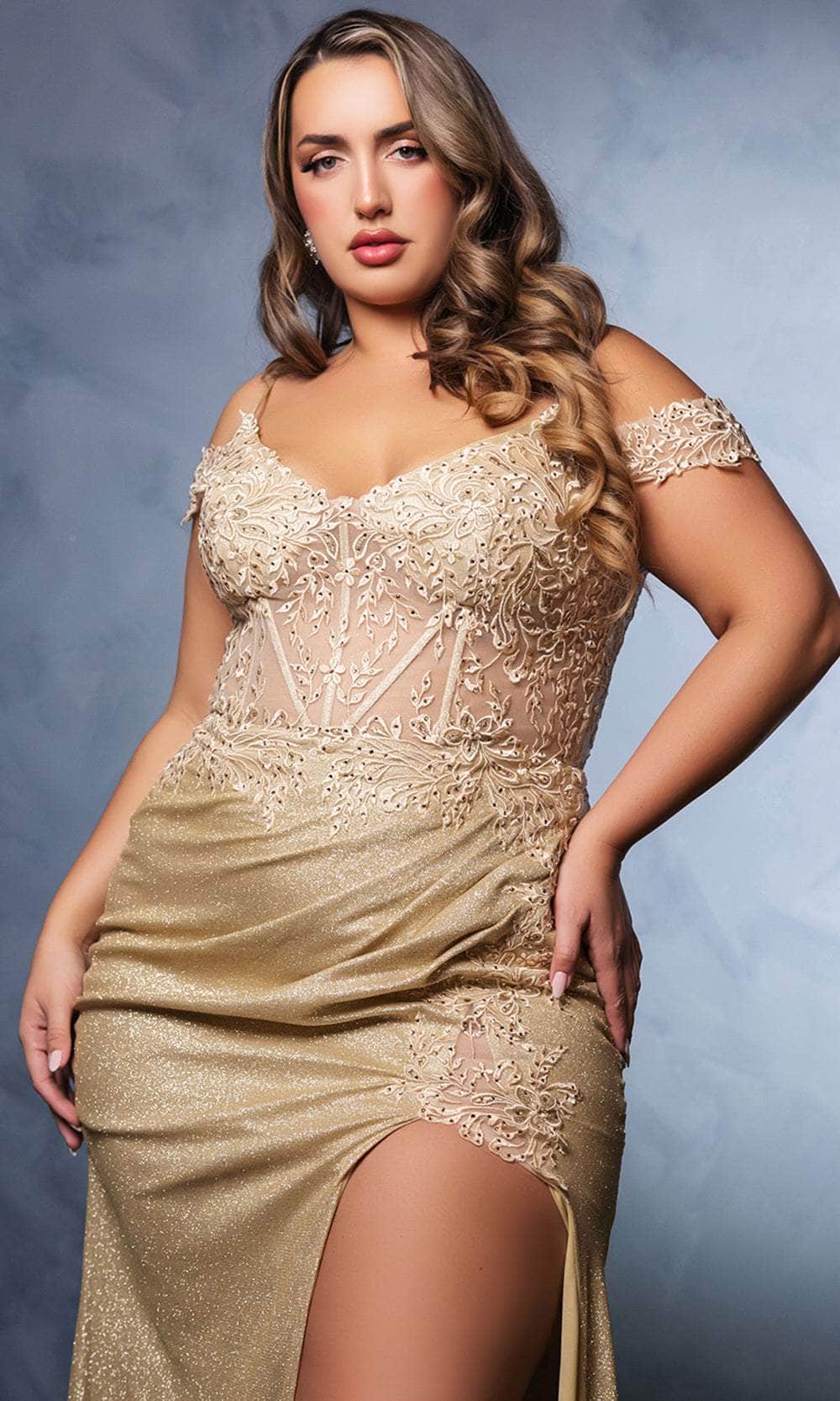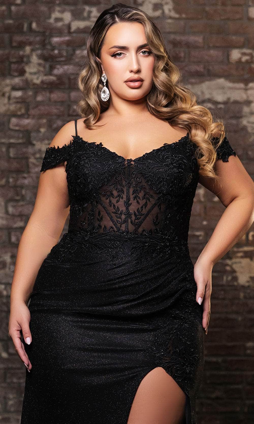 Make your grand entrance in this stunning May Queen MQ2142 evening dress. This dress showcases a classy V-neckline, with cold shoulders feature, on an illusion bodice. The back is mid-open and is secured with lace for a graceful finish. The top blooms with loveliness thanks to its floral embroidery designs, while the sheath skirt sparkles with glitters and have a seductive touch because of its high slit. Steal the show in this dazzling May Queen MQ2142 masterpiece. Models are wearing Black, Gold, Rose Gold, and Sage colors.