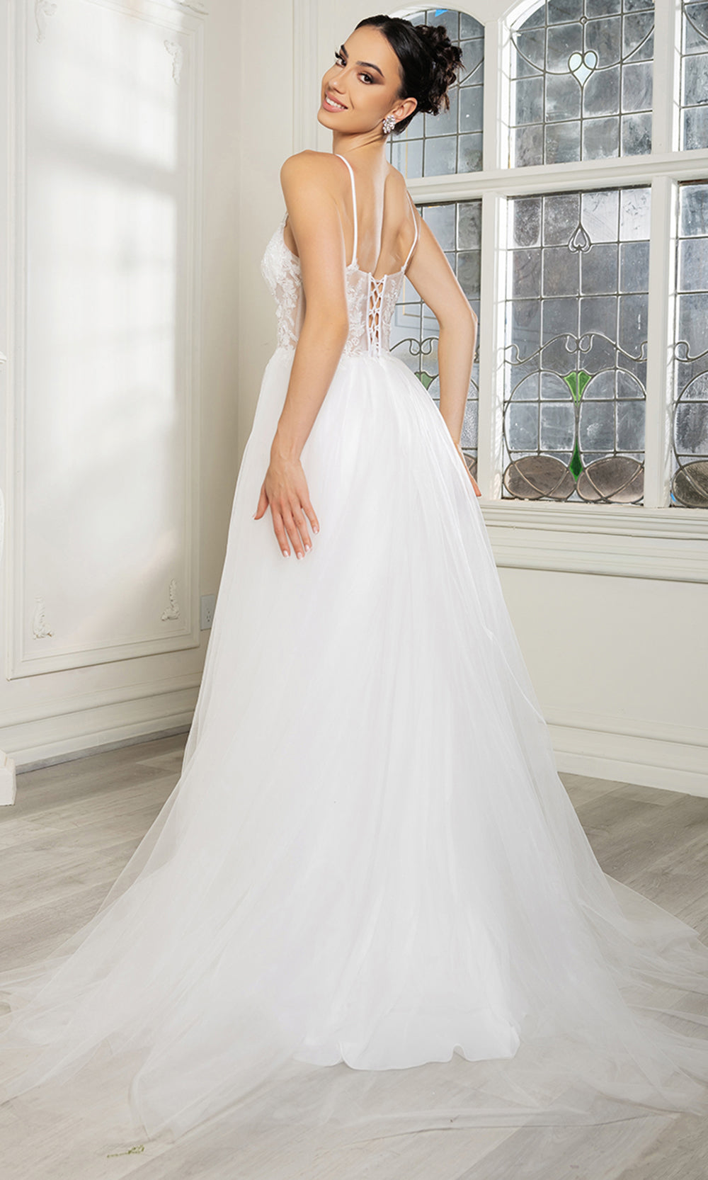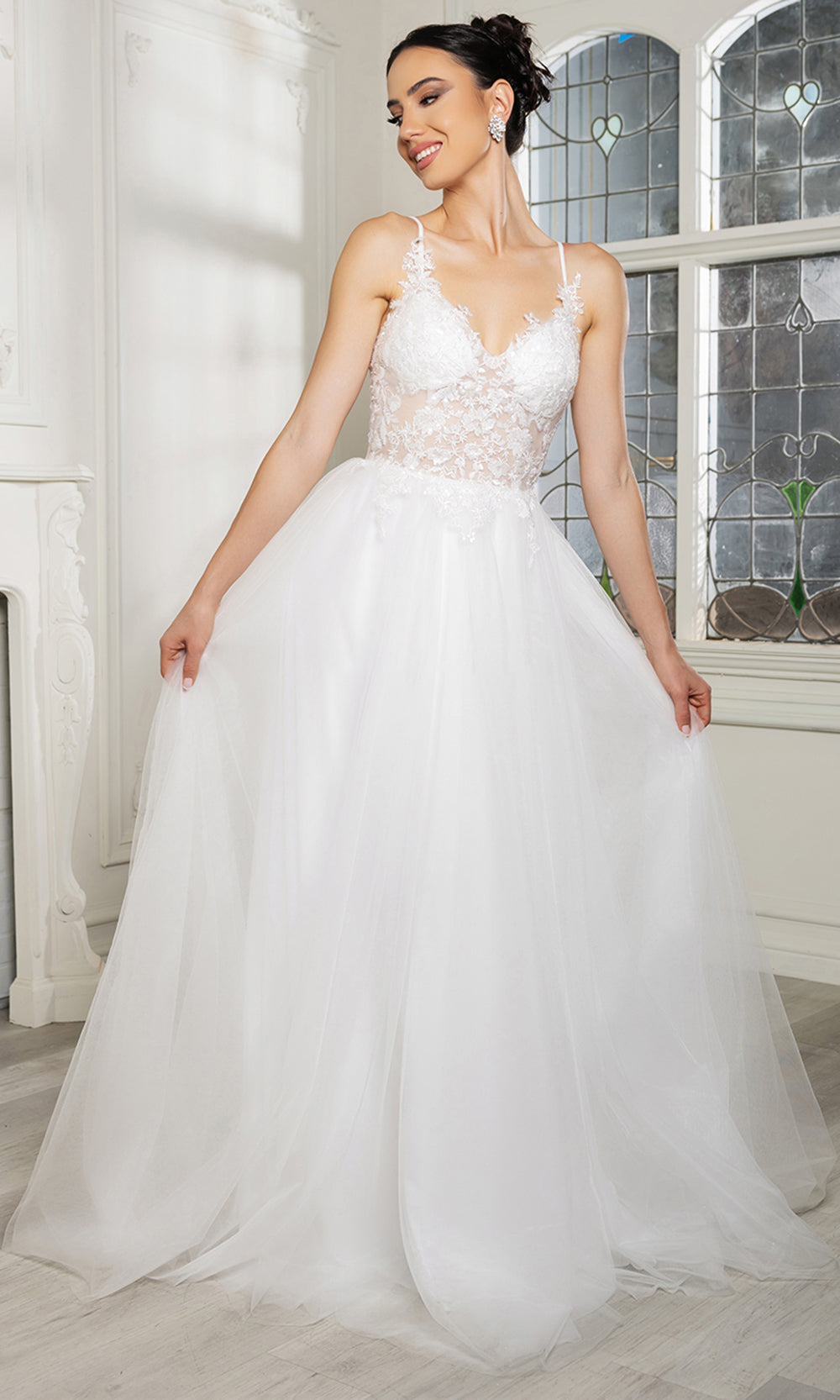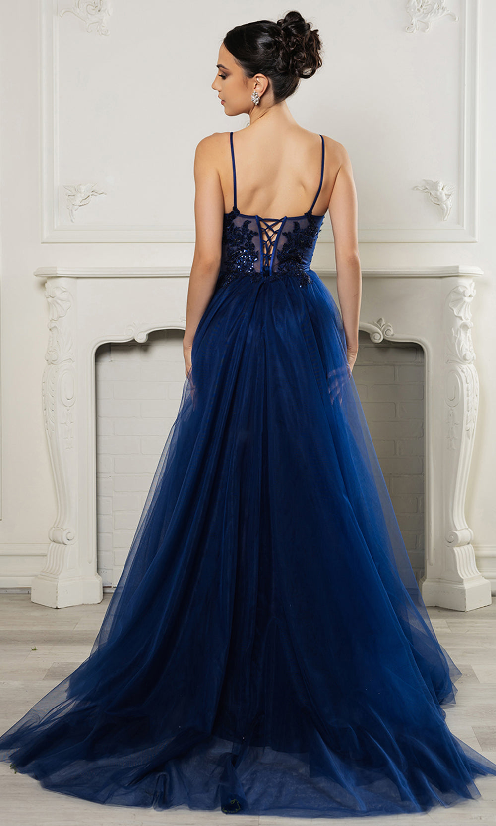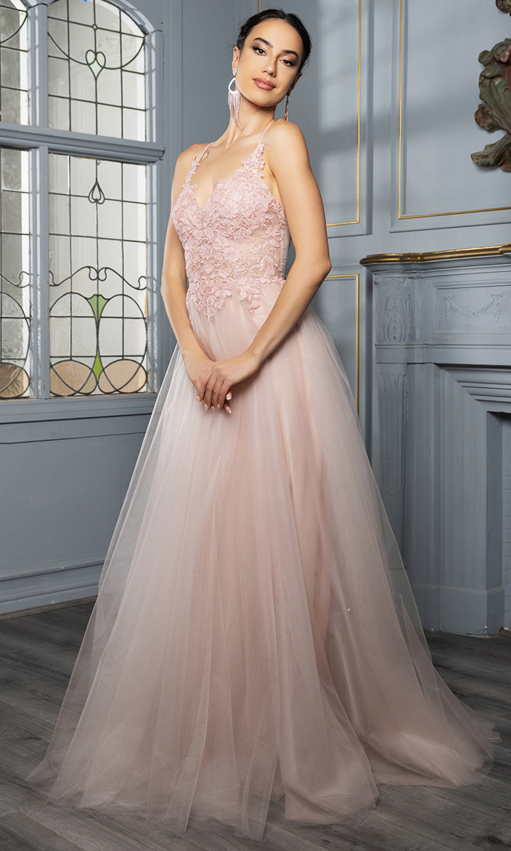 Radiate ethereal beauty in a May Queen MQ2167 gown that feels like a dream. The ensemble highlights a sheer illusion bodice decorated with floral lace applique and shimmering sequins. Spaghetti straps and a delicate deep V-neckline elevate the romantic design, while the full tulle skirt adds a soft and airy finish to the A-line silhouette. The May Queen MQ2167 is the perfect pick for proms, weddings, or formal evenings where elegance is key. Models are wearing Dustyblue, Ivory, Rosegold, and Sage colors.