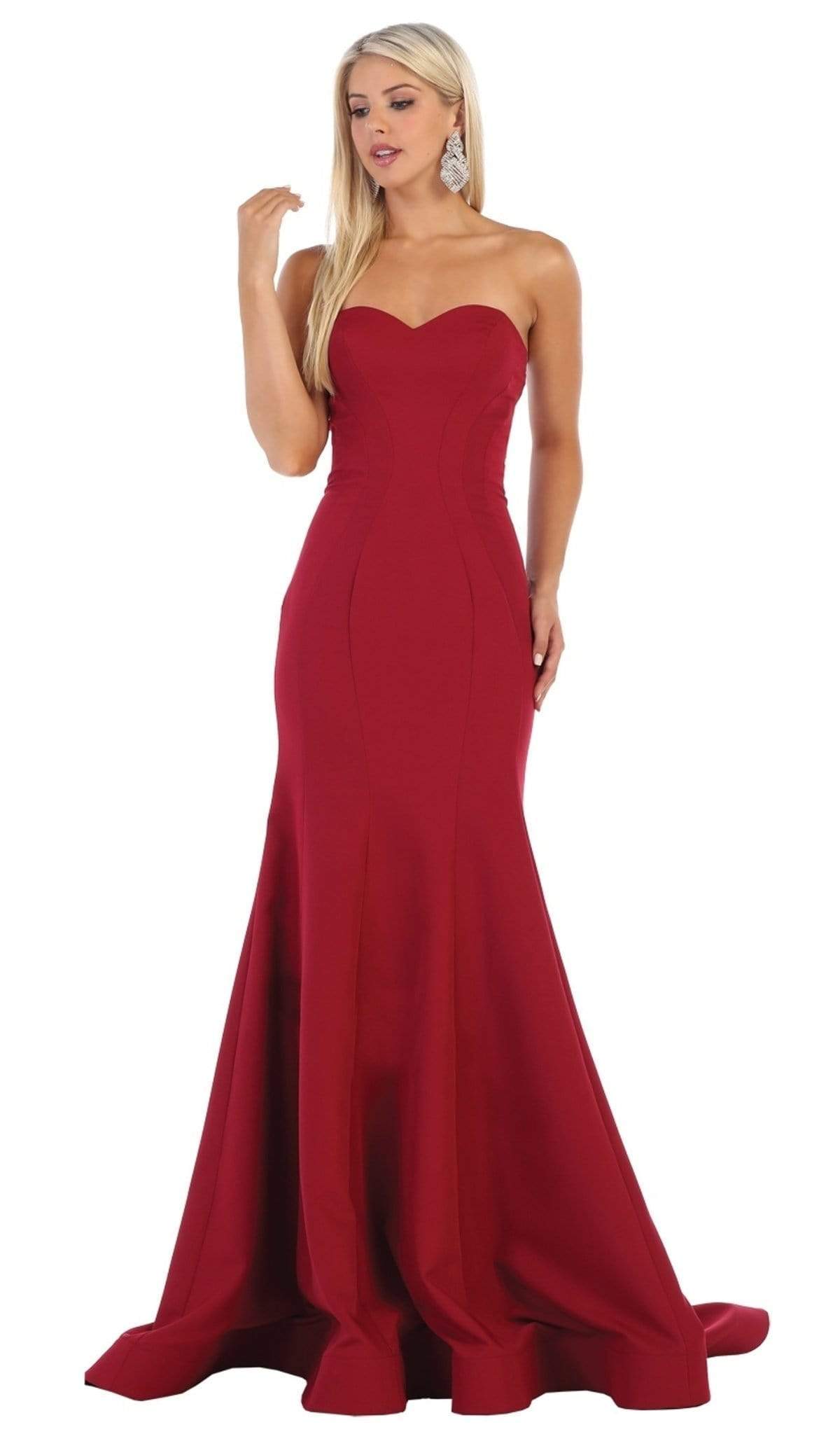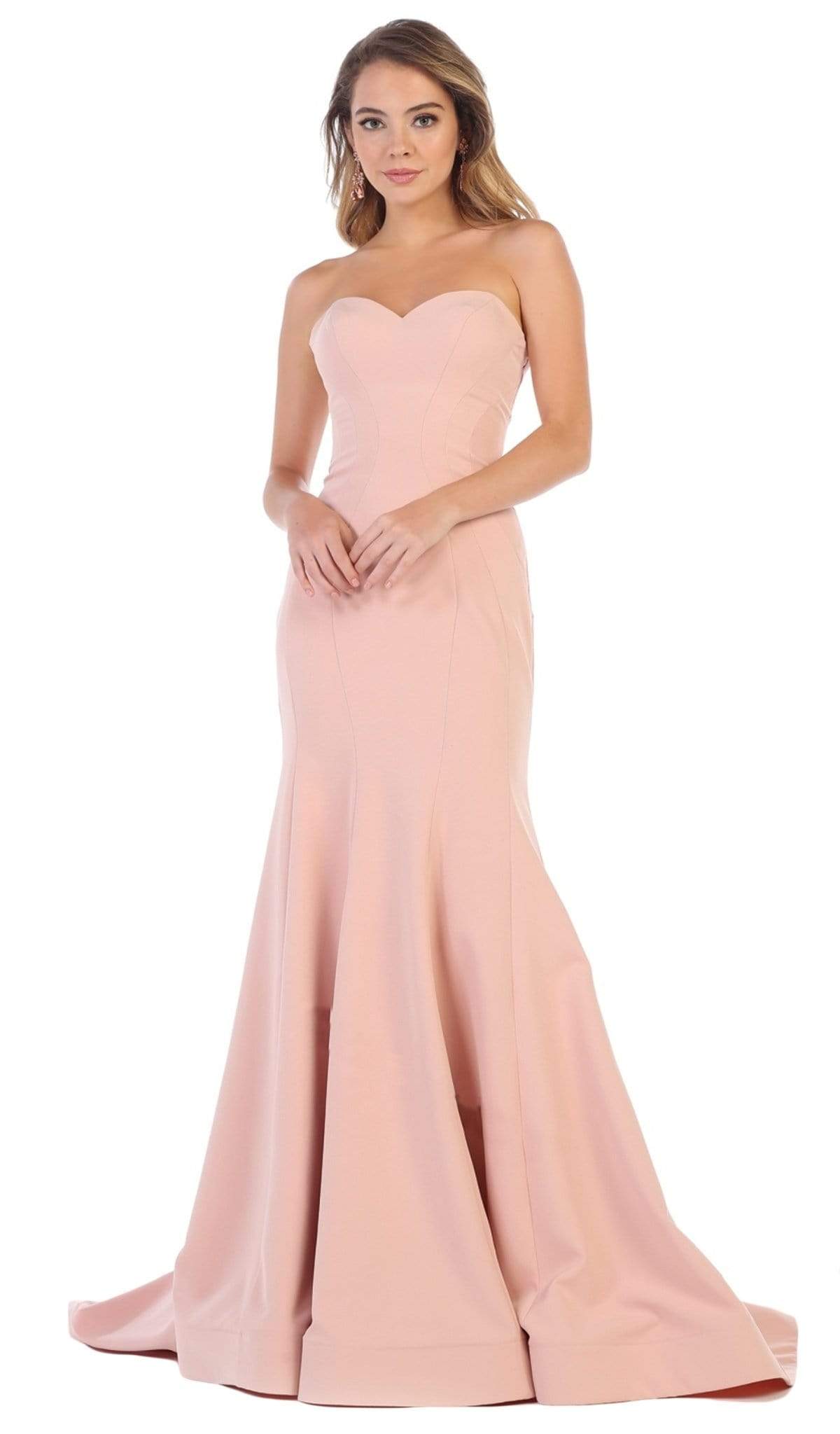 Flaunt your best assets in this curve-hugging masterpiece by May Queen RQ7703. A pronounced sweetheart neckline frames the strapless bodice contoured with tailoring seams. Soft pleats cascades the trumpet skirt as it elegantly flares to the floor finished with a sweep train for added drama. A center zipper closure secures the mid-open back for a figure-flattering fit. Beam with pride as you don this beautiful May Queen ensemble