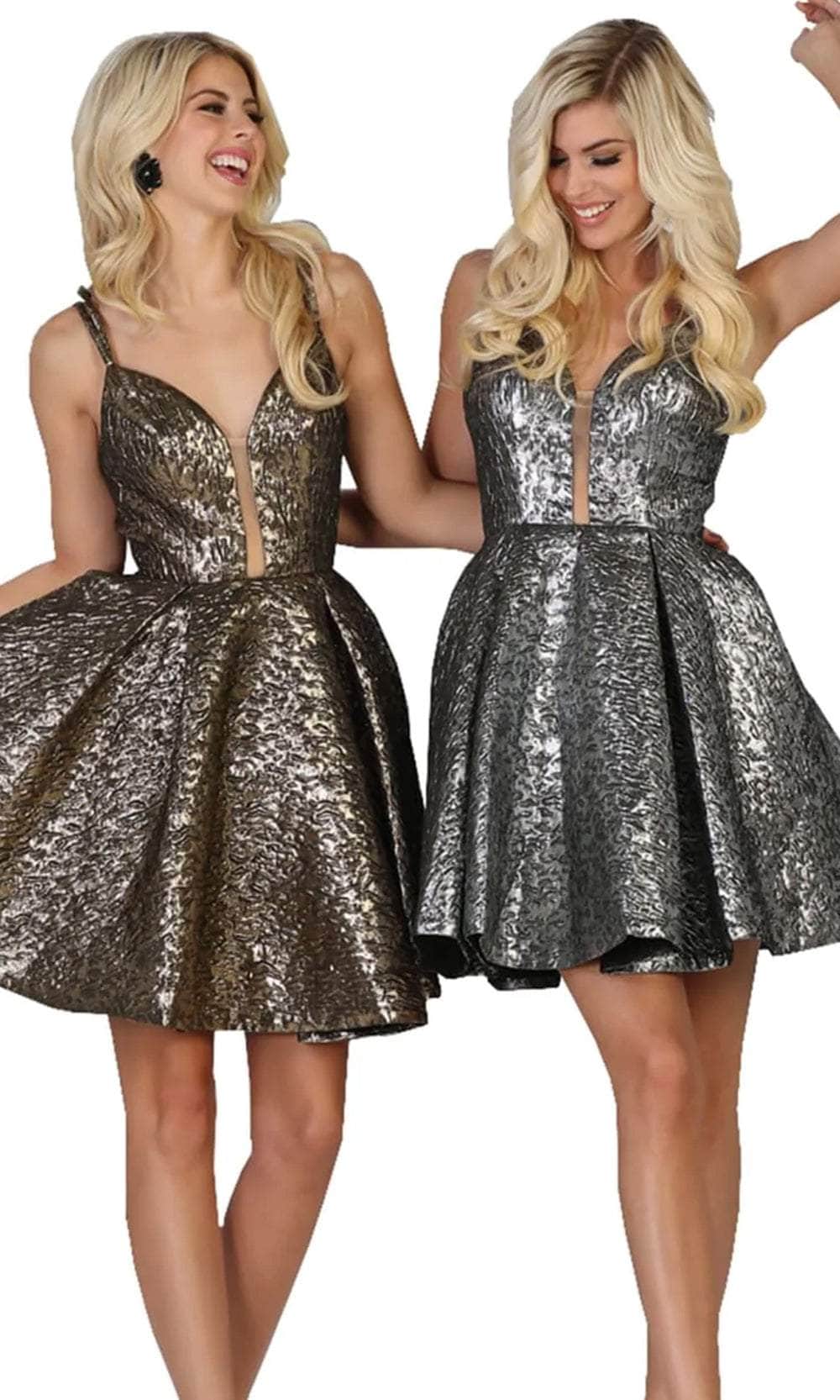Dress to impress in this May Queen RQ7766 with the perfect amount of glitz and glamour. You'll shine from the inside out in these glittering fabric that exudes elegance and style. This enticing piece has multi-spaghetti straps and an A-line skirt that will make you stand out in a crowd. It has a V-neck with a sheer panel and a mid-open back with strappy details, making you feel comfortable while elevating your appeal. This May Queen creation is mesmerizing! Models are wearing Silver and Bronze colors.