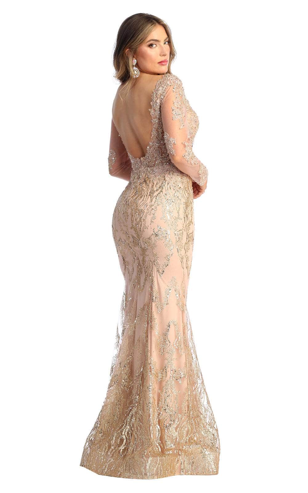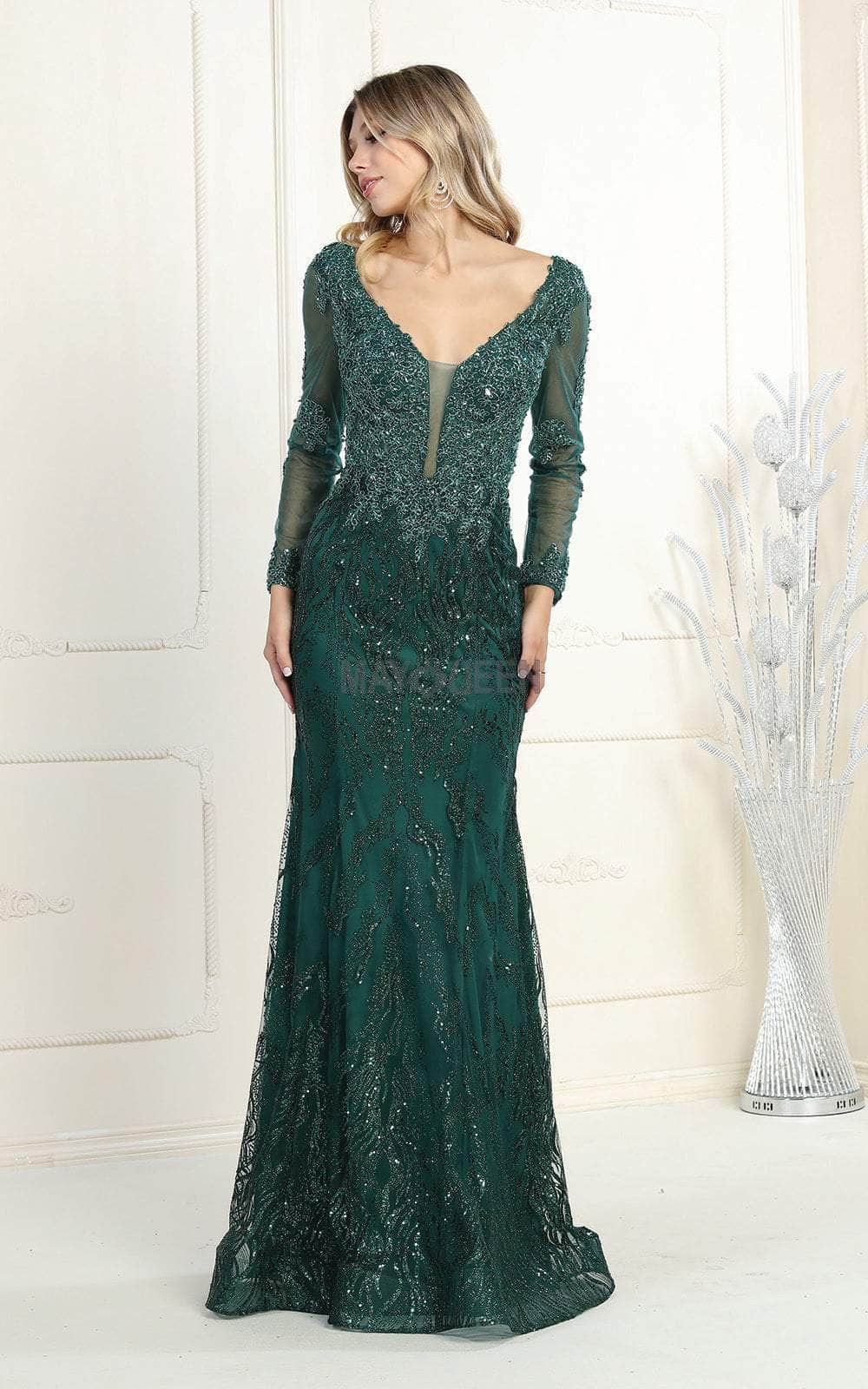 Embody Hollywood glitz and glamour in this sparkly number from May Queen RQ7937. This lovely dress is composed in sheer long sleeves charmed with the illusion sweetheart neckline, and is accented with shimmering designs from the floral patterned appliques in the bodice, embroideries, and beaded details all over the dress. It is then finished off in the skirt with the extra shimmering design with the sheer layers and light train finish. Words wont be able to express the beauty of this May Queen creation! Models are wearing Burgundy, Champagne, Dusty Blue, and Hunter Green colors.